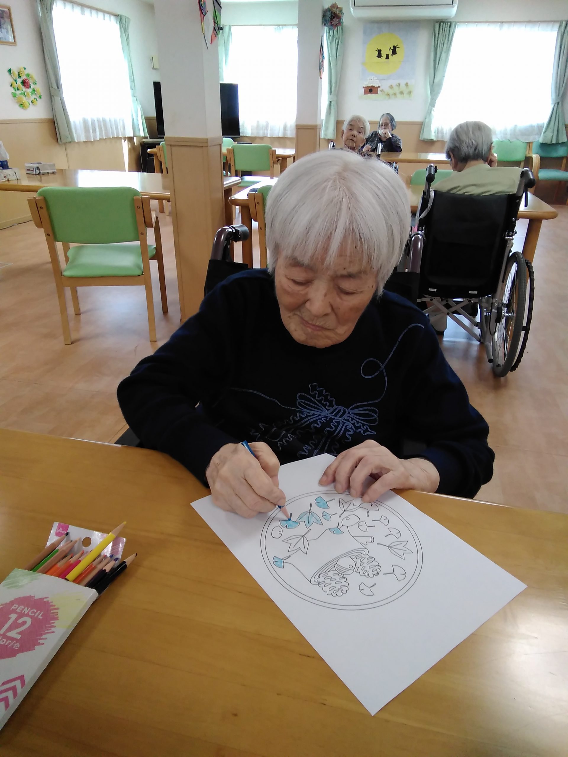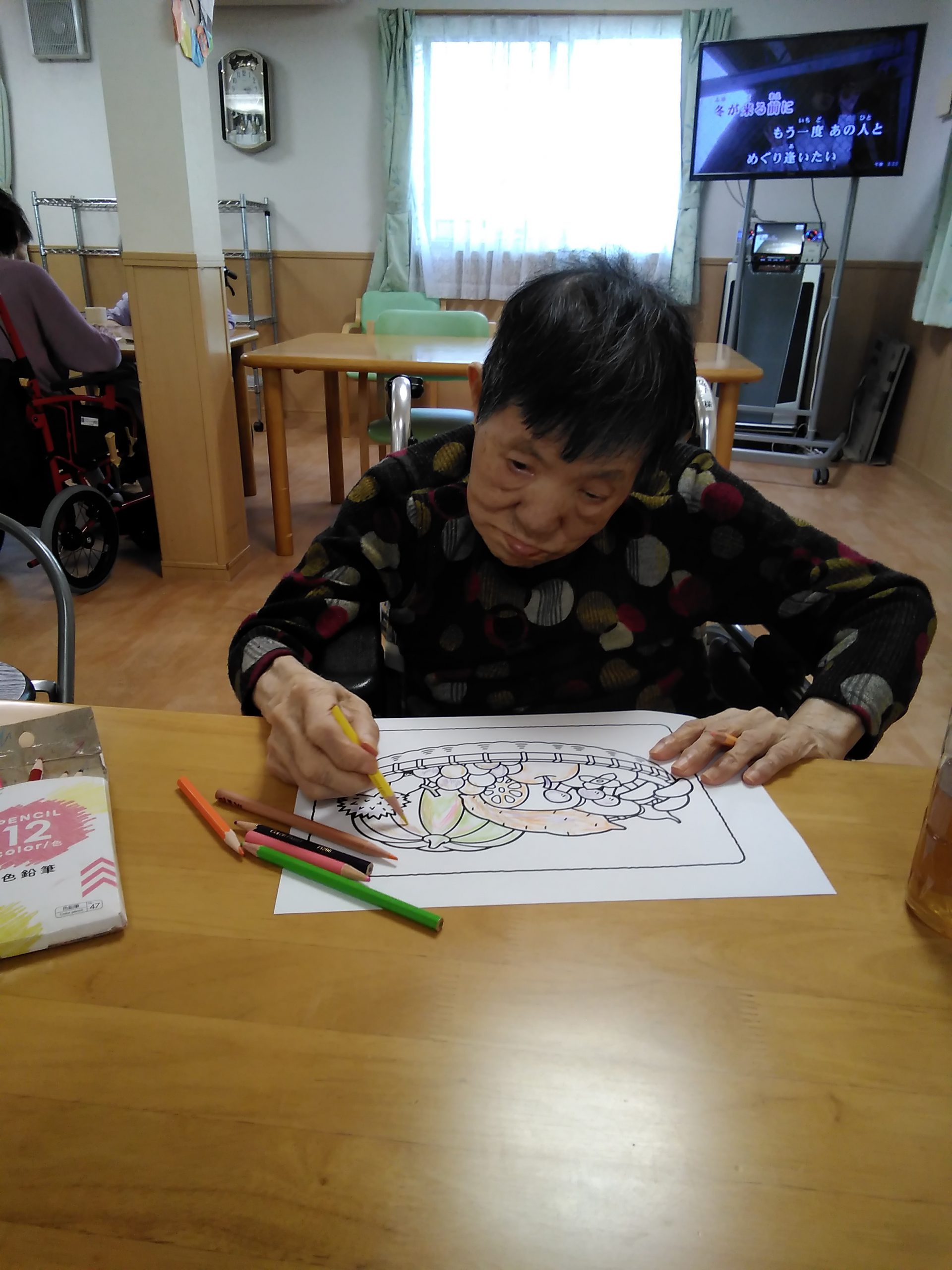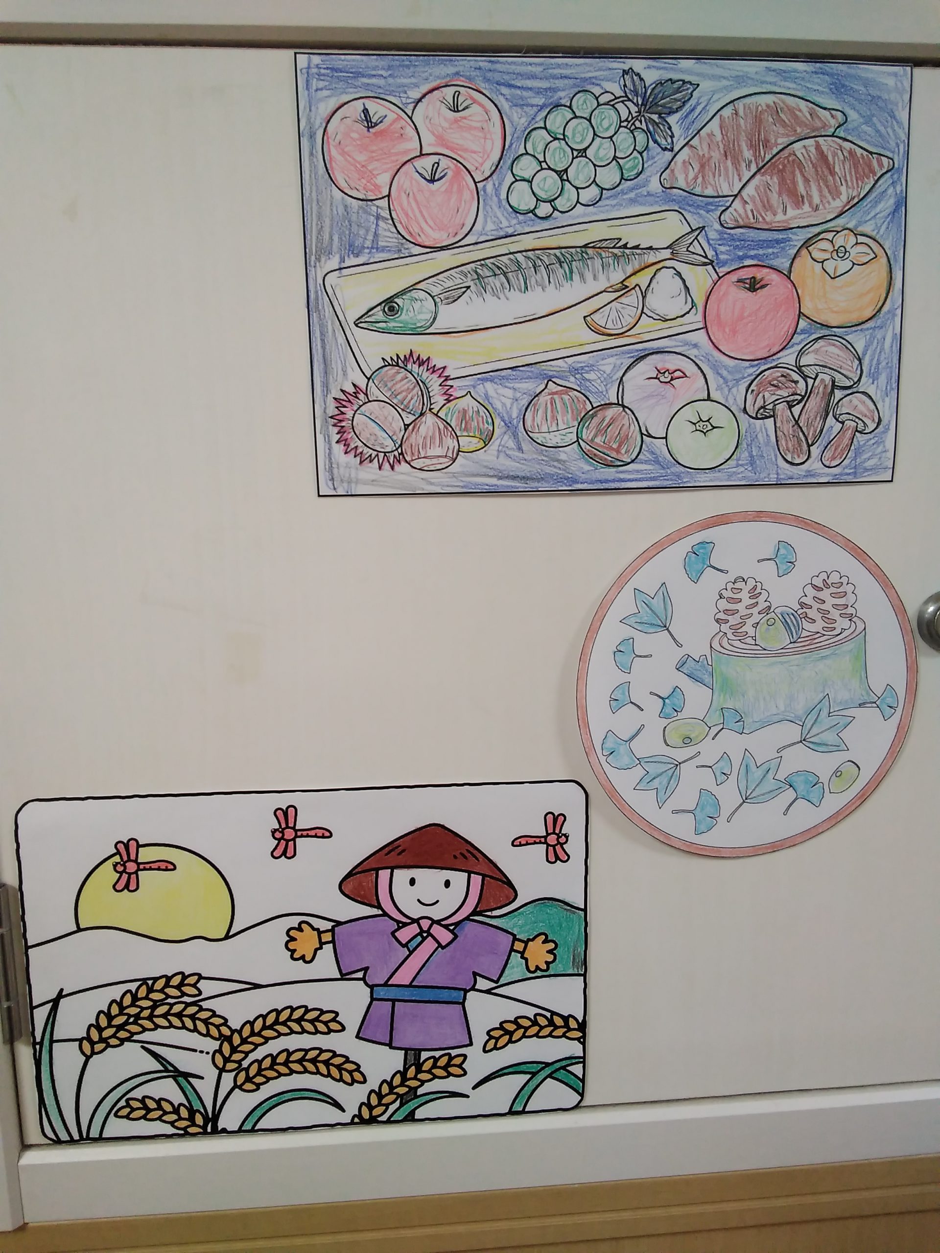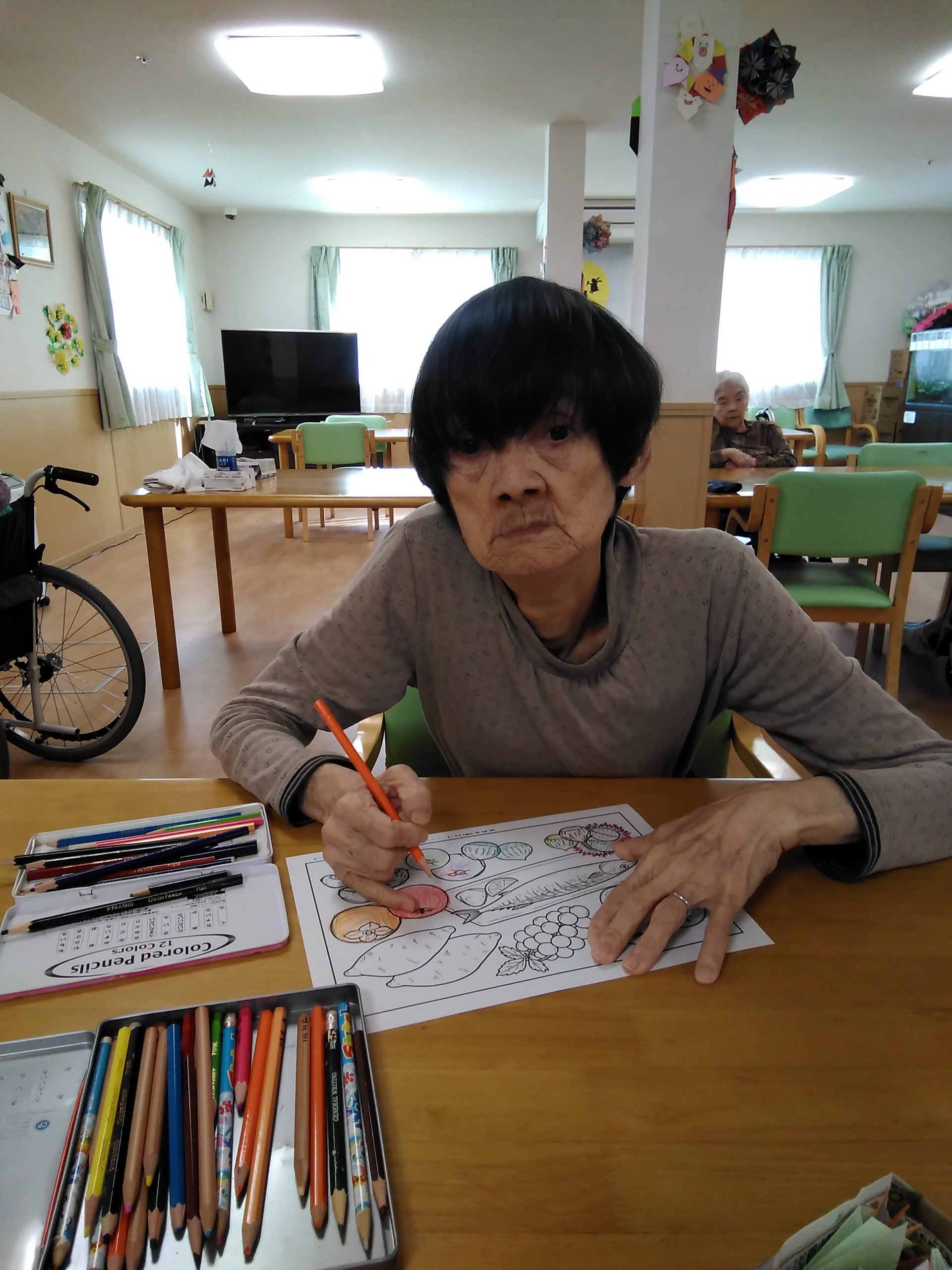 こんにちは! シニアライフ門真 今日は、秋の塗り絵にチャレンジしました(^^)/栗、さつま芋、柿にぶどう、松茸 さんまと美味しそうな物ばかりで 食べたいなーと食の話題ばかりになりました(#^.^#) Back Next