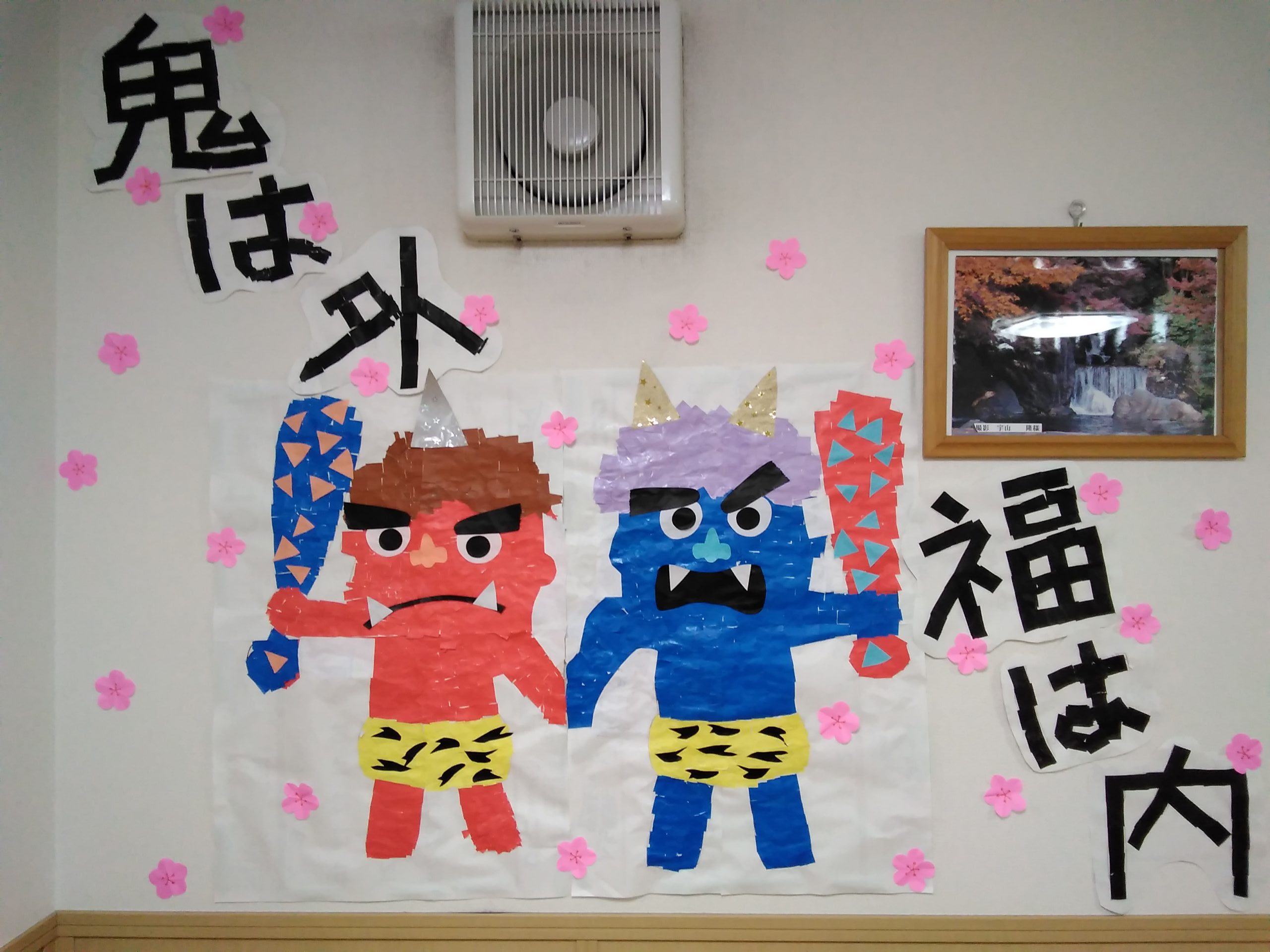 「鬼は外」「福は内」とちぎり絵で