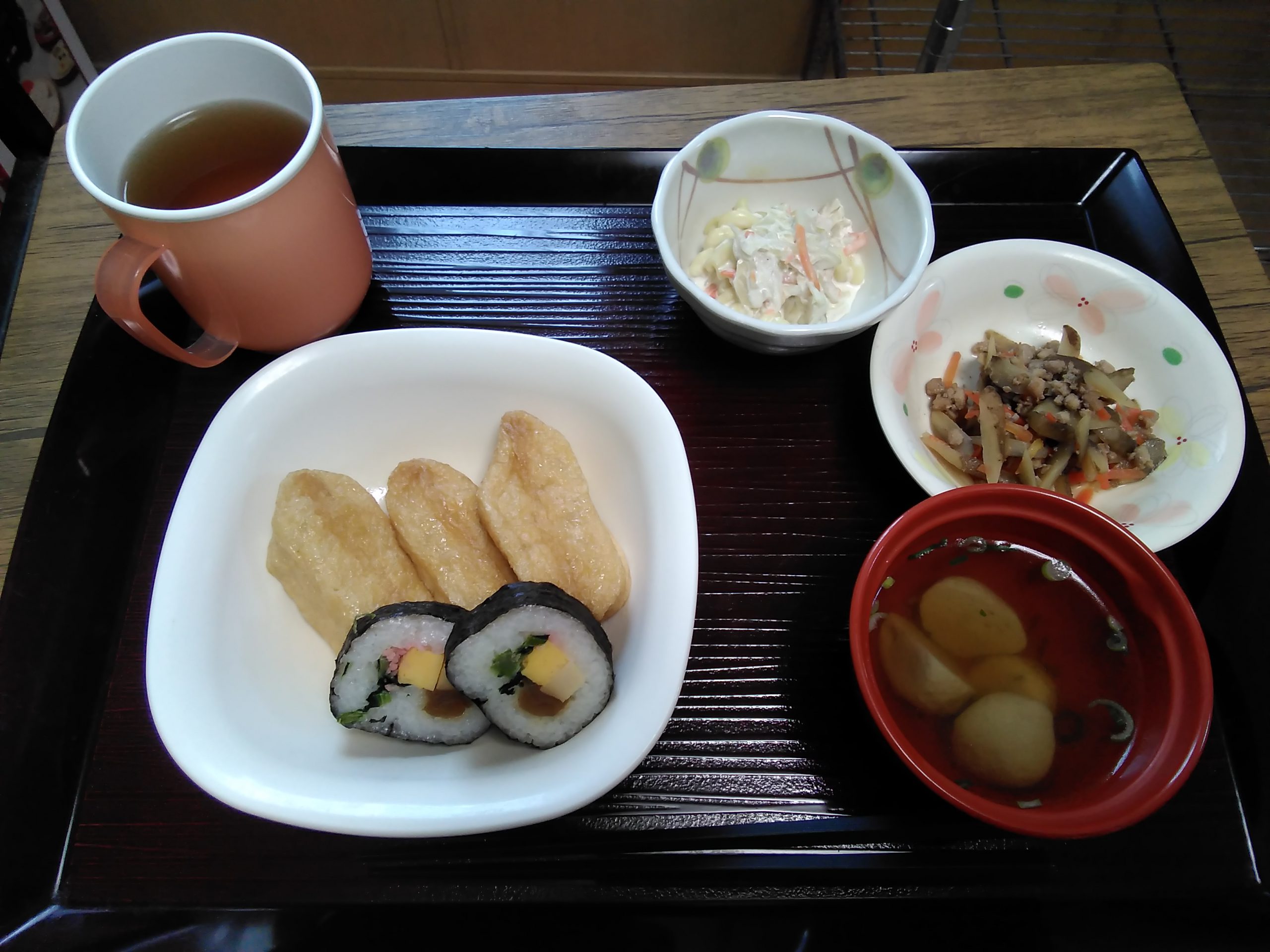 マカロニサラダ、いわしのつみれ汁です!