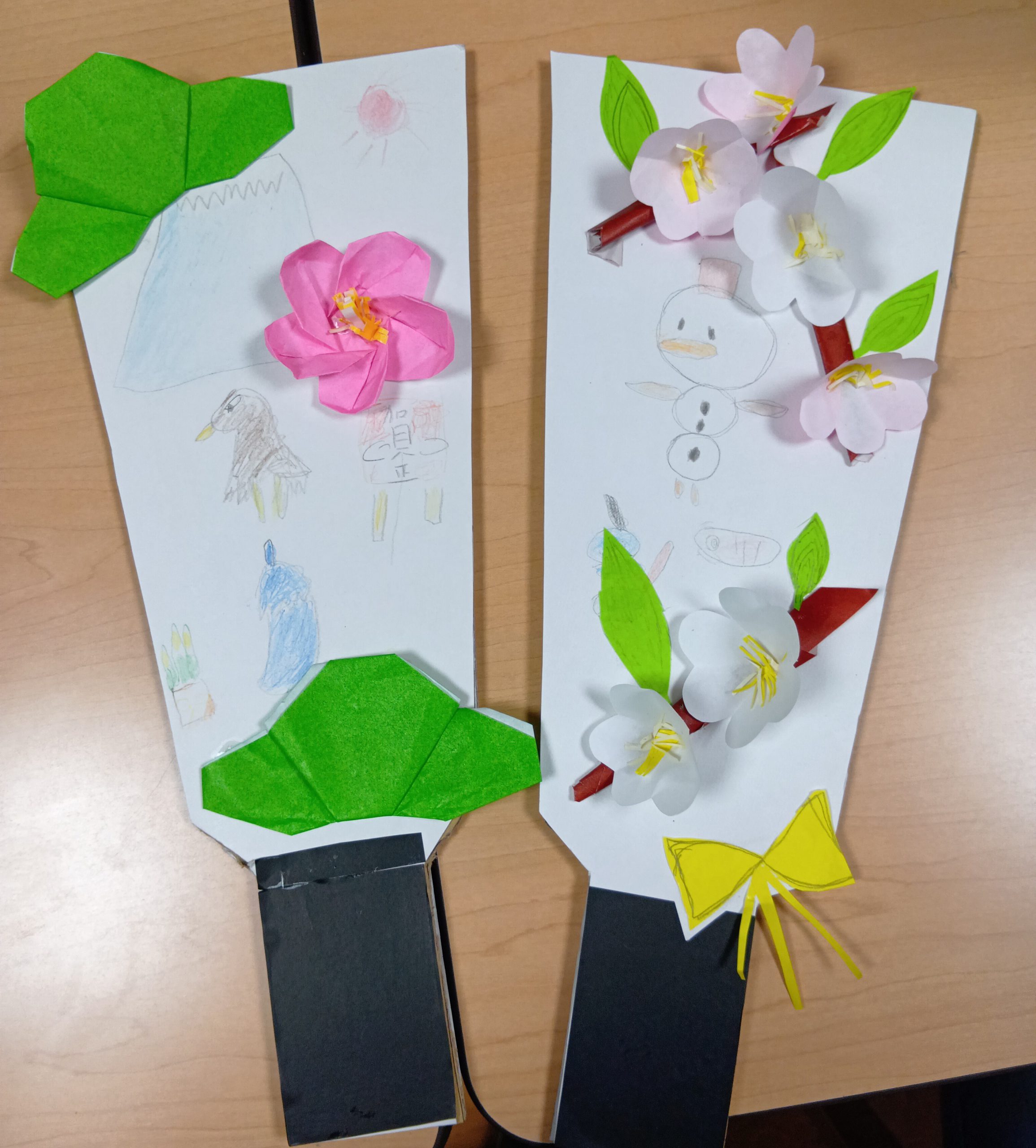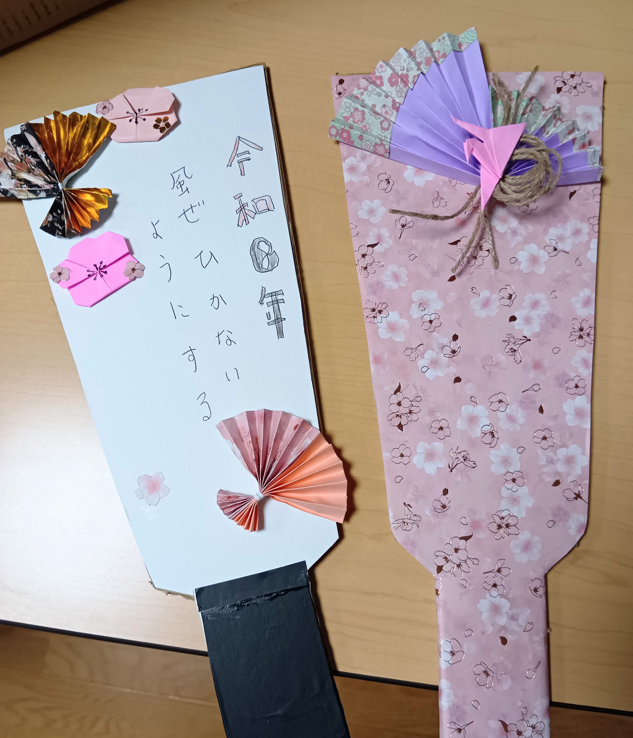 今日のレクでは、お正月の飾りを折り紙で色々作りました^-^ 手作りの羽子板に張り付けていき、大分華やかに仕上がりました♪