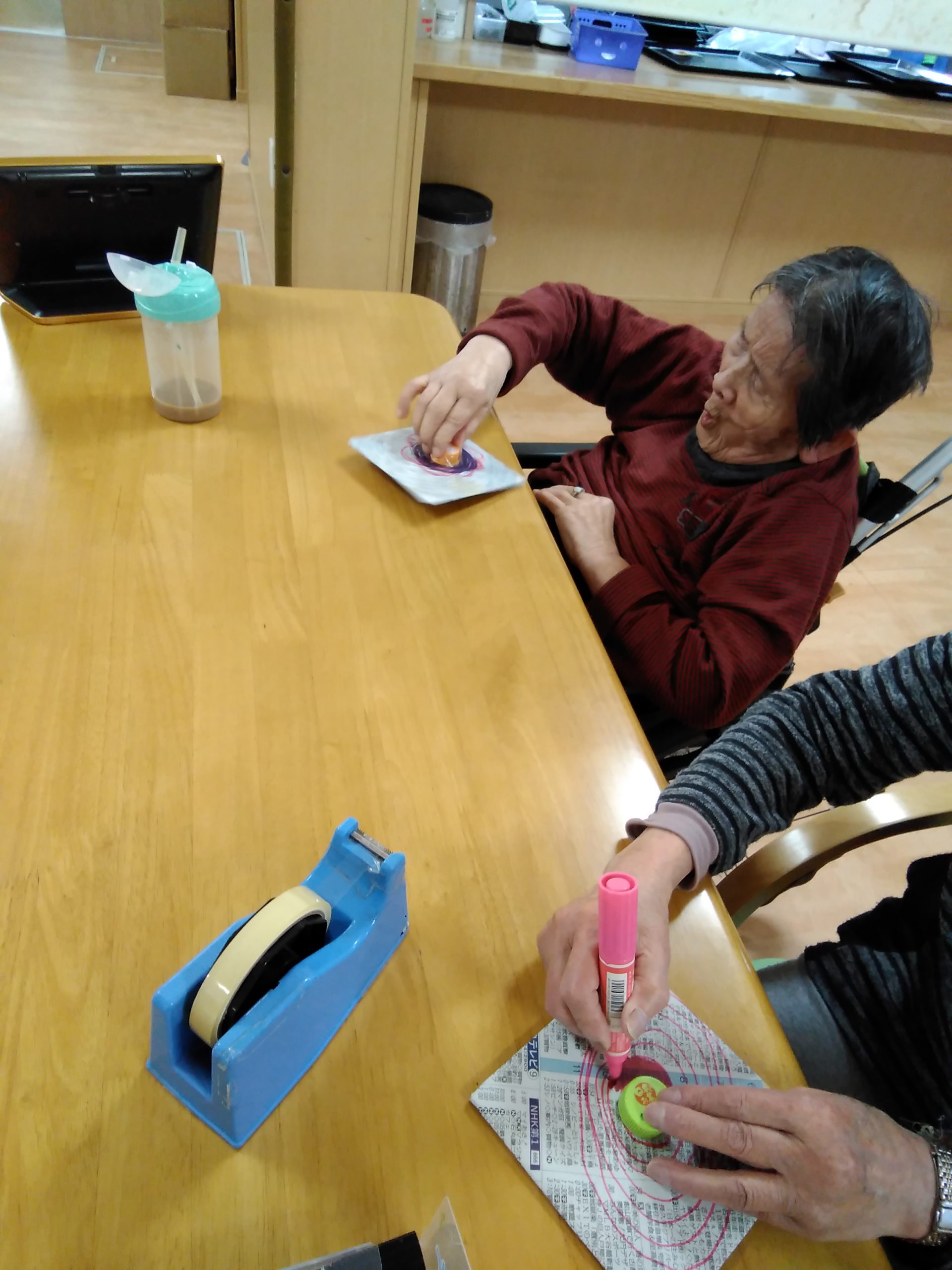 マジックで模様を付けて