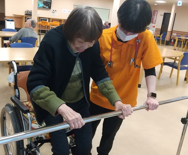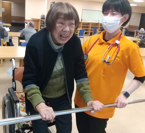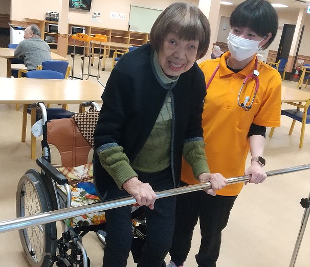 今日は雨が降っていたので食堂にてリハビリをしていました!!