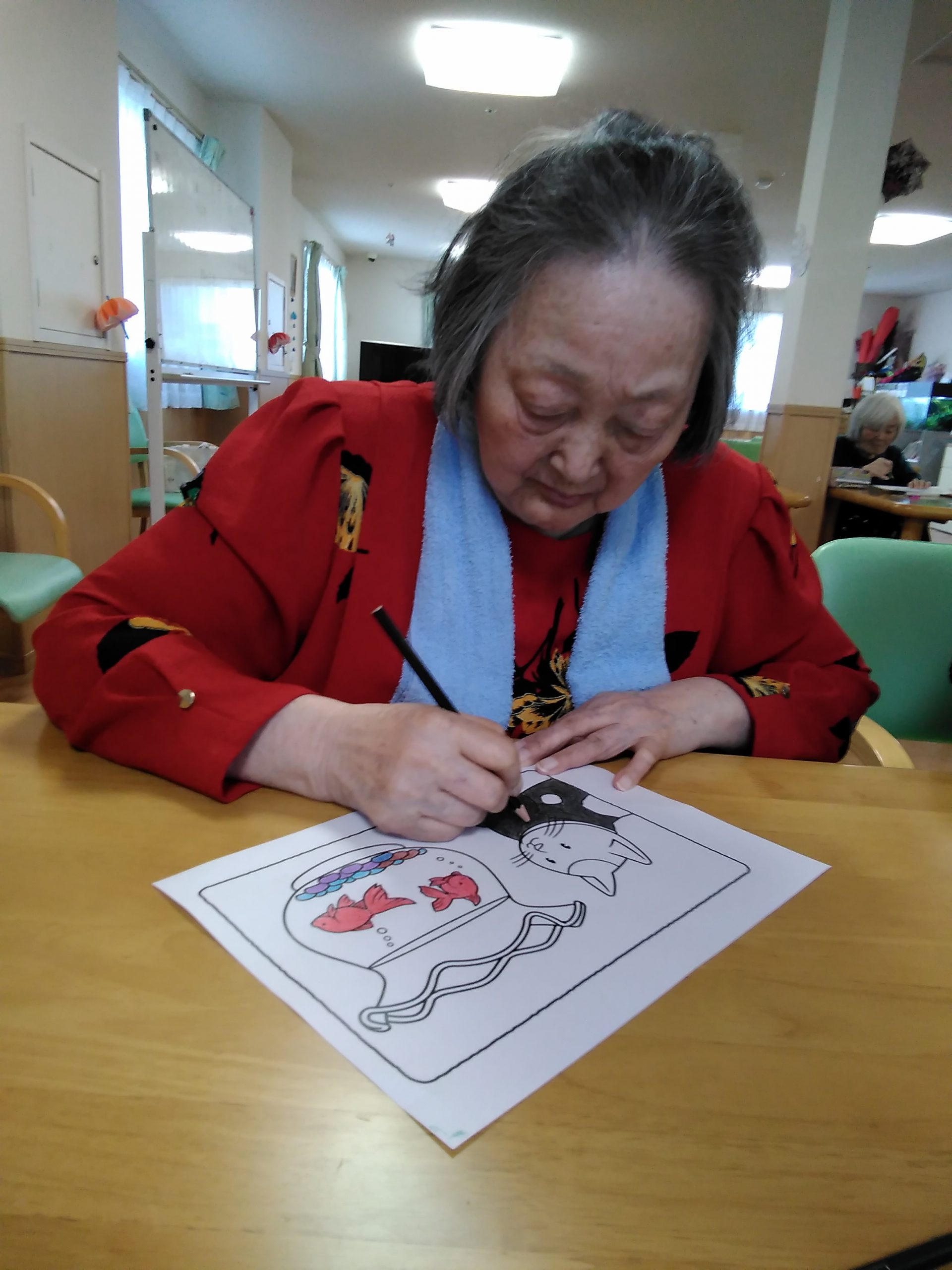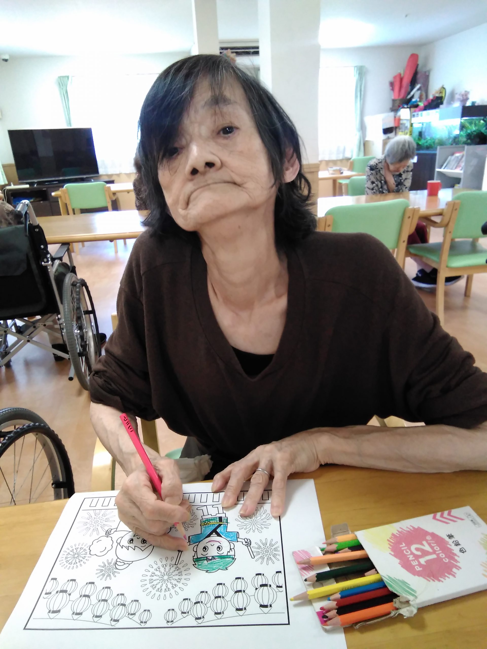 今日は夏のぬり絵をしました。