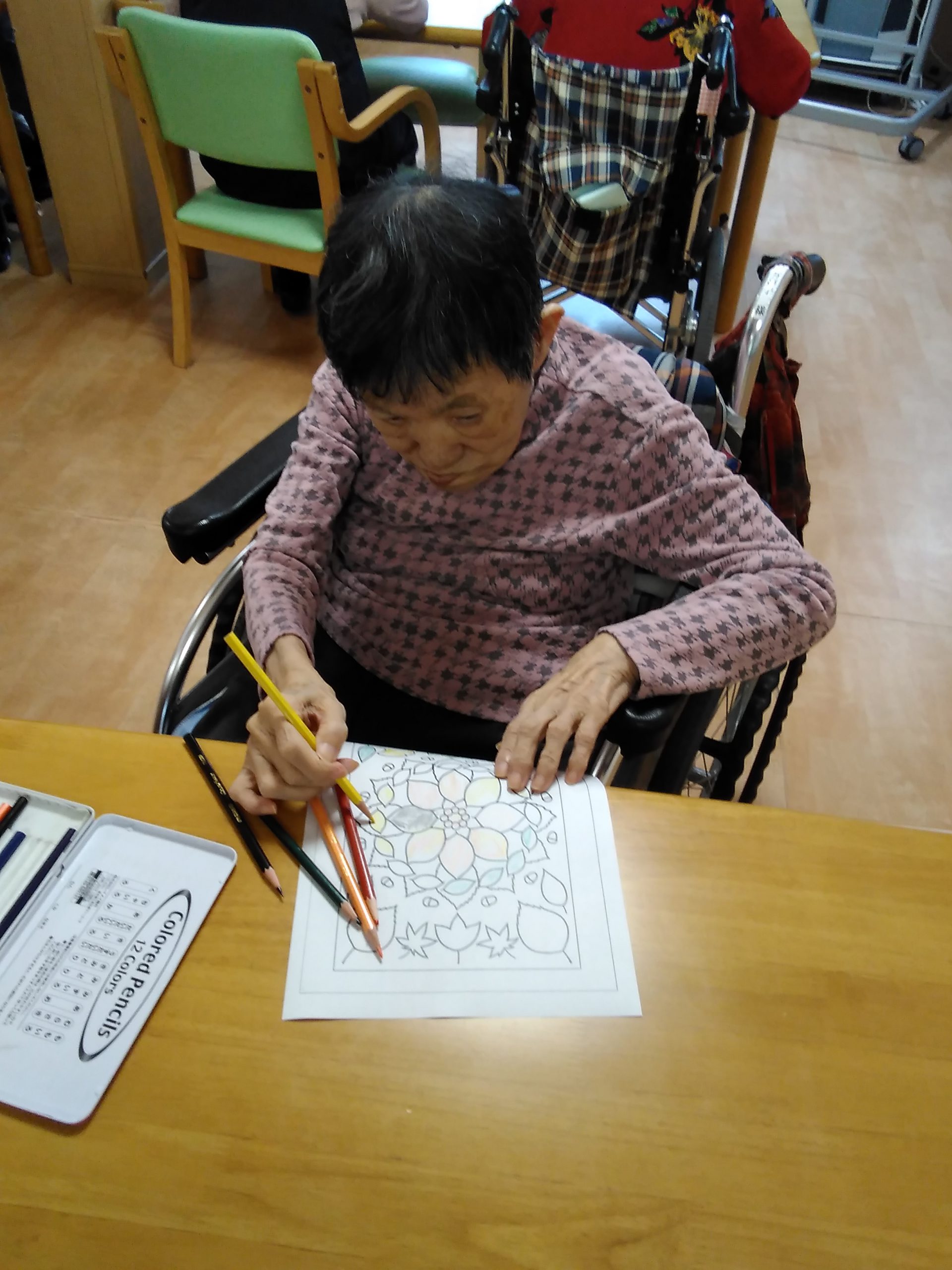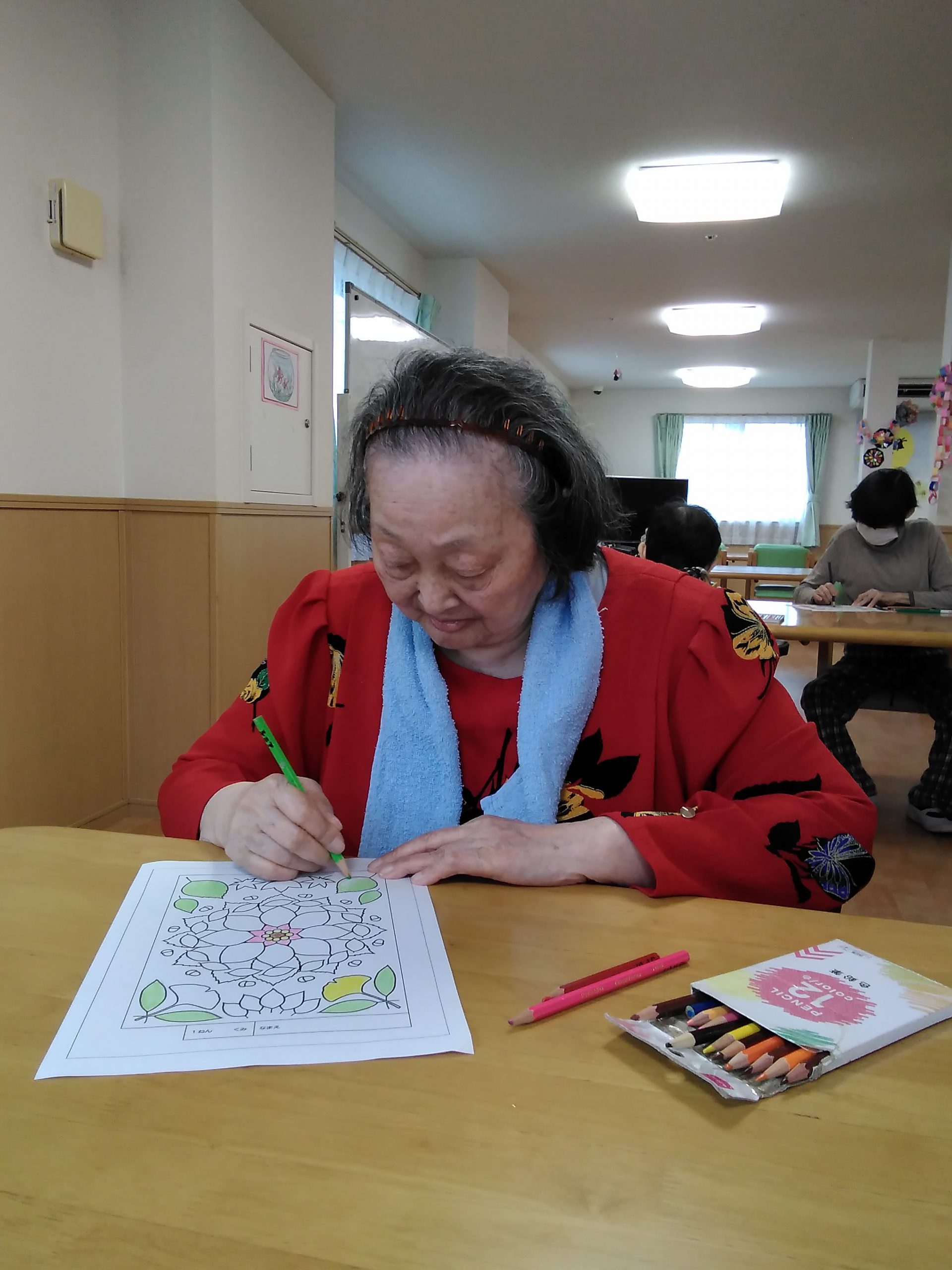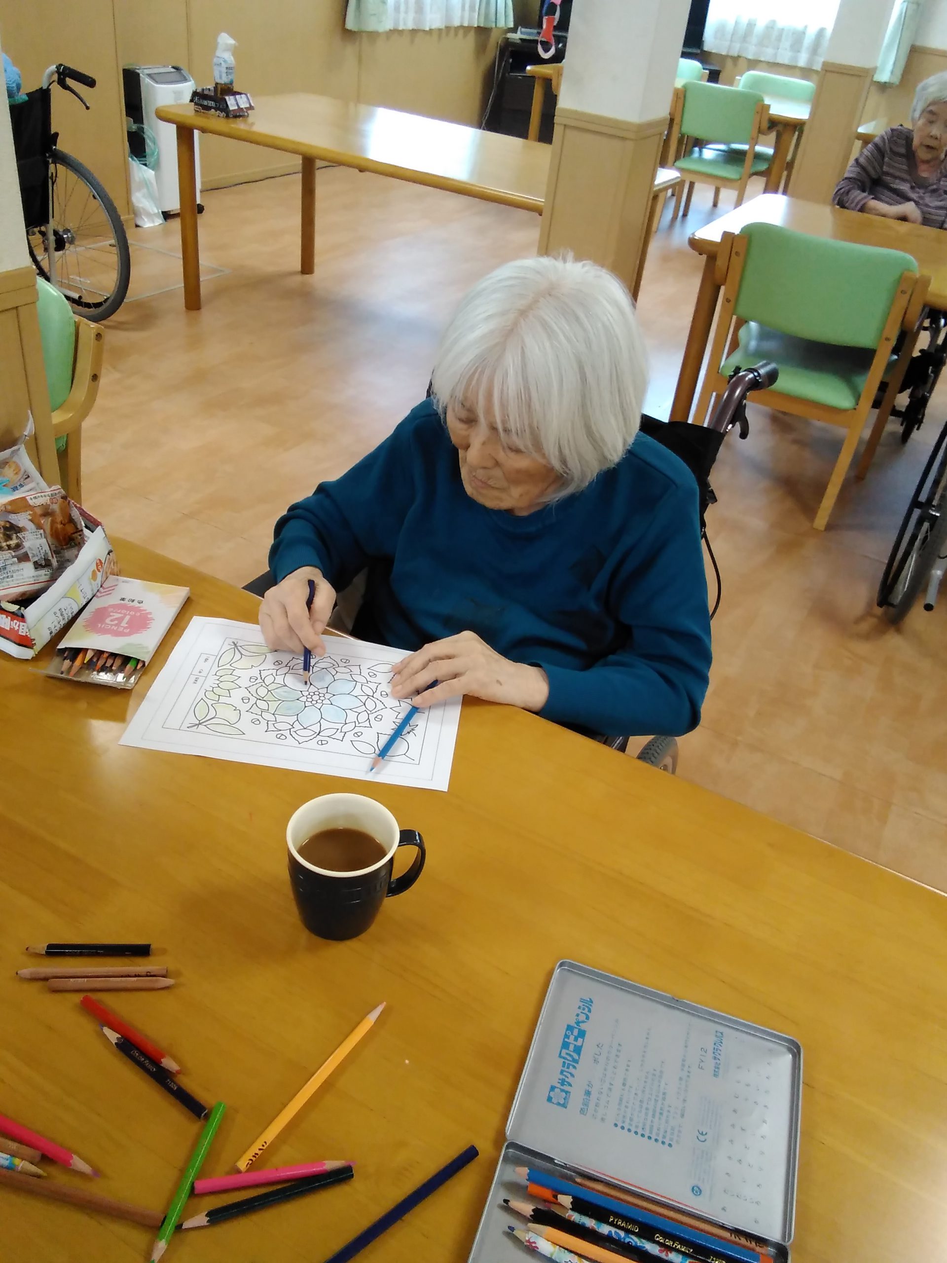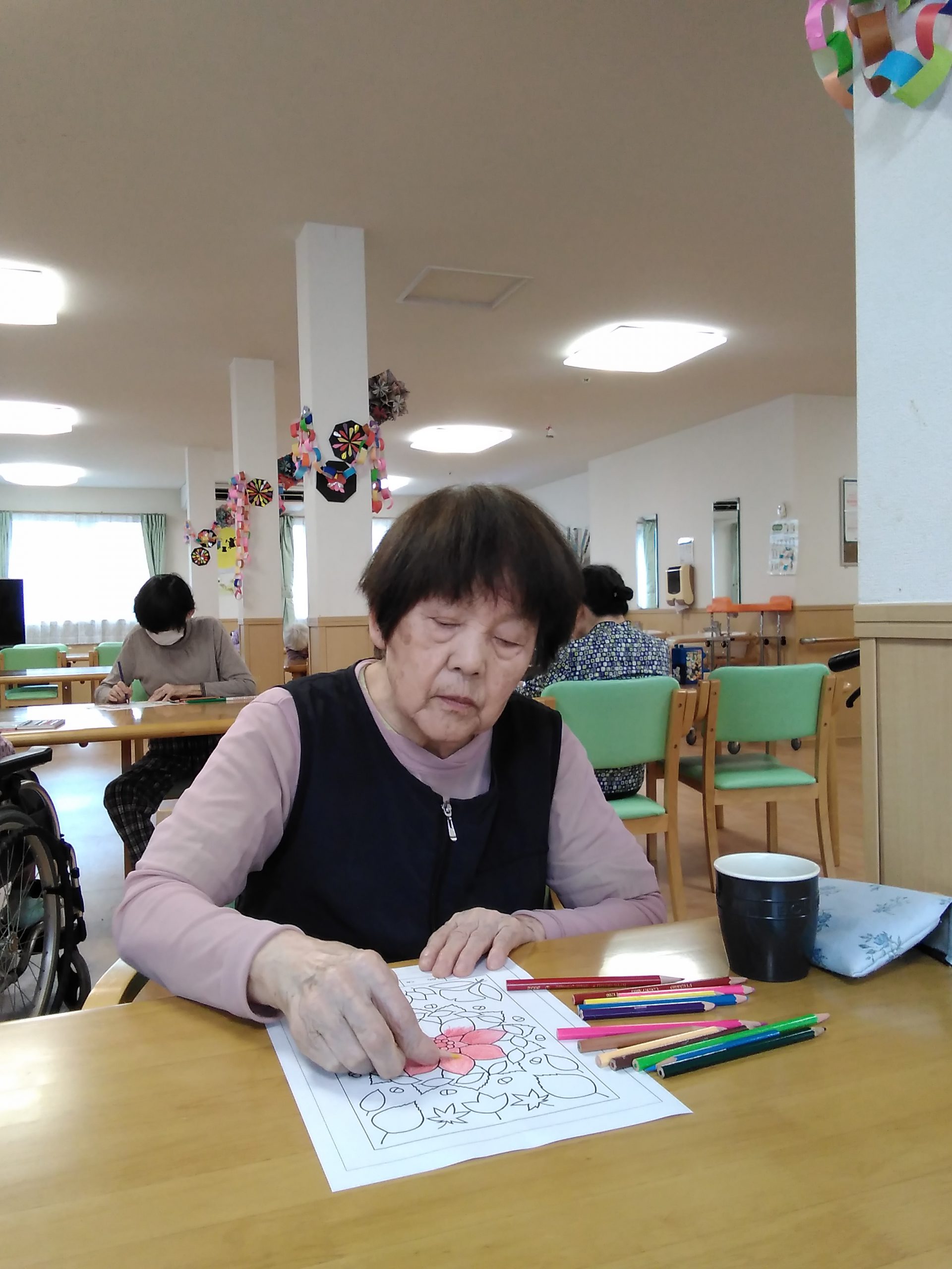 こんにちは! シニアライフ門真 本日は、花の塗り絵をして頂きました。 この色にしようかなぁ? こっちの花は何色にしようかなぁ? と悩みながらカラフルな色を使って 塗られておられました。 Back Next