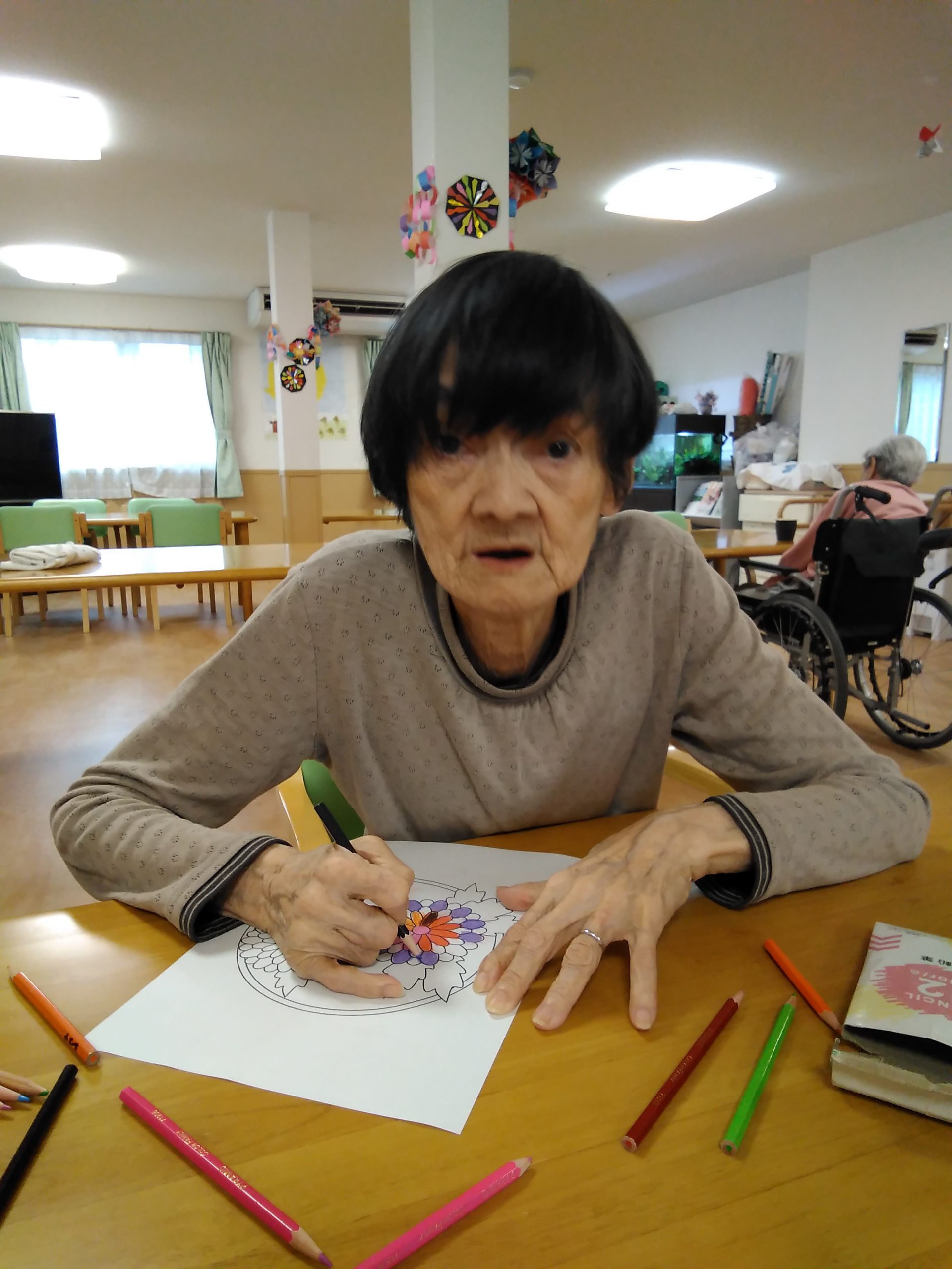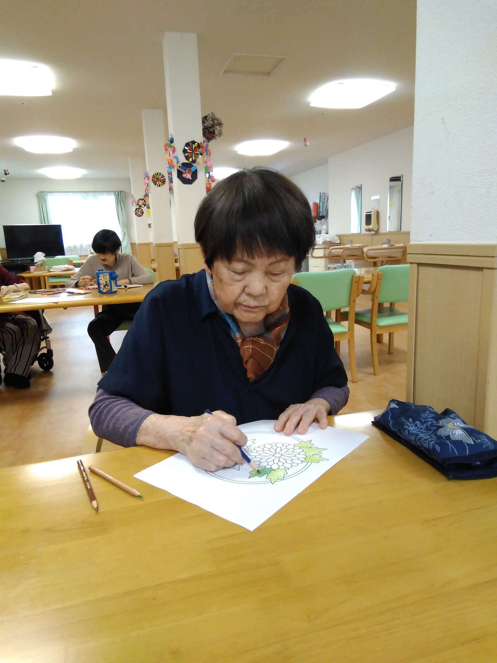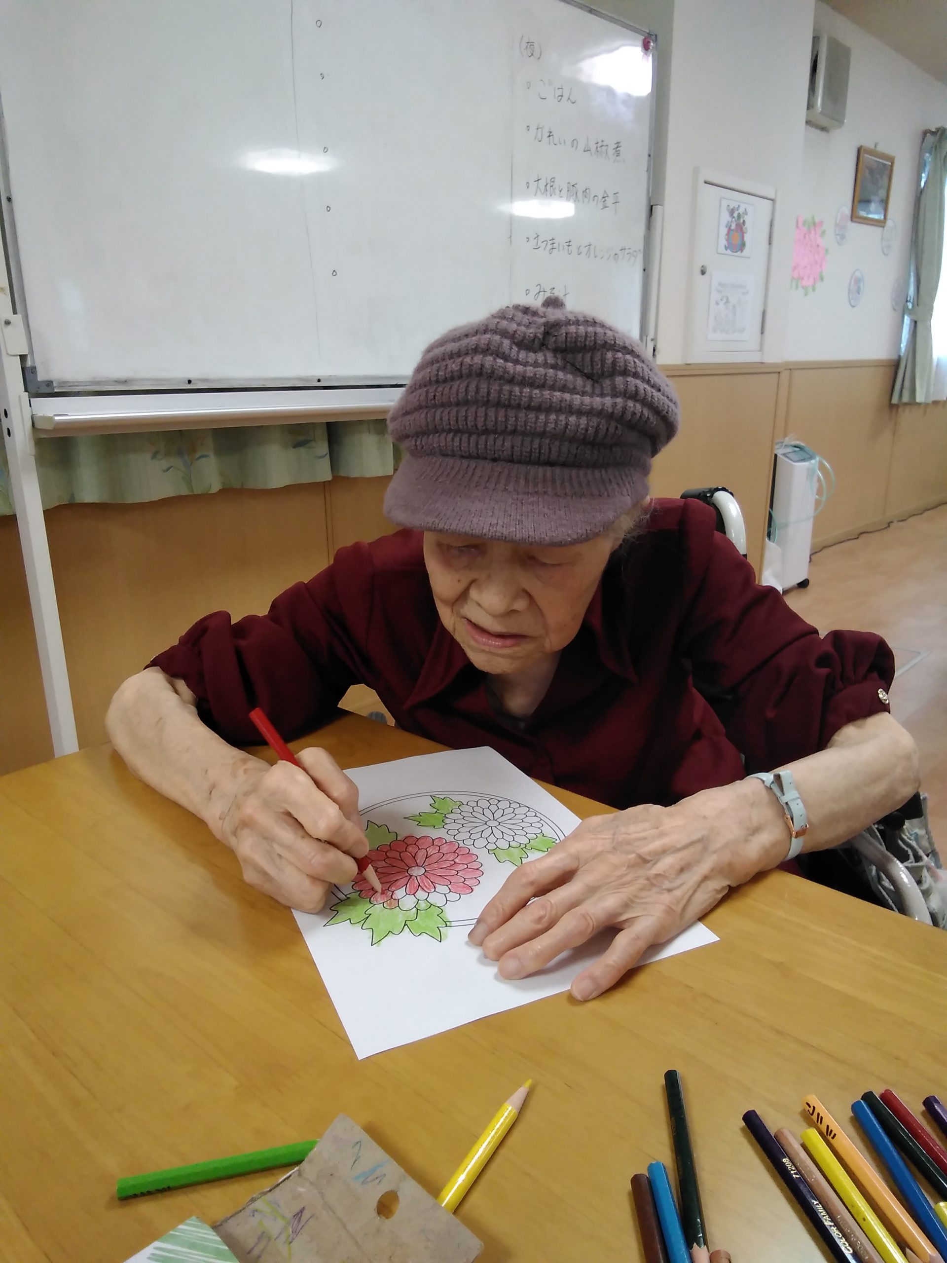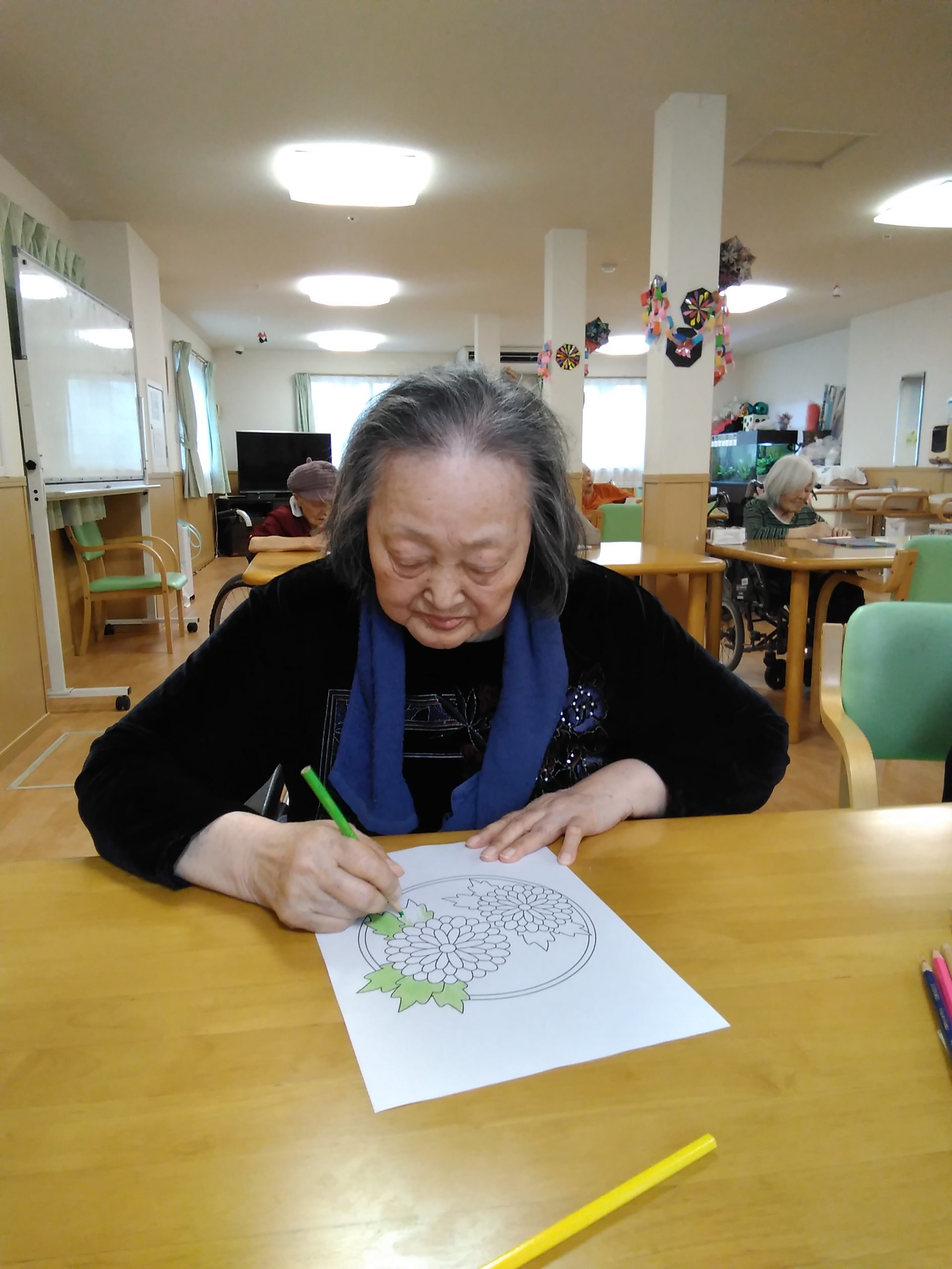 今日は、菊の花の塗り絵に