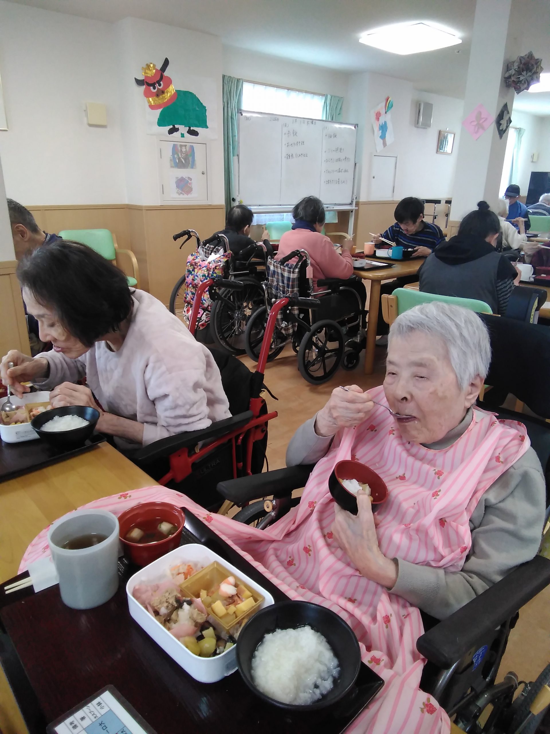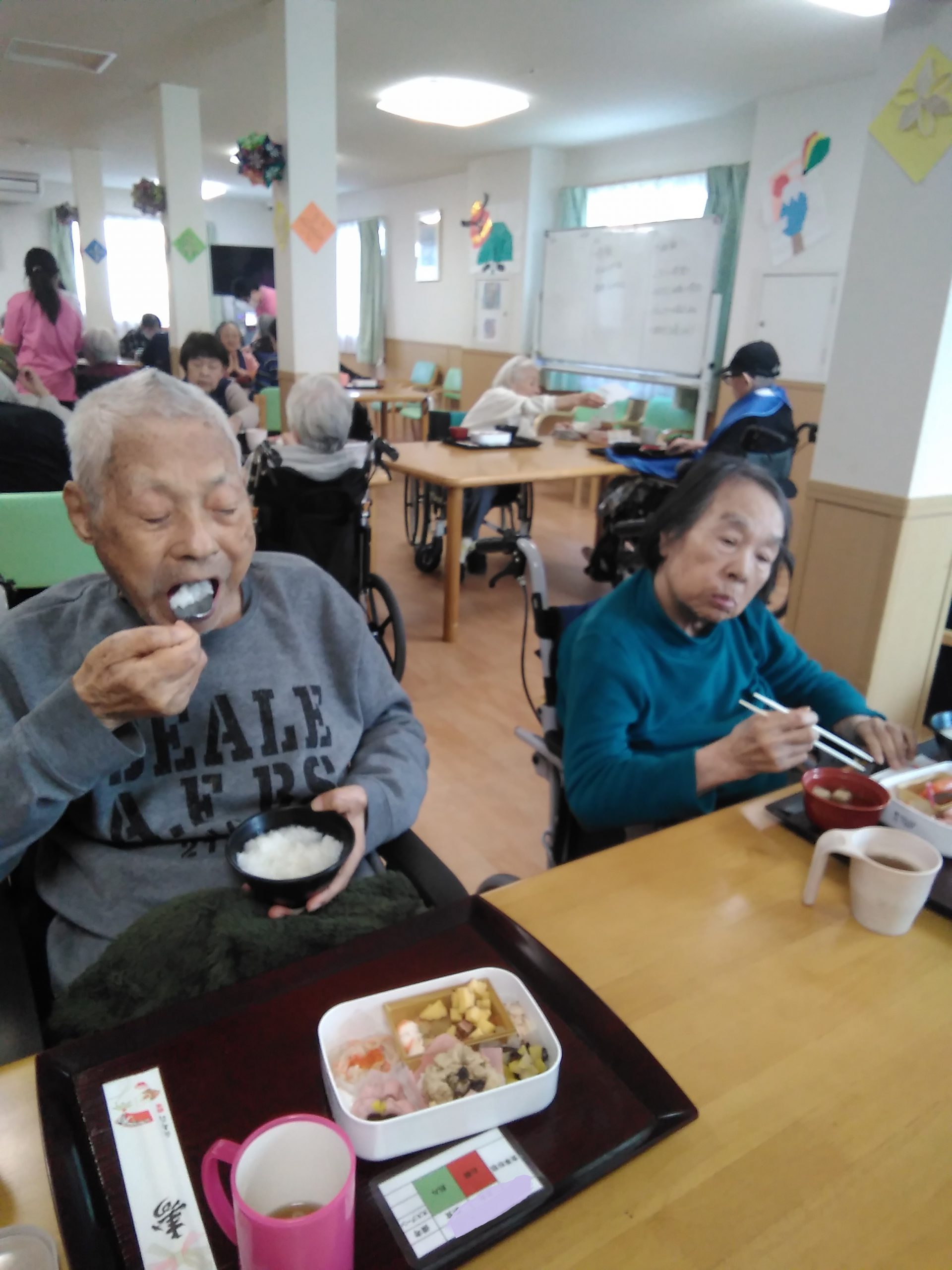 新年あけましておめでとうございます。 昼食前に管理者からの挨拶があり おせち料理を召し上がっていただきました! 本年もよろしくお願いいたします。