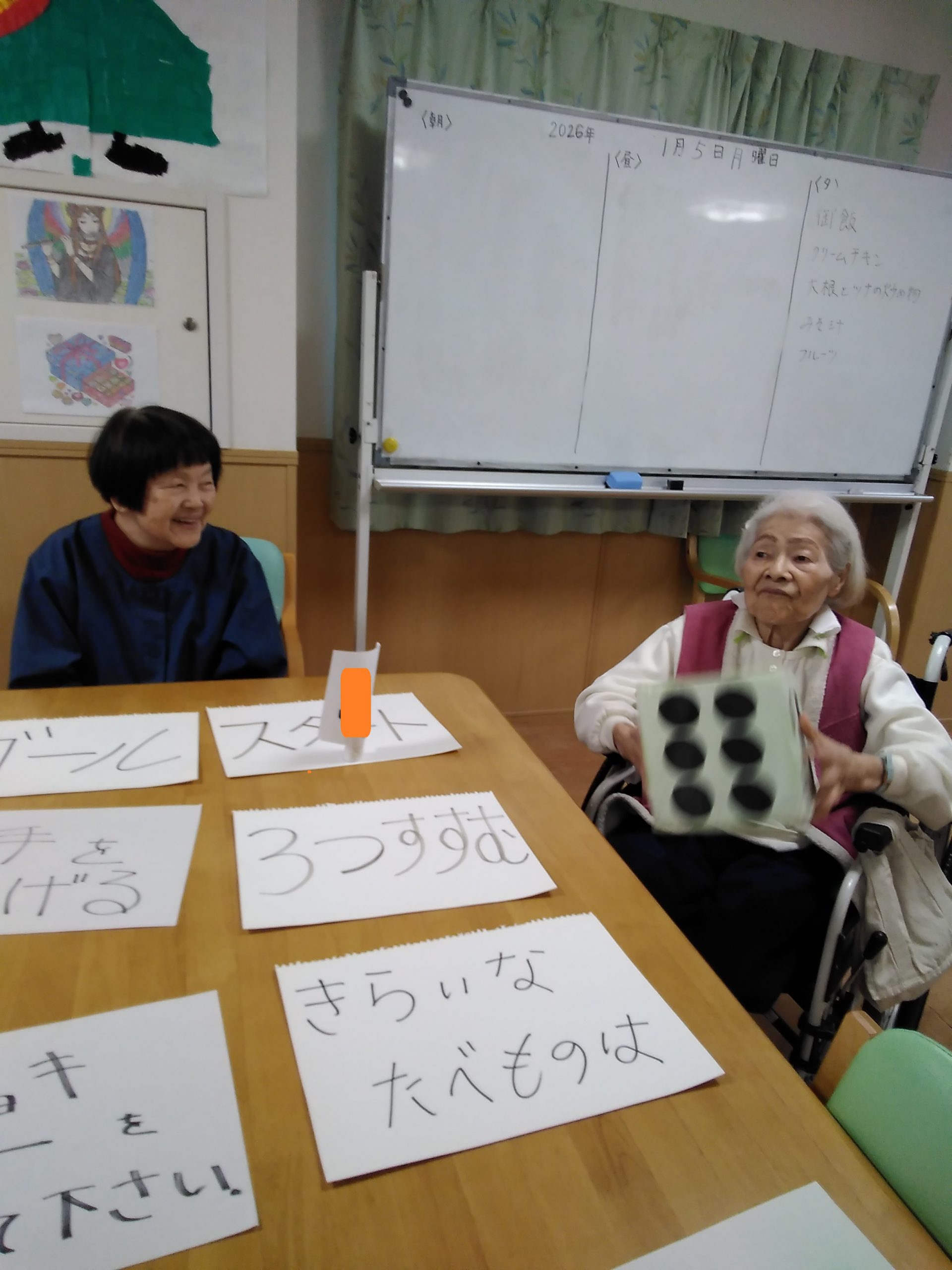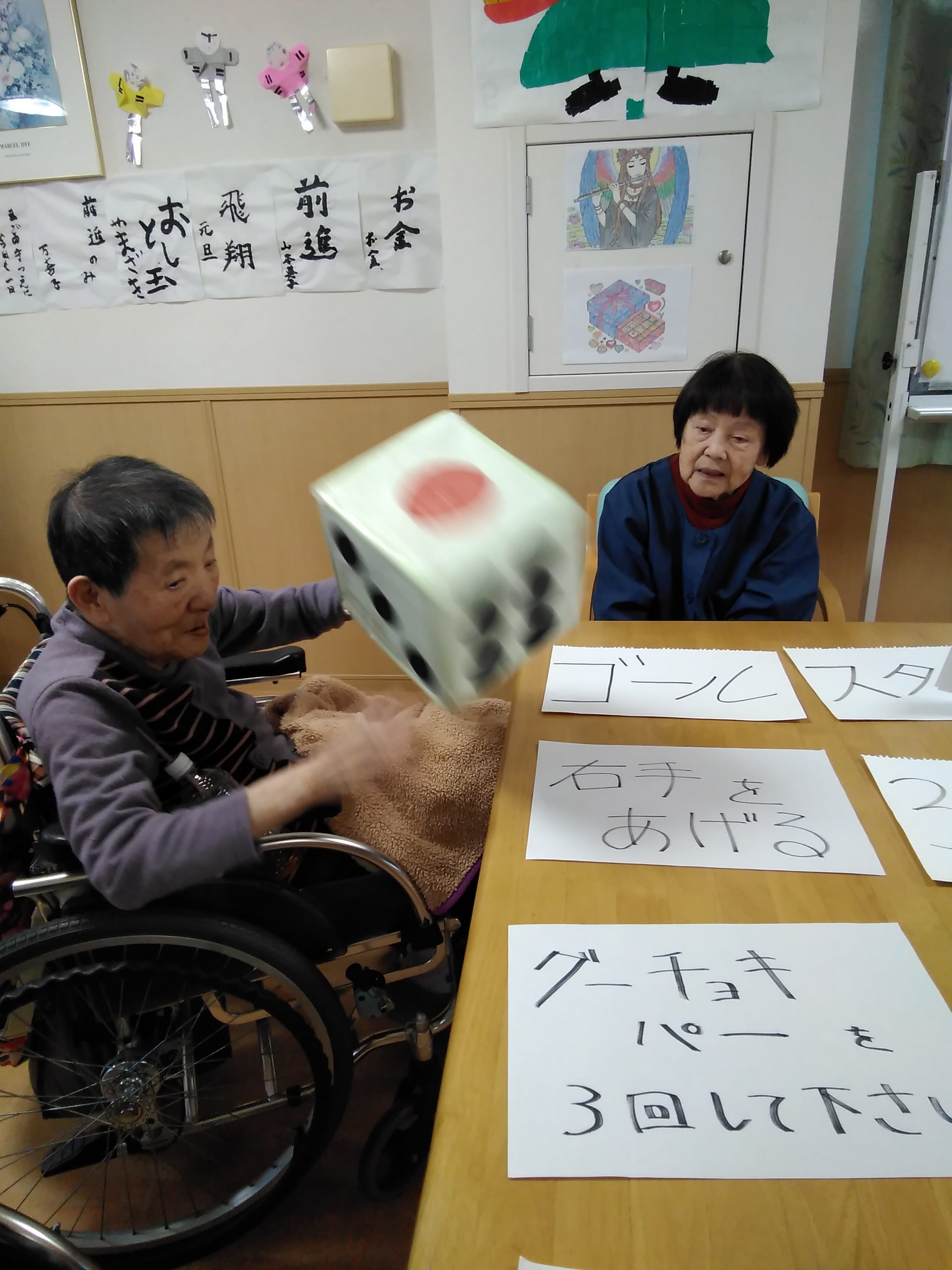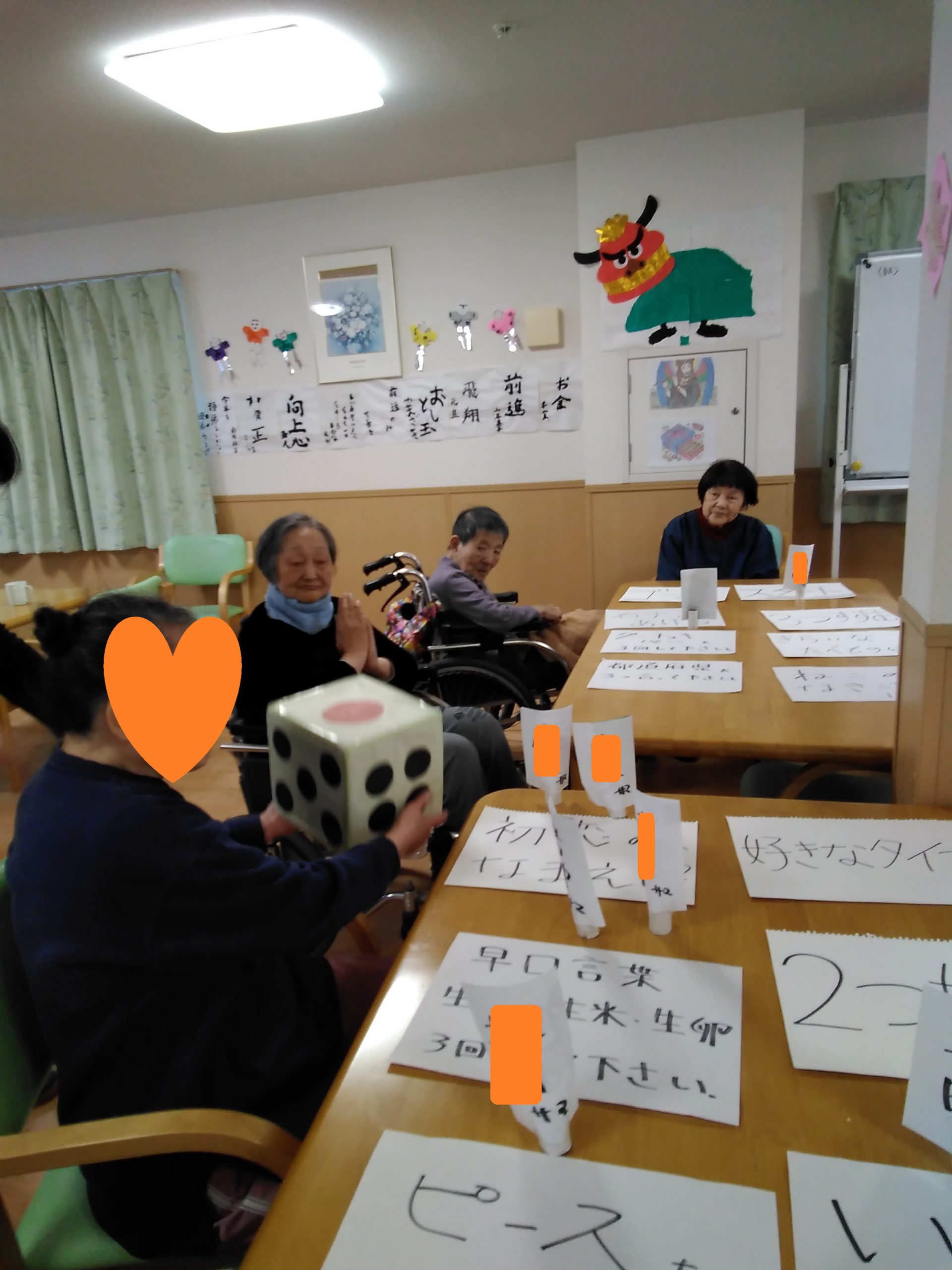 こんにちは! シニアライフ門真 今日は、すごろくゲームに チャレンジしました(^^)/ マス目は、早口言葉だったり、猫の鳴きまね グーチョキパーなど楽しんでもらい 初恋の話など照れ笑いされるのが とても可愛らしかったです(#^.^#) Back Next