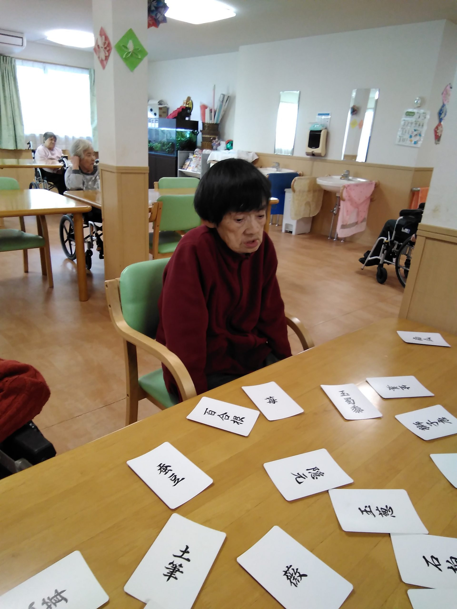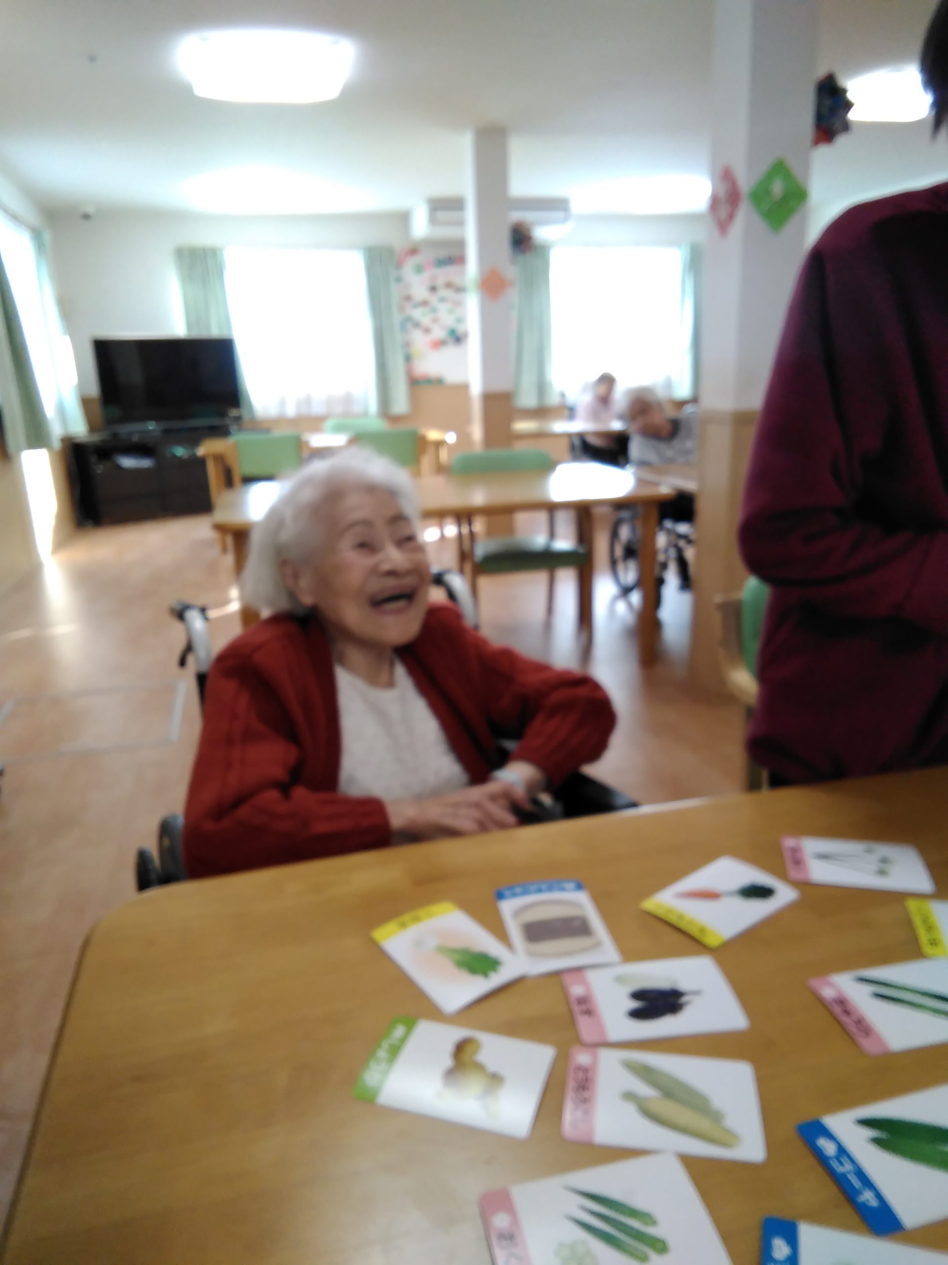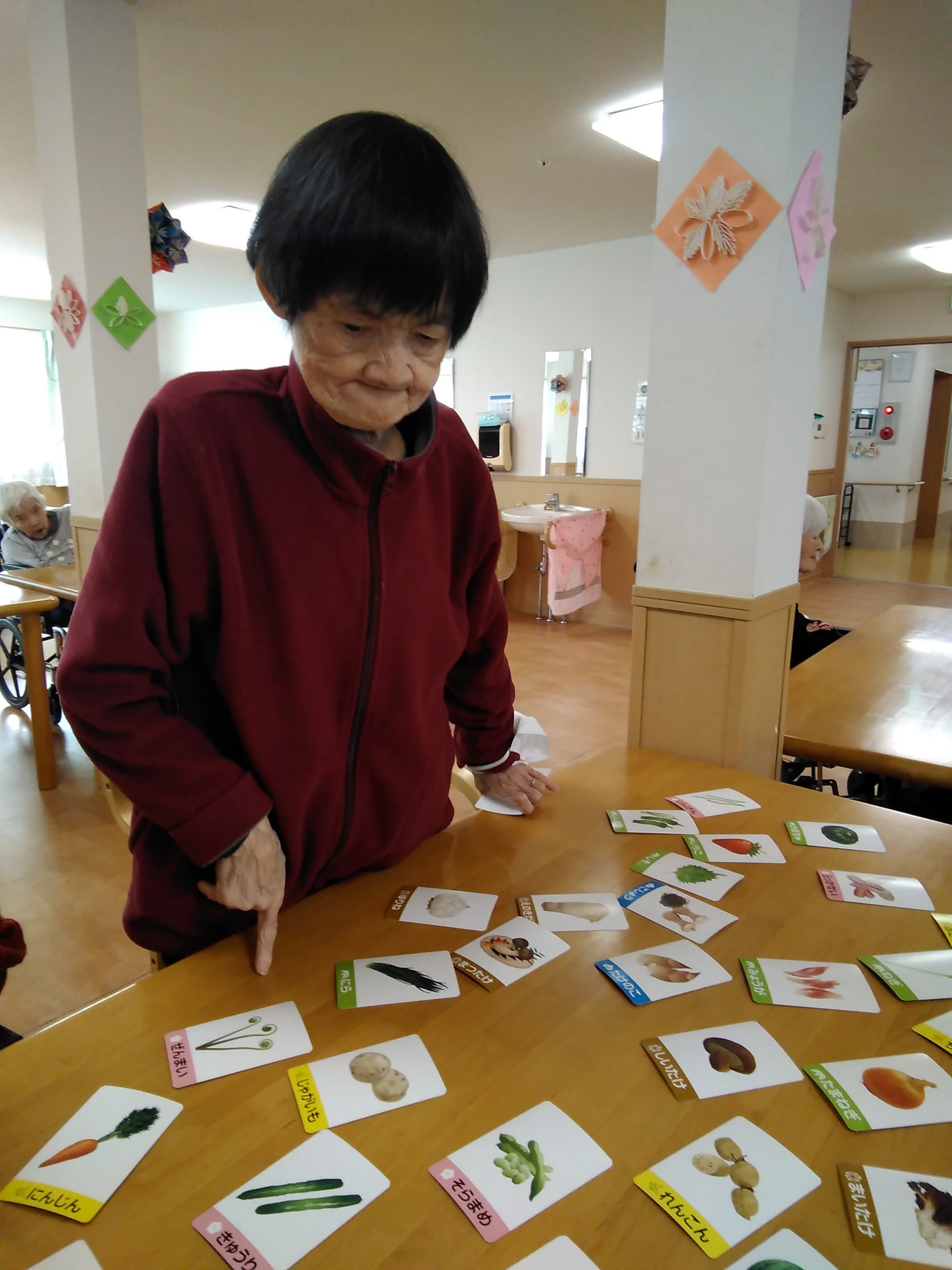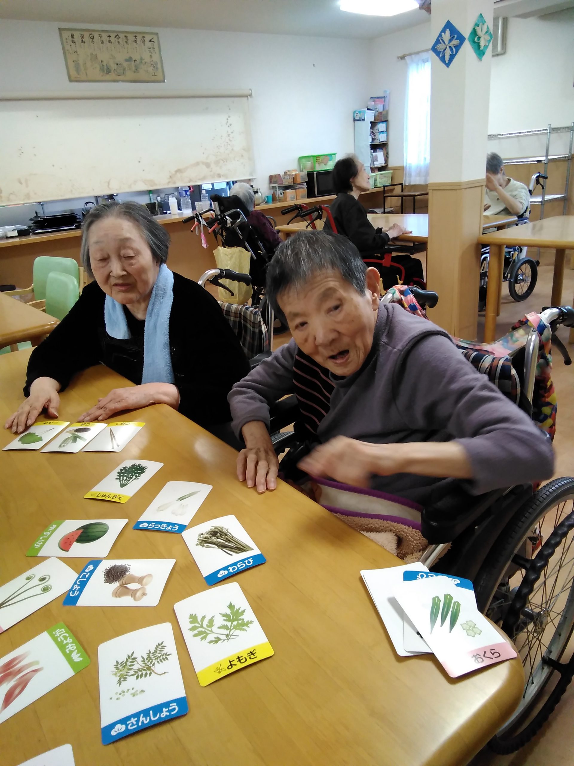こんにちは! シニアライフ門真 今日は、食べ物カード探しに チャレンジしました(^^)/ 絵で探す時は、スムーズにいきますが 漢字になると難易度がグッと上がり 難しい顔になります(#^.^#) Back Next