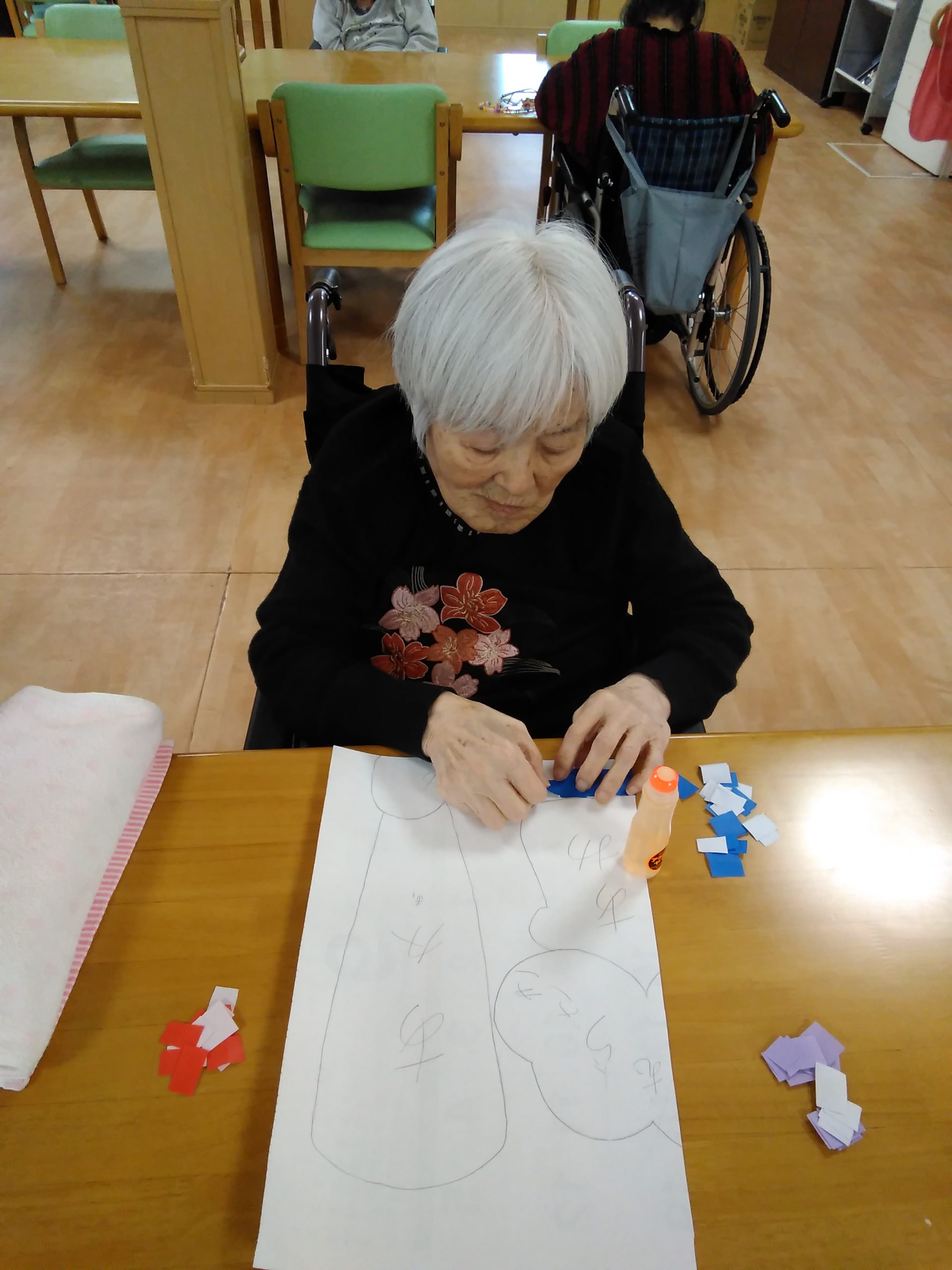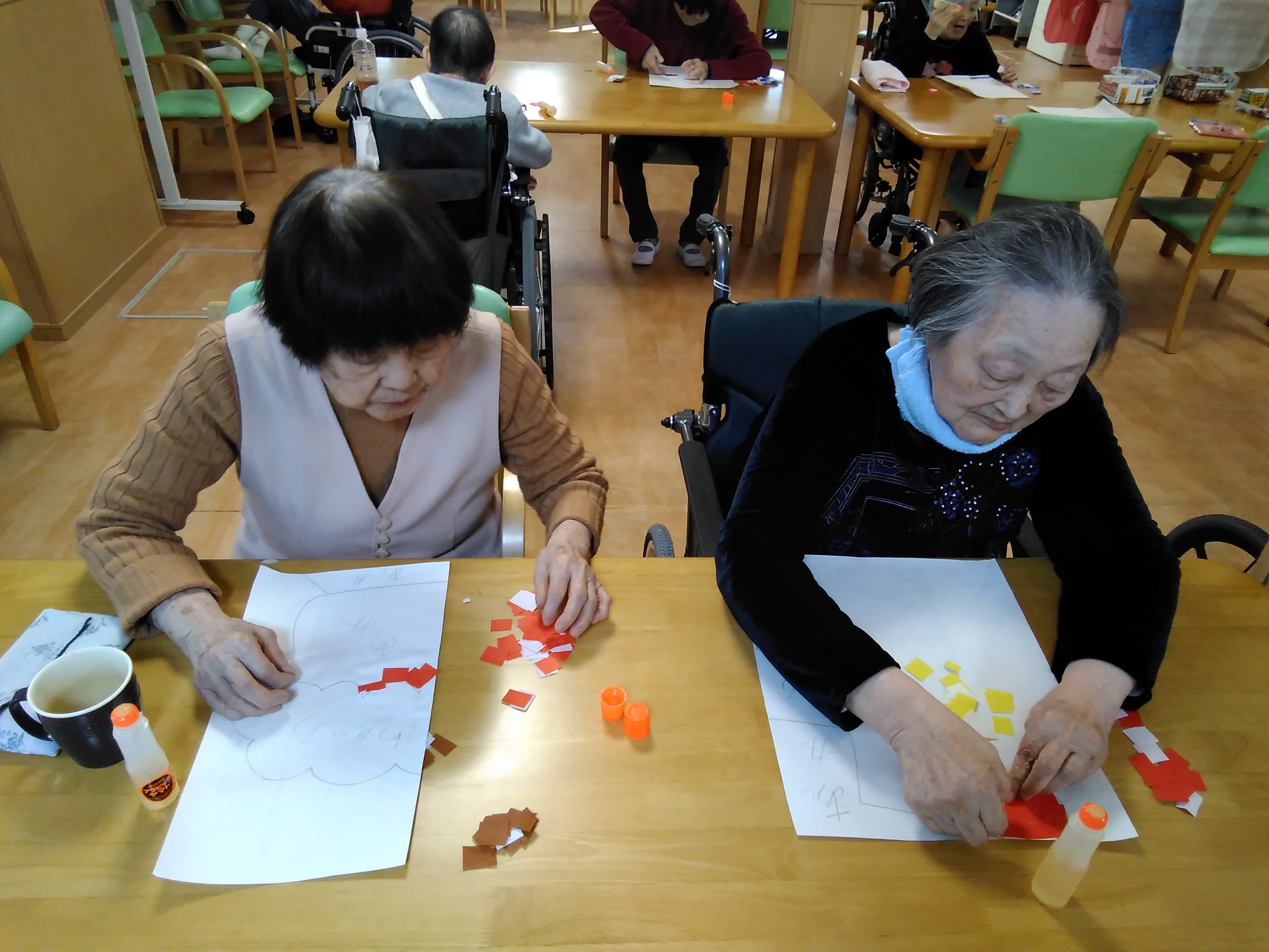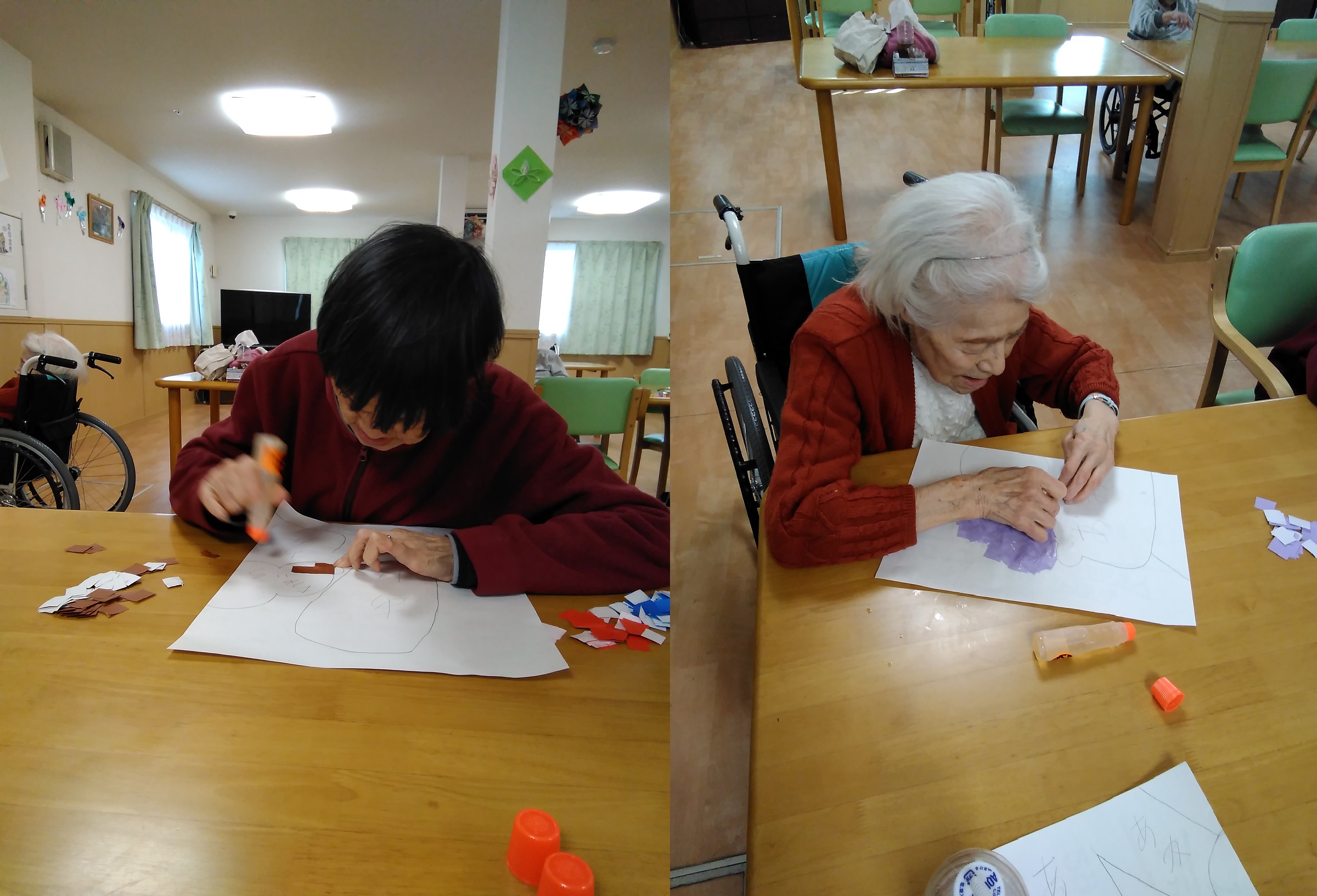 こんにちは! シニアライフ門真 本日は、来月節分の赤鬼、青鬼を 切り貼りして頂きました。 分割して貼って頂いているので 今どこを切り貼りしているのか 分からないと話され合体したらこんな風に なるよ!と確認しながら貼って頂きました。 Back Next