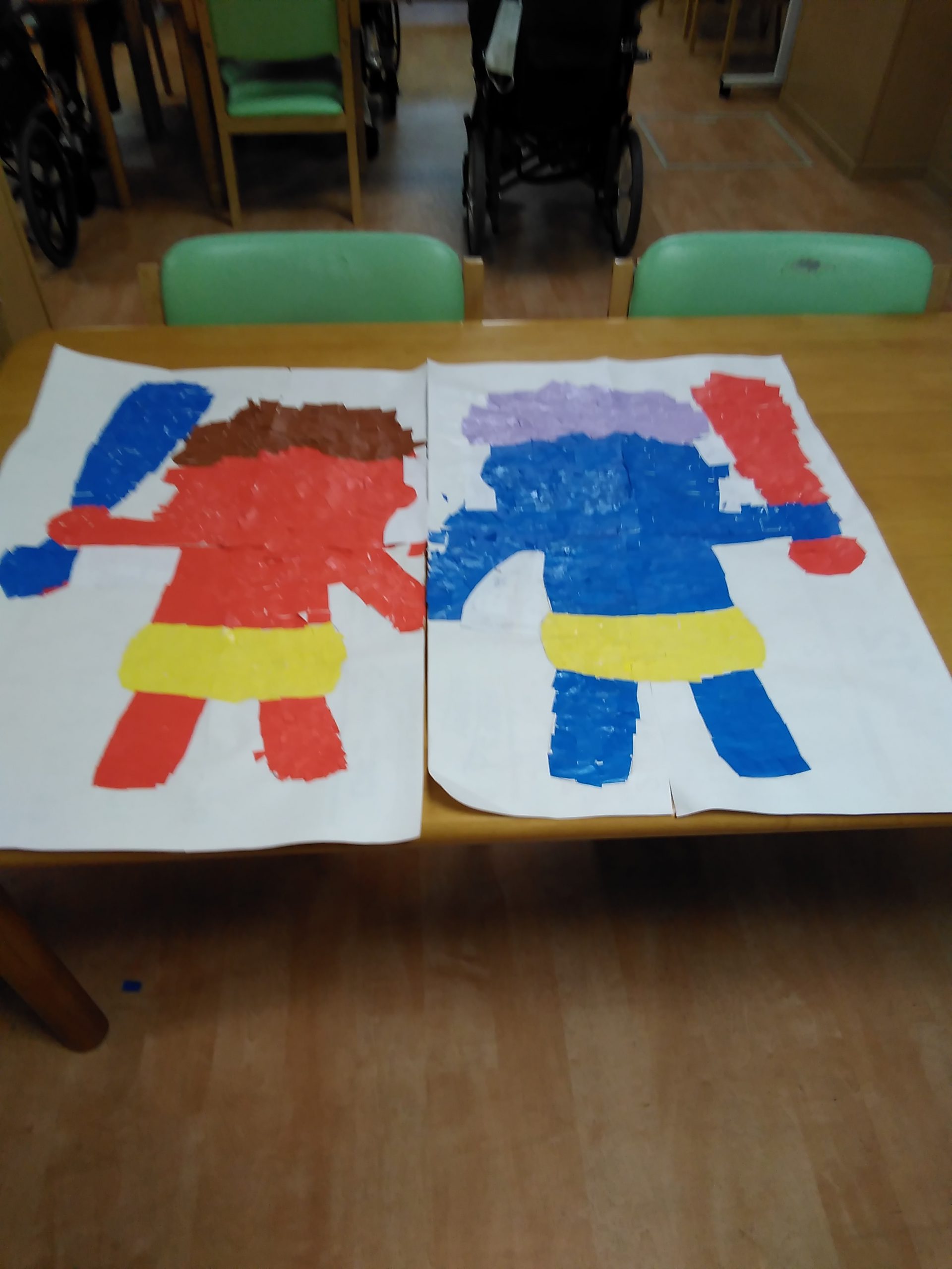 昨日に続きで赤鬼、青鬼の切り絵をして頂き