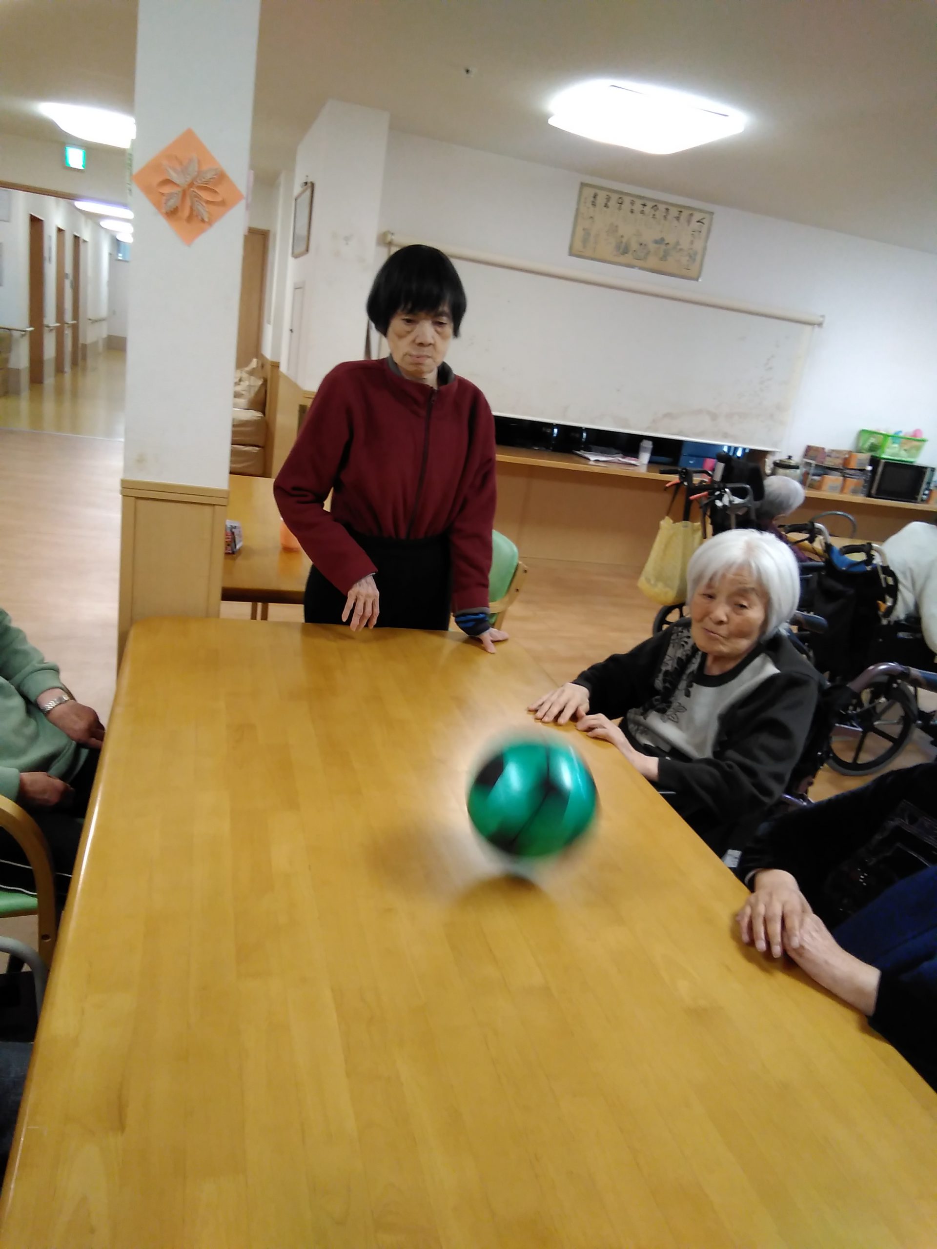 こんにちは! シニアライフ門真 今日は、テーブルの上でボール転がしに チャレンジしました(^^)/ もっと優しく!弱めでお願い!など アドバイスを出し合いながら ラリーを続けられていました(#^.^#) Back Next