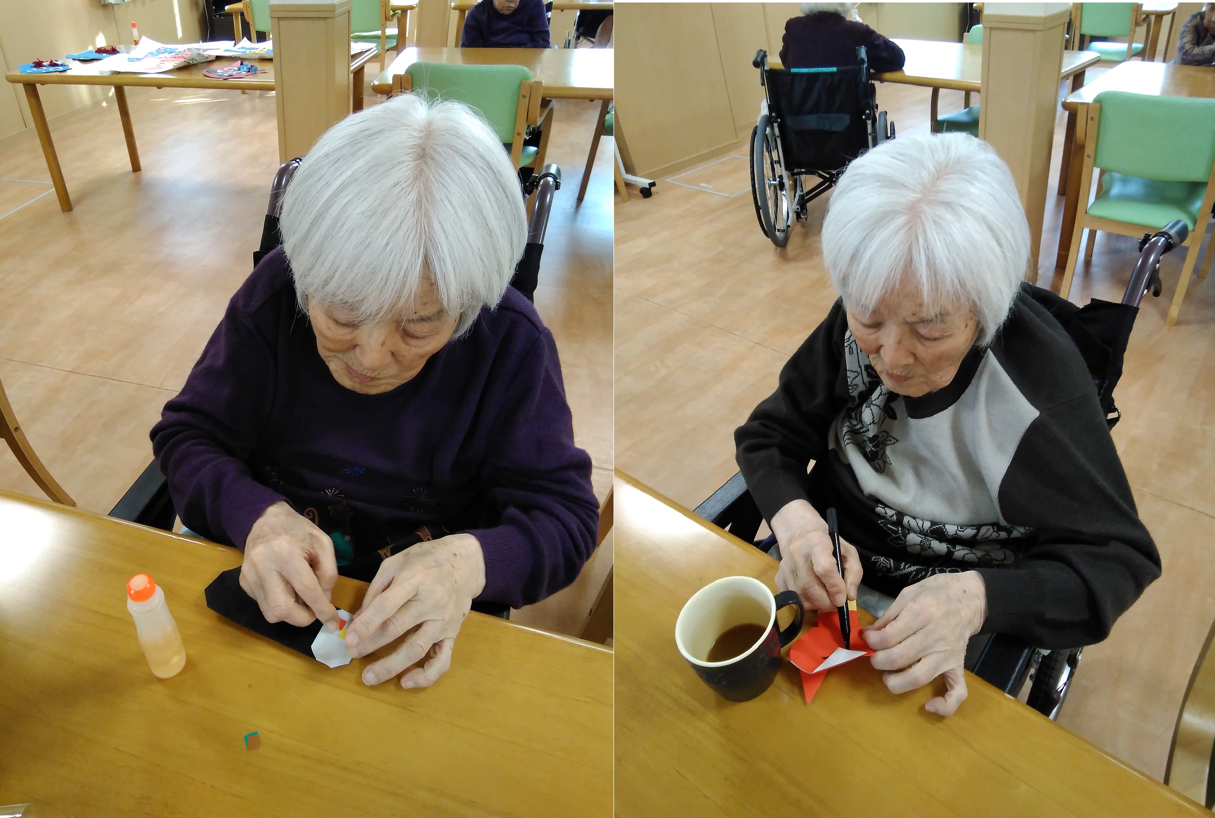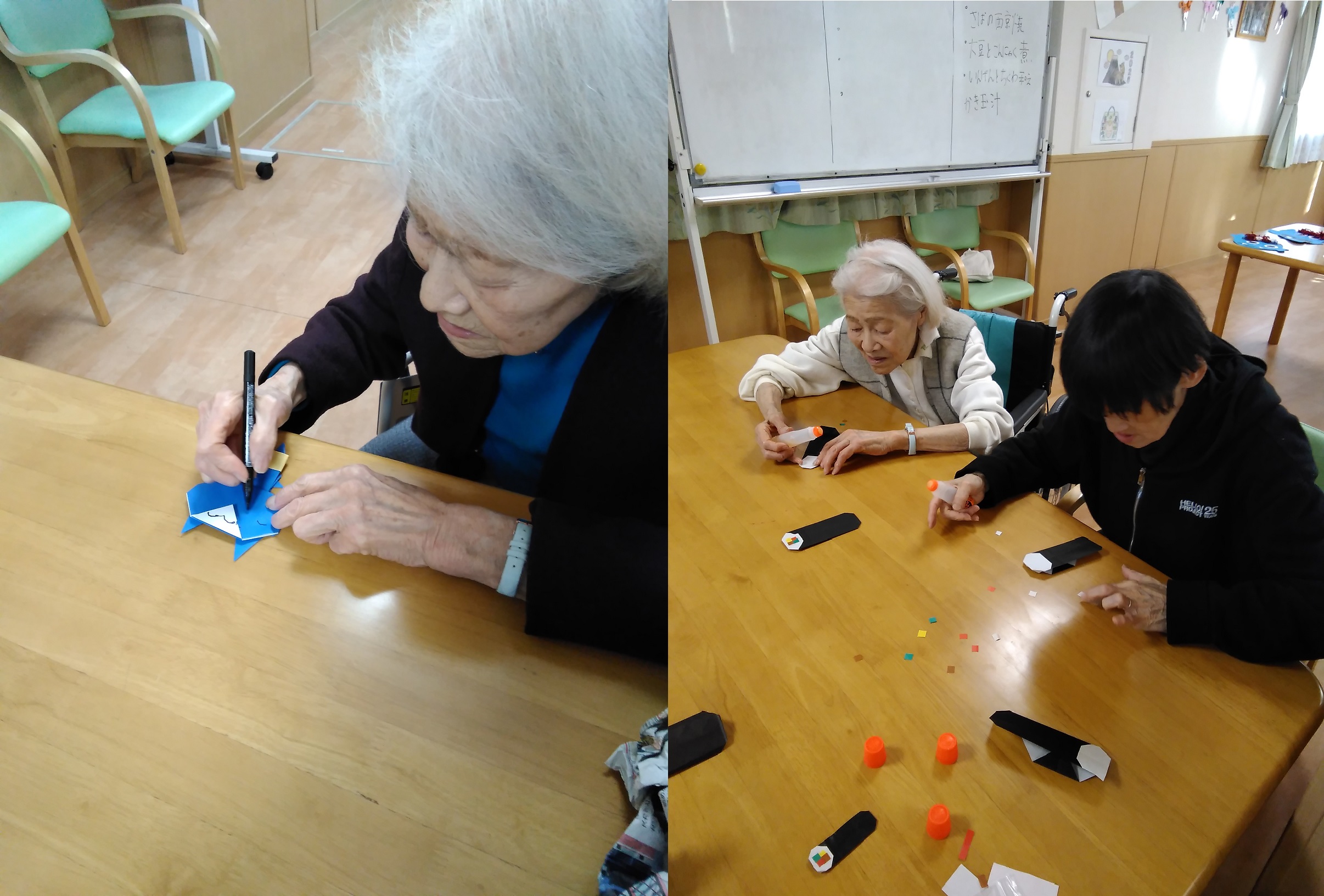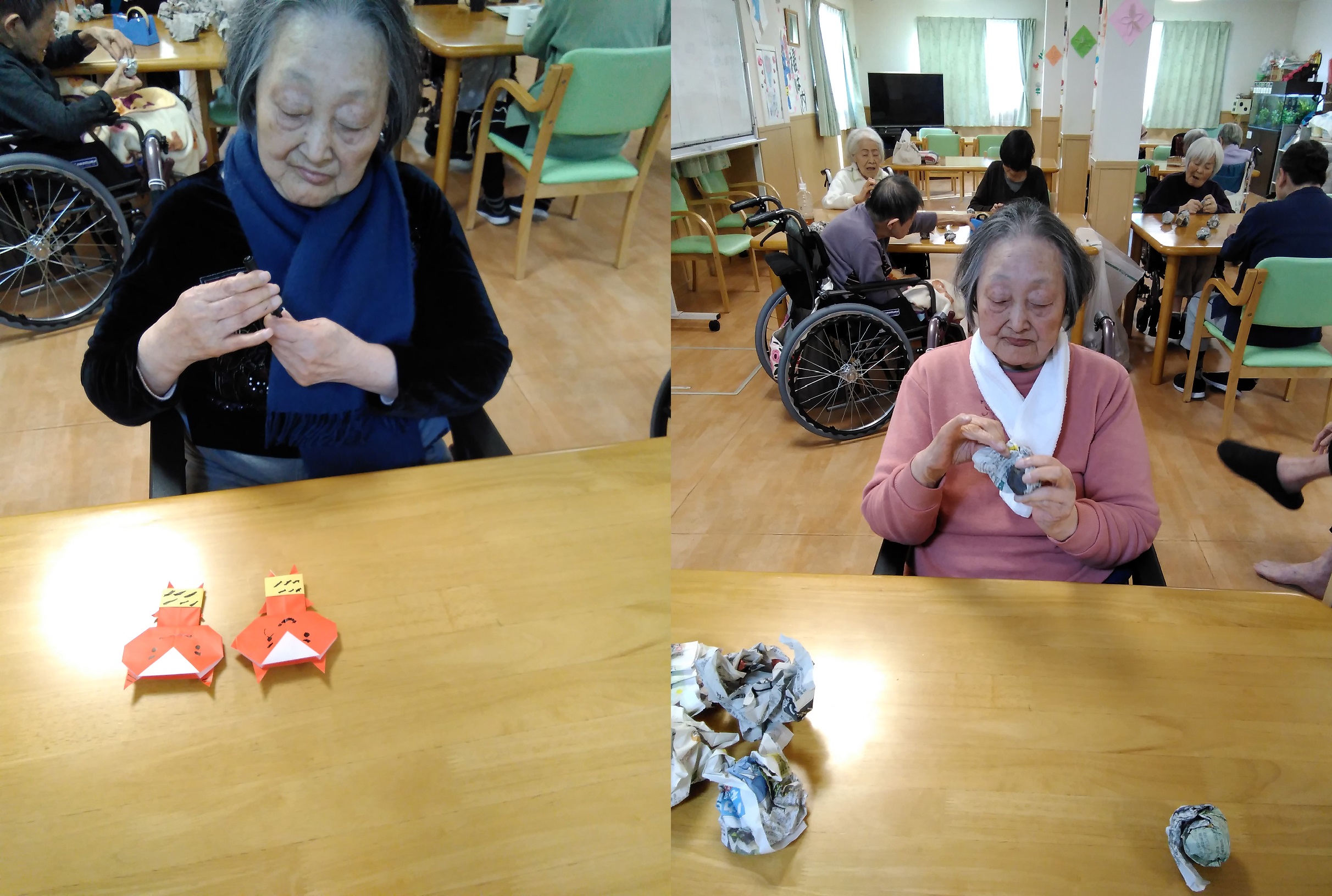 折り紙で折って頂き、