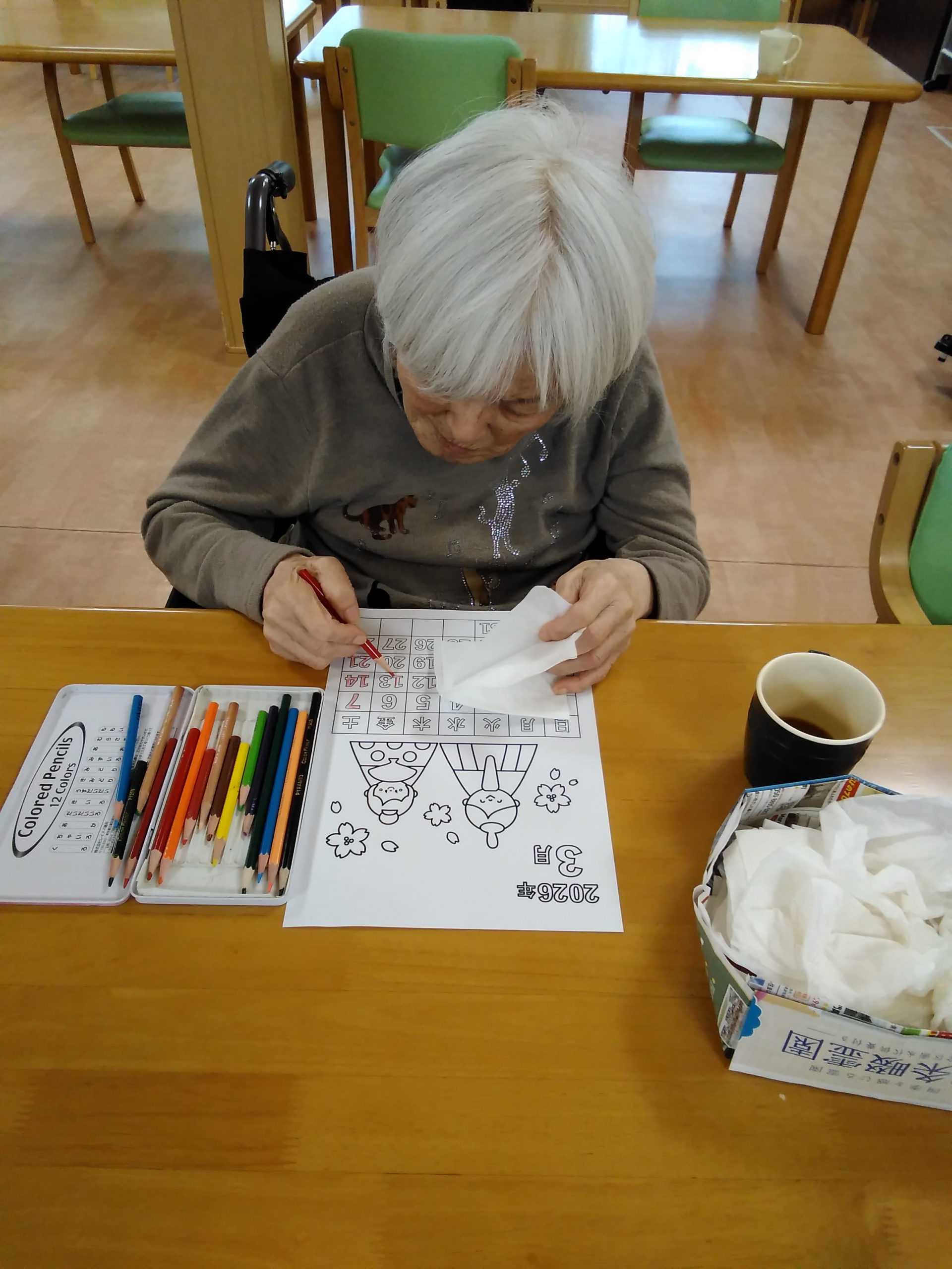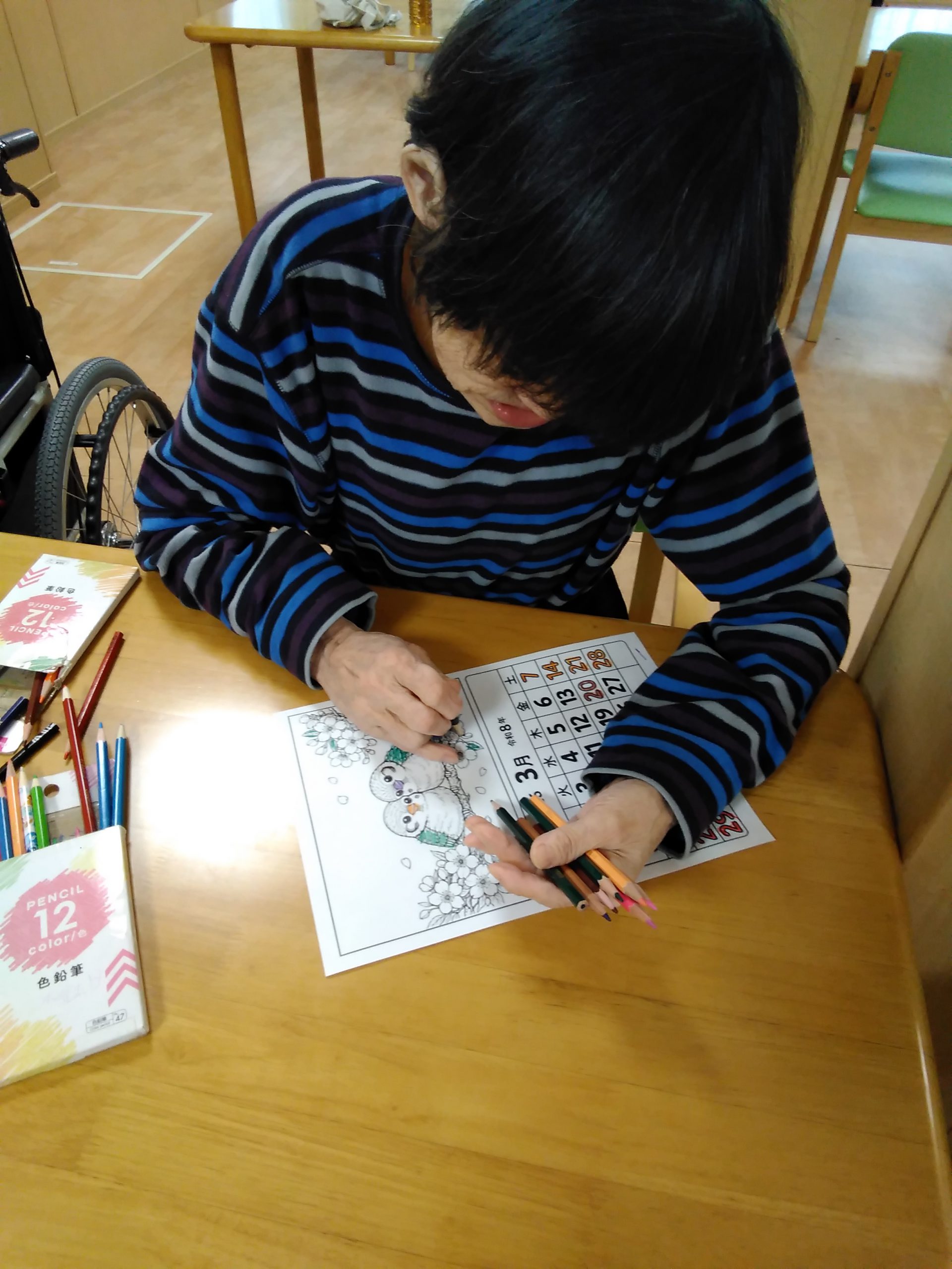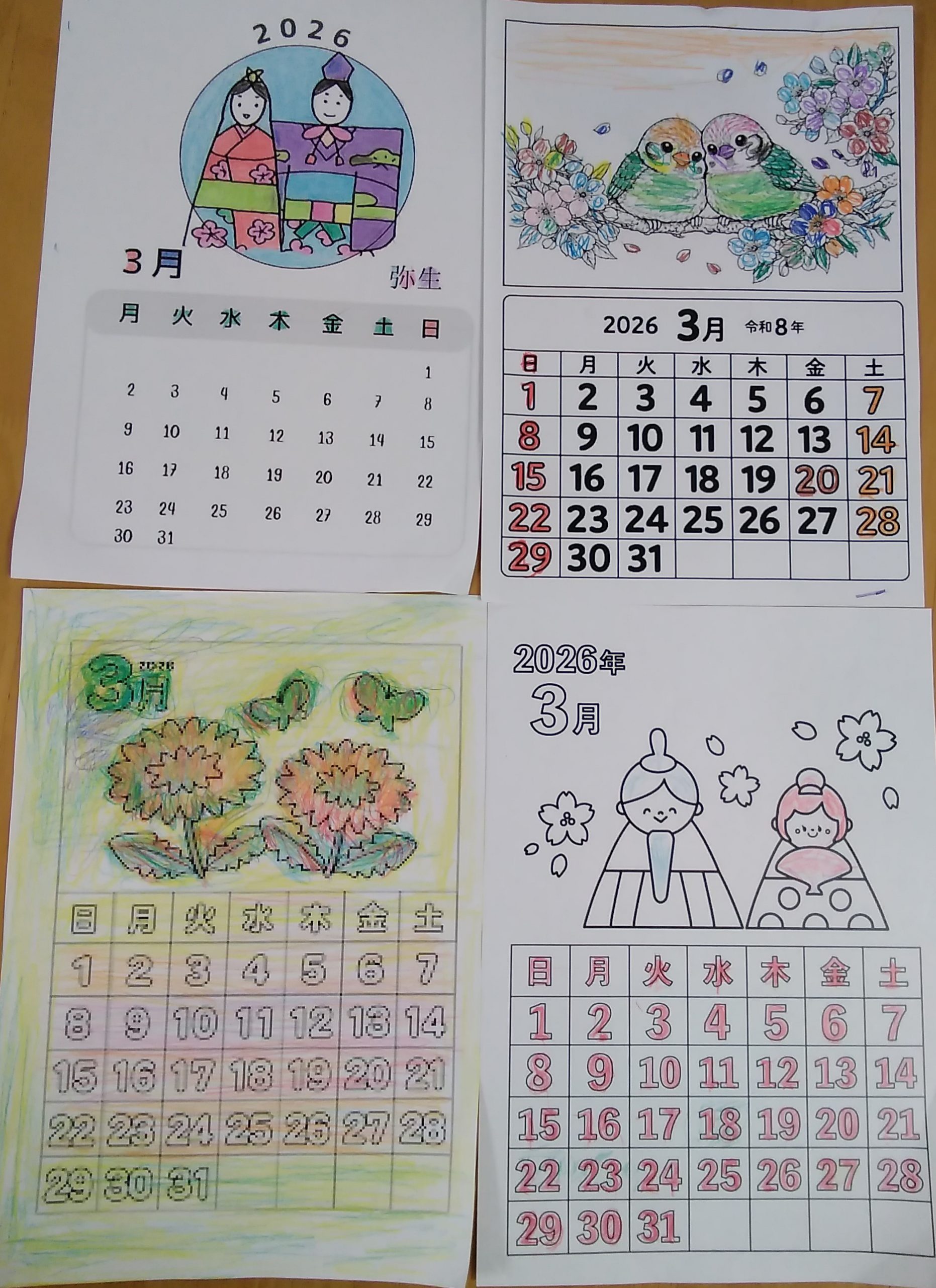 3月のカレンダーの塗り絵を