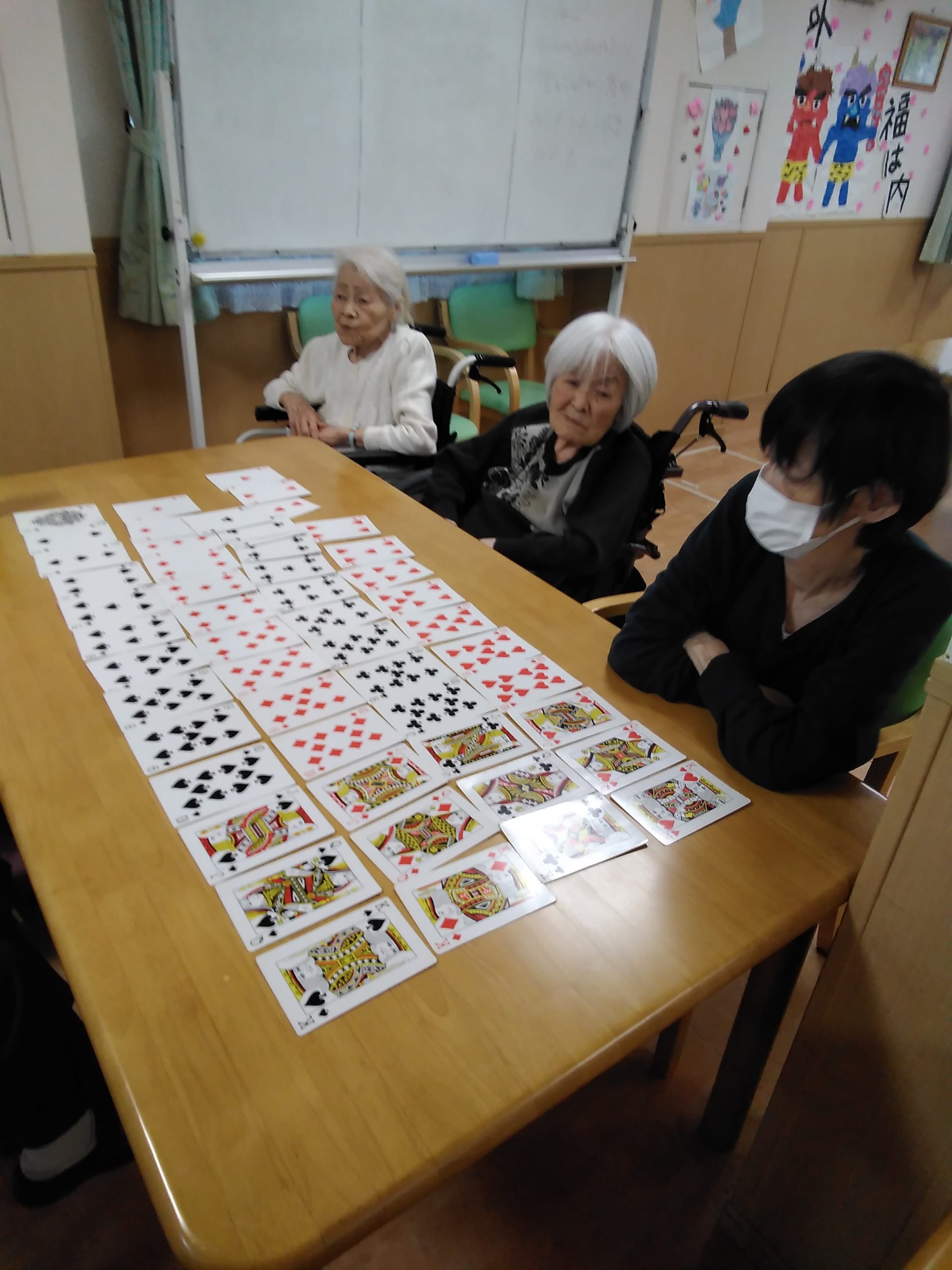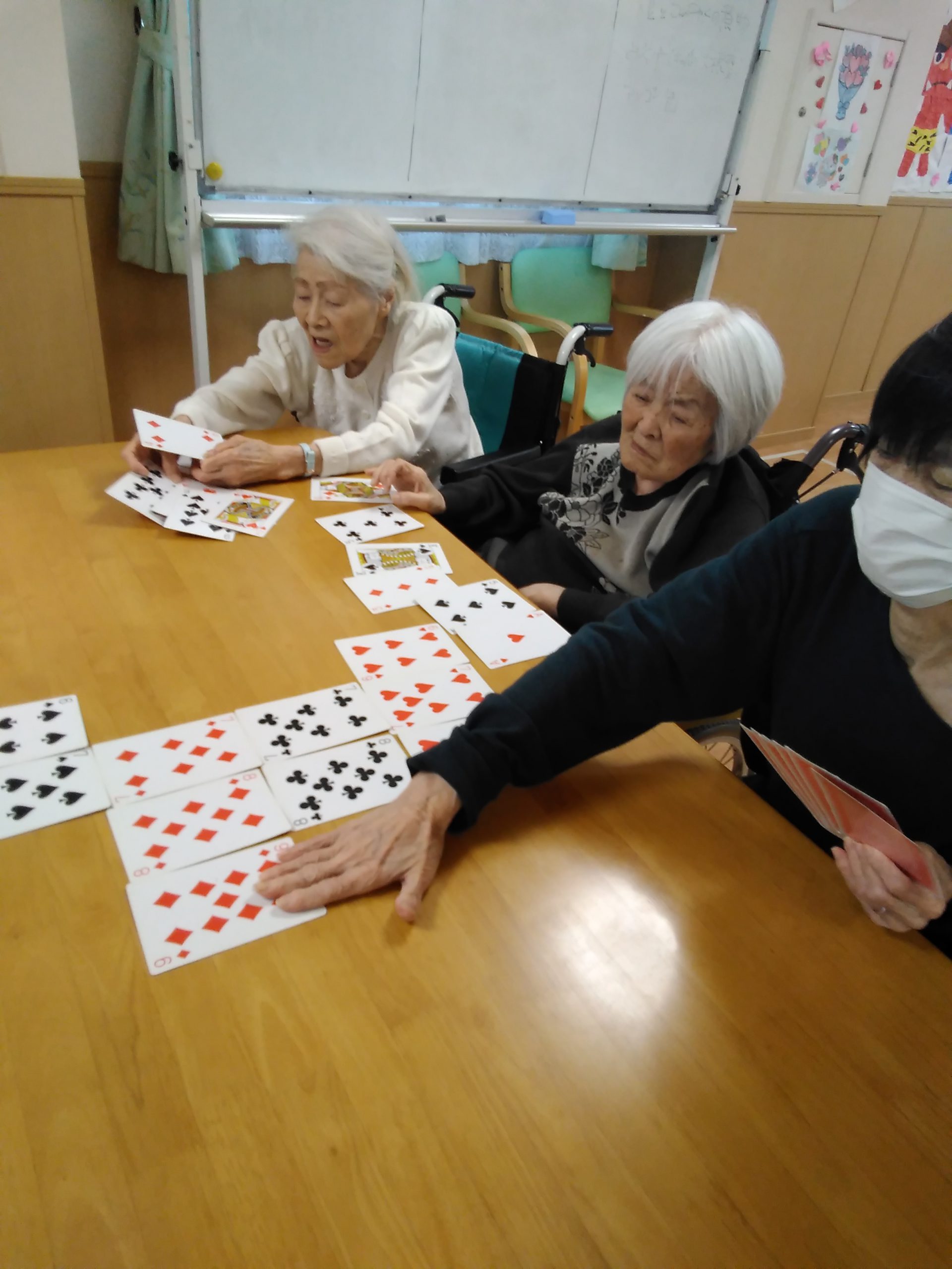 本日は、トランプで7並べに