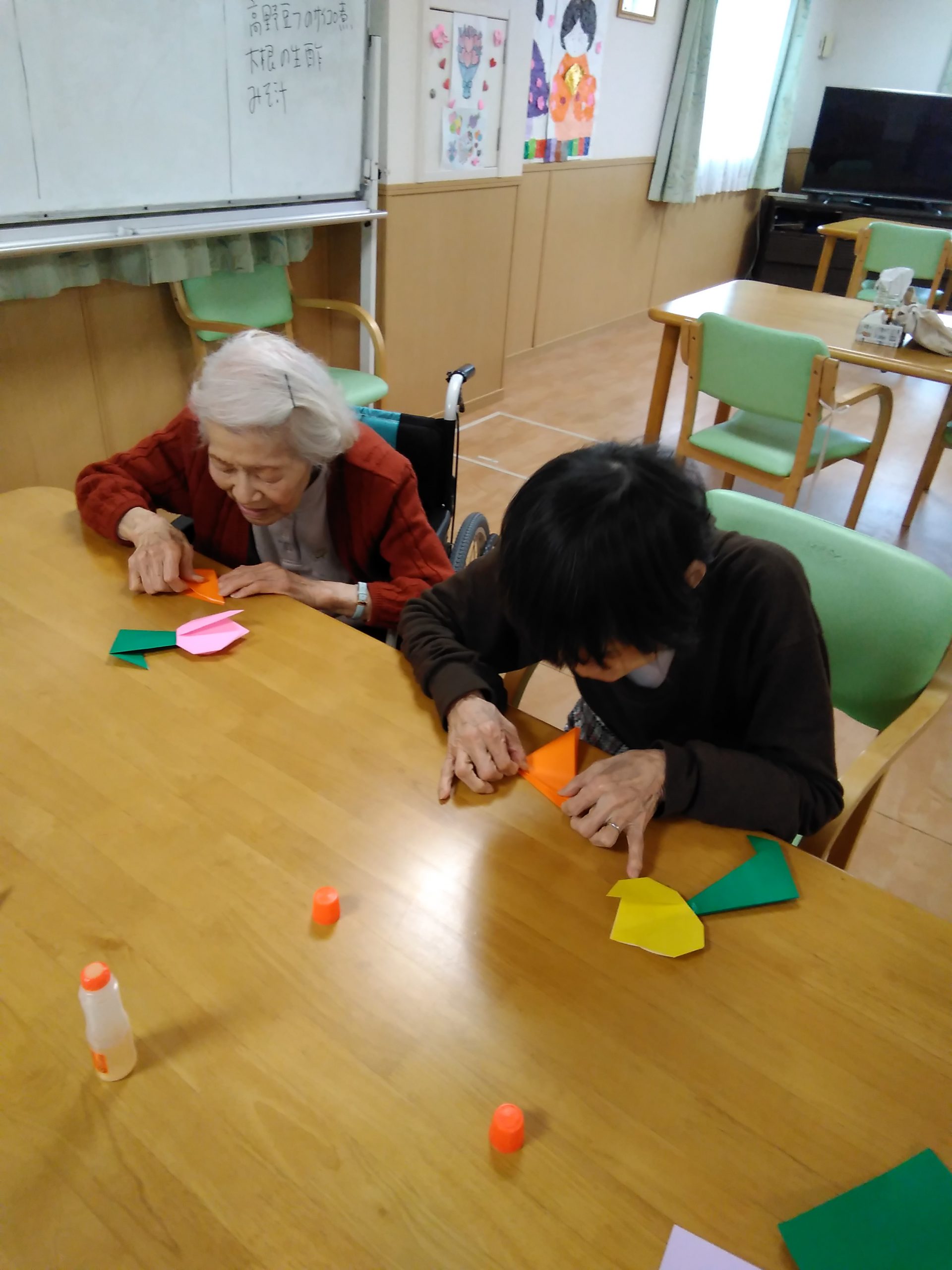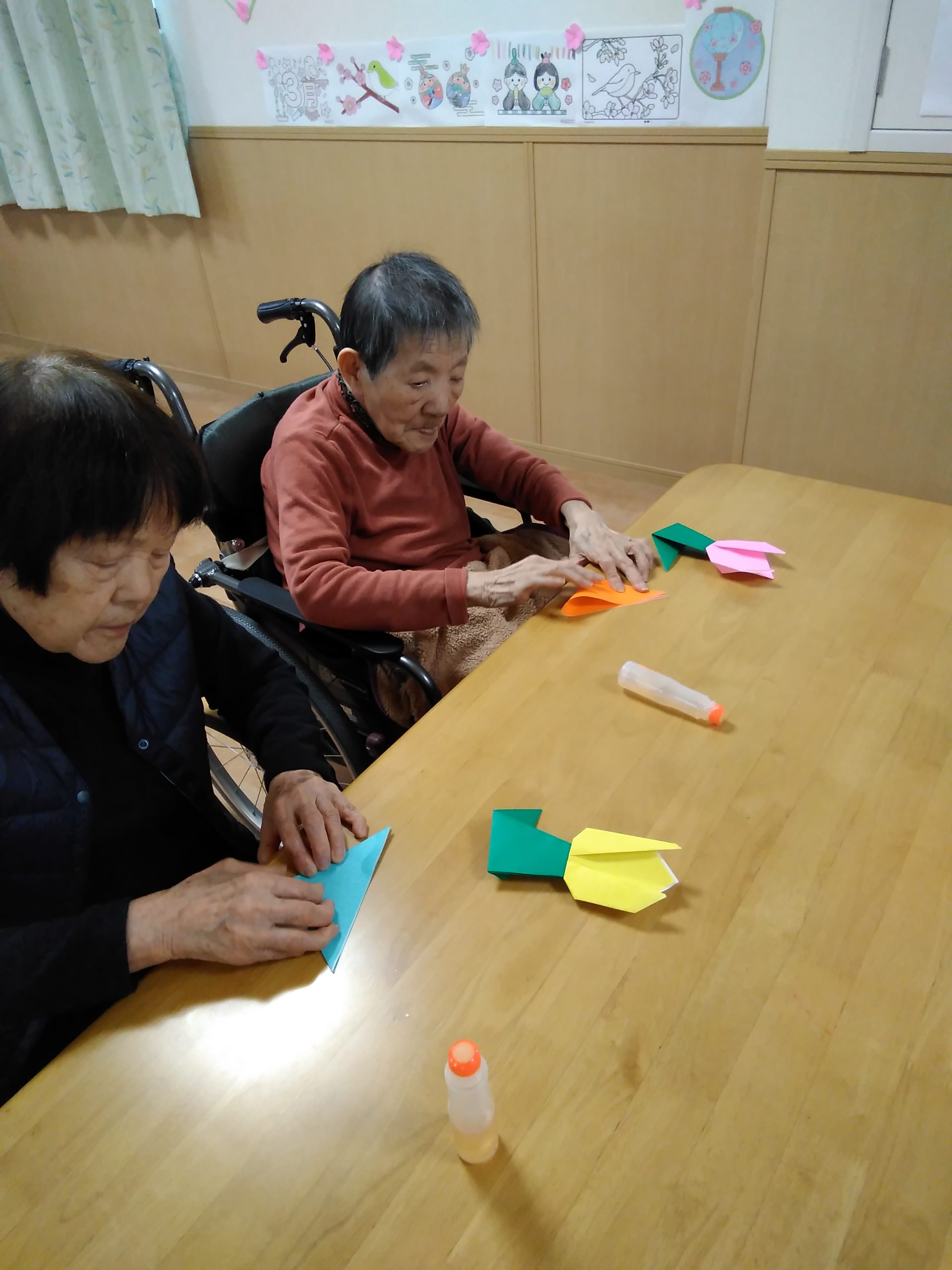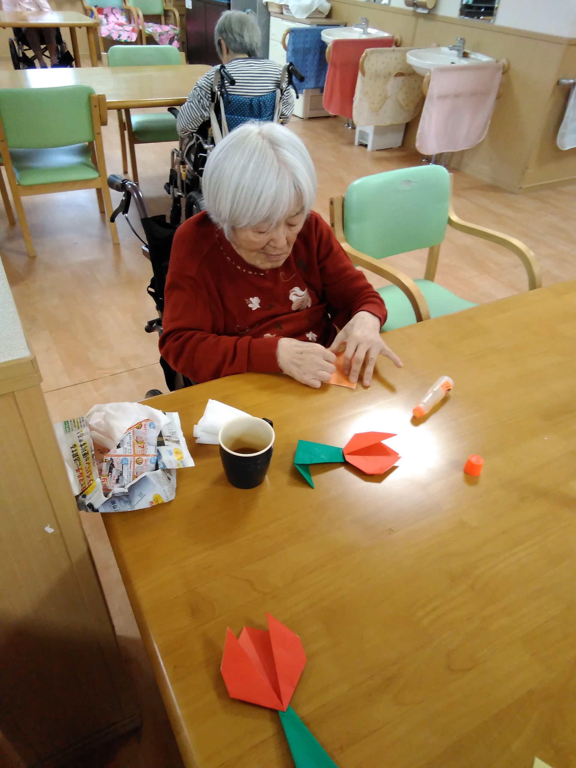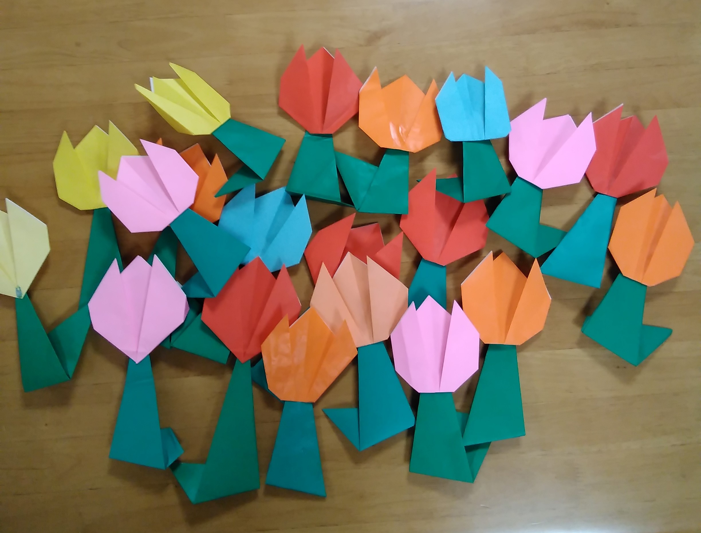 🌷チューリップを折り紙で折って頂きました。