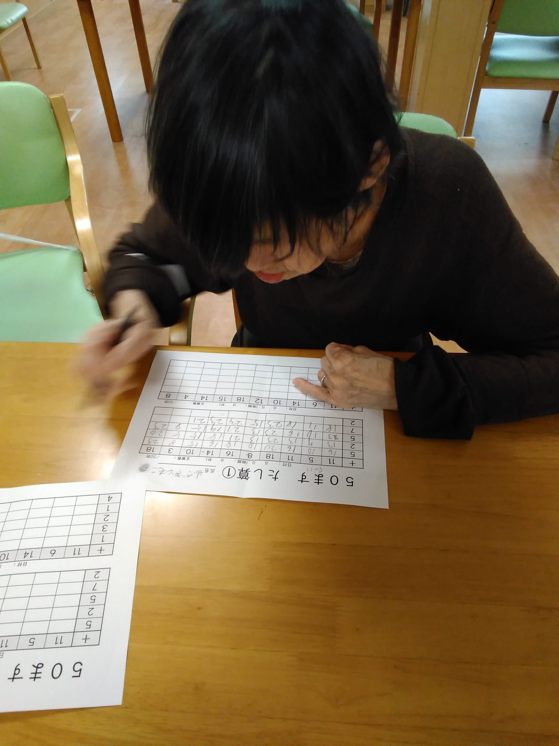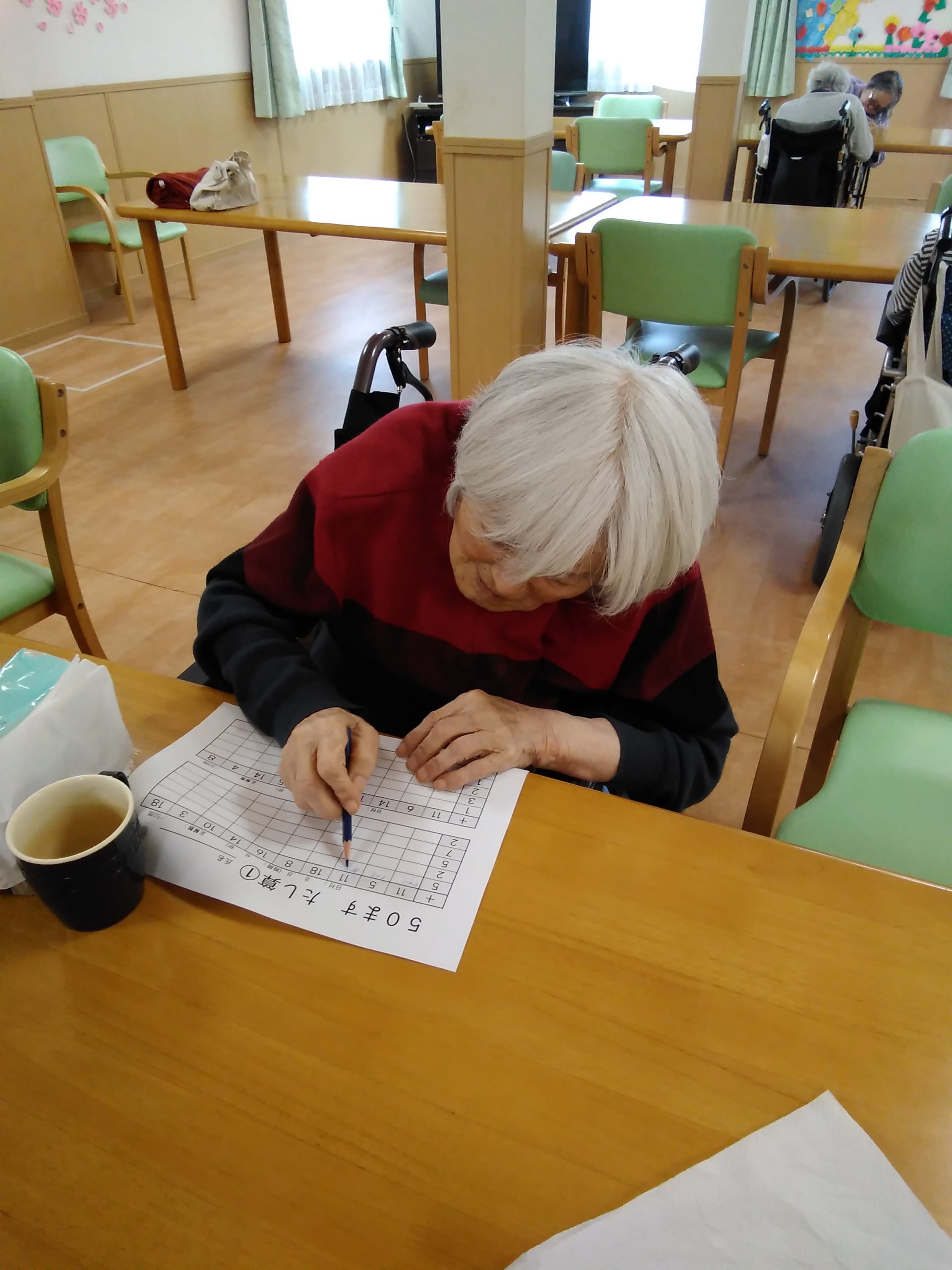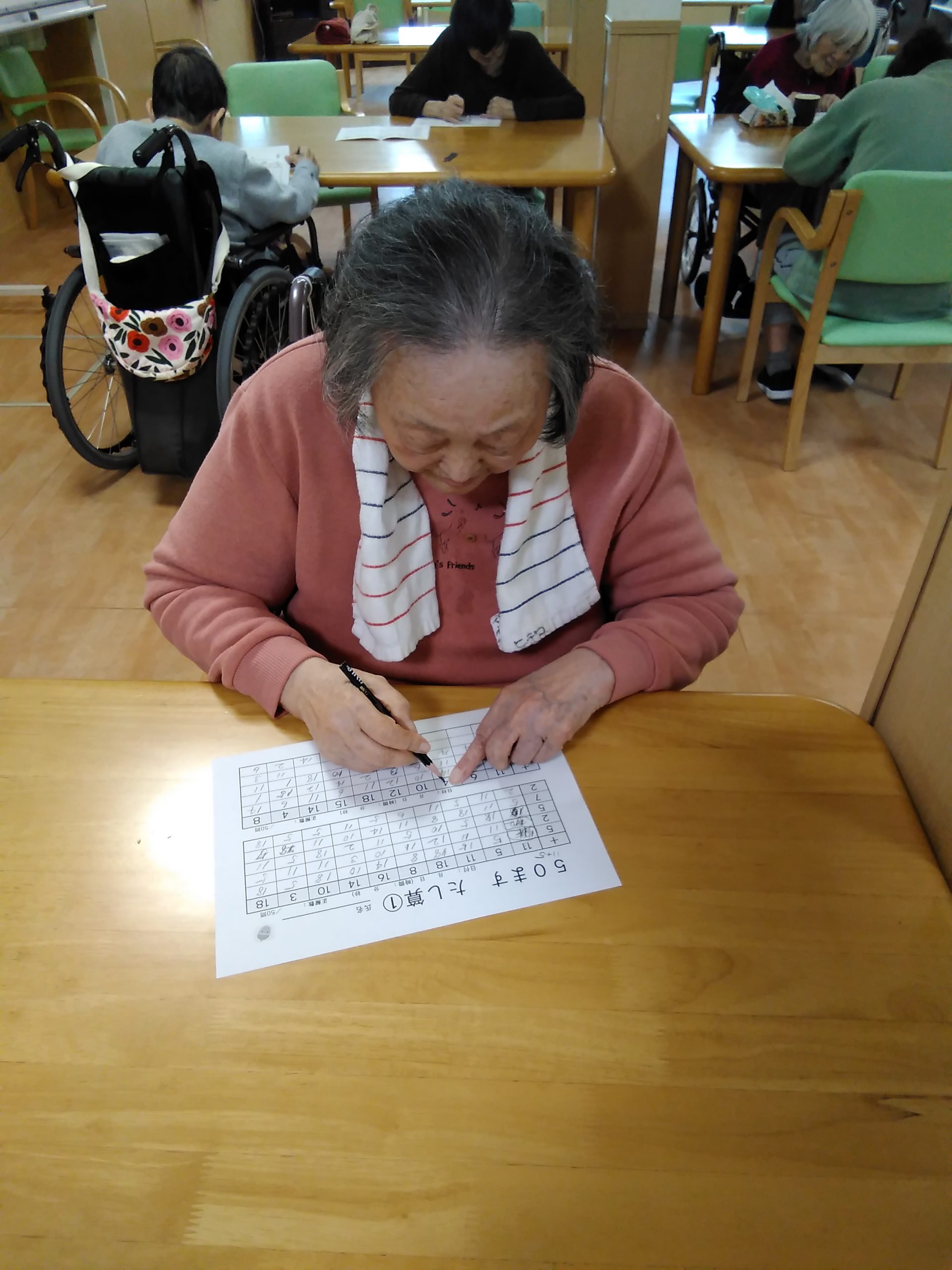 こんにちは! シニアライフ門真 本日は、マス目の足し算に挑戦です。 えっ!どことどこを足したらいいの❓ 説明させて頂くとあ~わかった!! と理解されるとあ~!出来た!!(^_^)/ と考えながら計算をされておられました。 Back Next