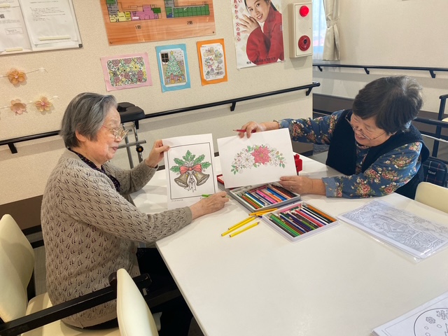 ぬりえ シニアハウス木津川 こんにちは。 シニアハウス木津川です。 本日も塗り絵をしていただき、 塗っていらっしゃる途中の絵とご一緒に 撮影させていただきました😊 今から完成が楽しみです。 Back Next