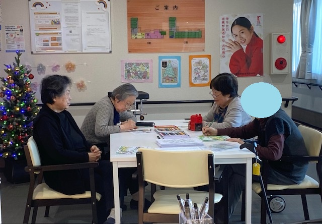 ぬりえ シニアハウス木津川 こんにちは。 シニアハウス木津川です。 本日も塗り絵をしていただきました😊 皆さんで絵の中の花や動物は何の種類で どんな色を塗るかお話されながら塗っていらっしゃいました👍 Back Next