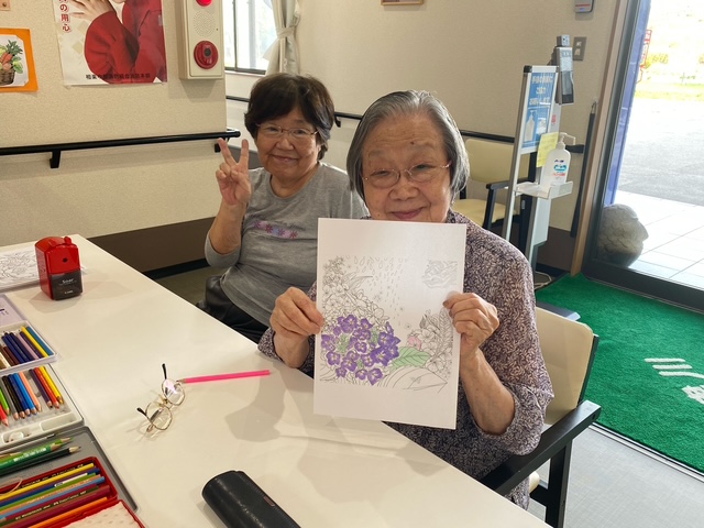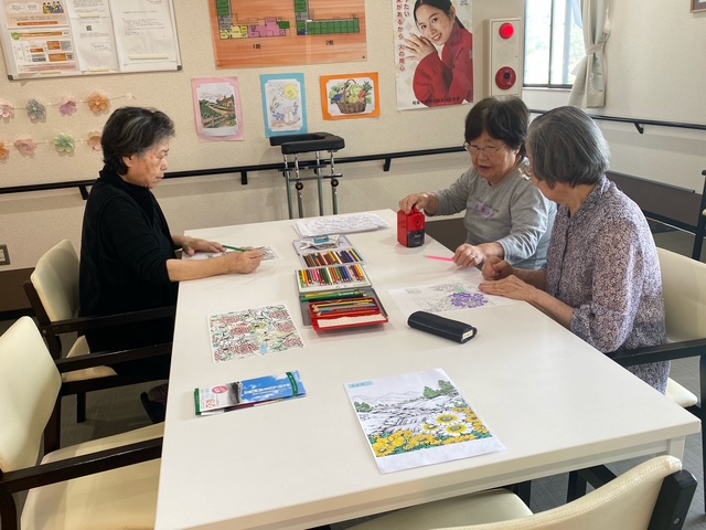 こんにちは。 シニアハウス木津川です。 本日も塗り絵をしていただいています。 塗っている途中のぬりえを見せていただきました👏 完成が楽しみです😊