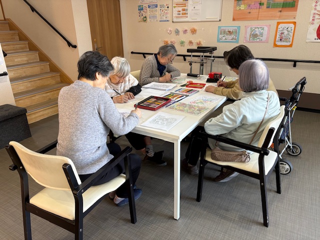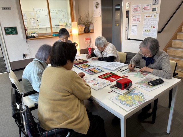 こんにちは。 シニアハウス木津川です。 本日も塗り絵や計算問題等をしていただきました😊 ご覧になっていたテレビ番組の話などを和やかにされていました👏