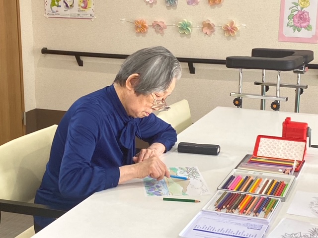 ぬり絵 シニアハウス木津川 こんにちは。 シニアハウス木津川です。 本日も集中して塗り絵をされていらっしゃいました👏 子供の頃はなかなか塗り絵をする機会がなかったそうで、 楽しいといつもおっしゃっています😊 Back Next
