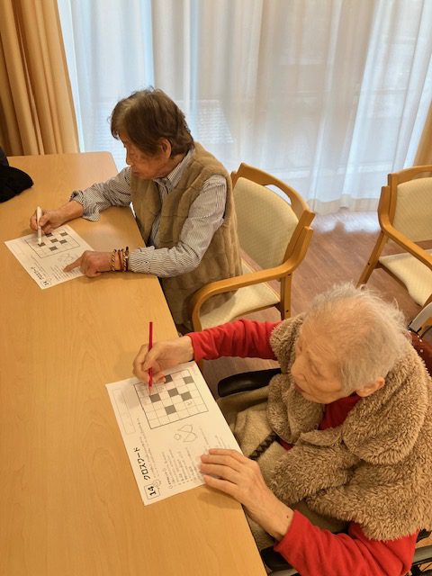 今日は、クロスワードパズルを行いました。