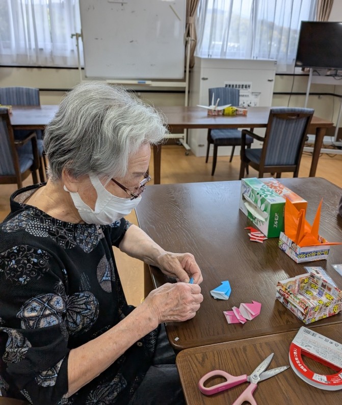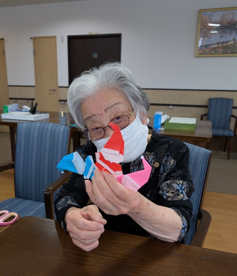 今日のレクリエーションの時間に折り紙で