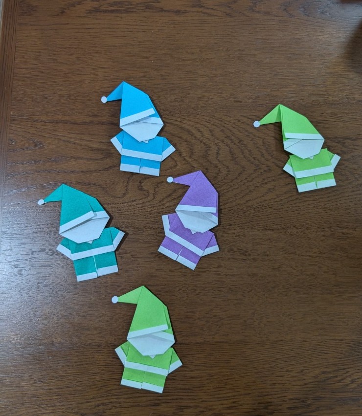 色んな色のサンタクロースを折って頂きました。