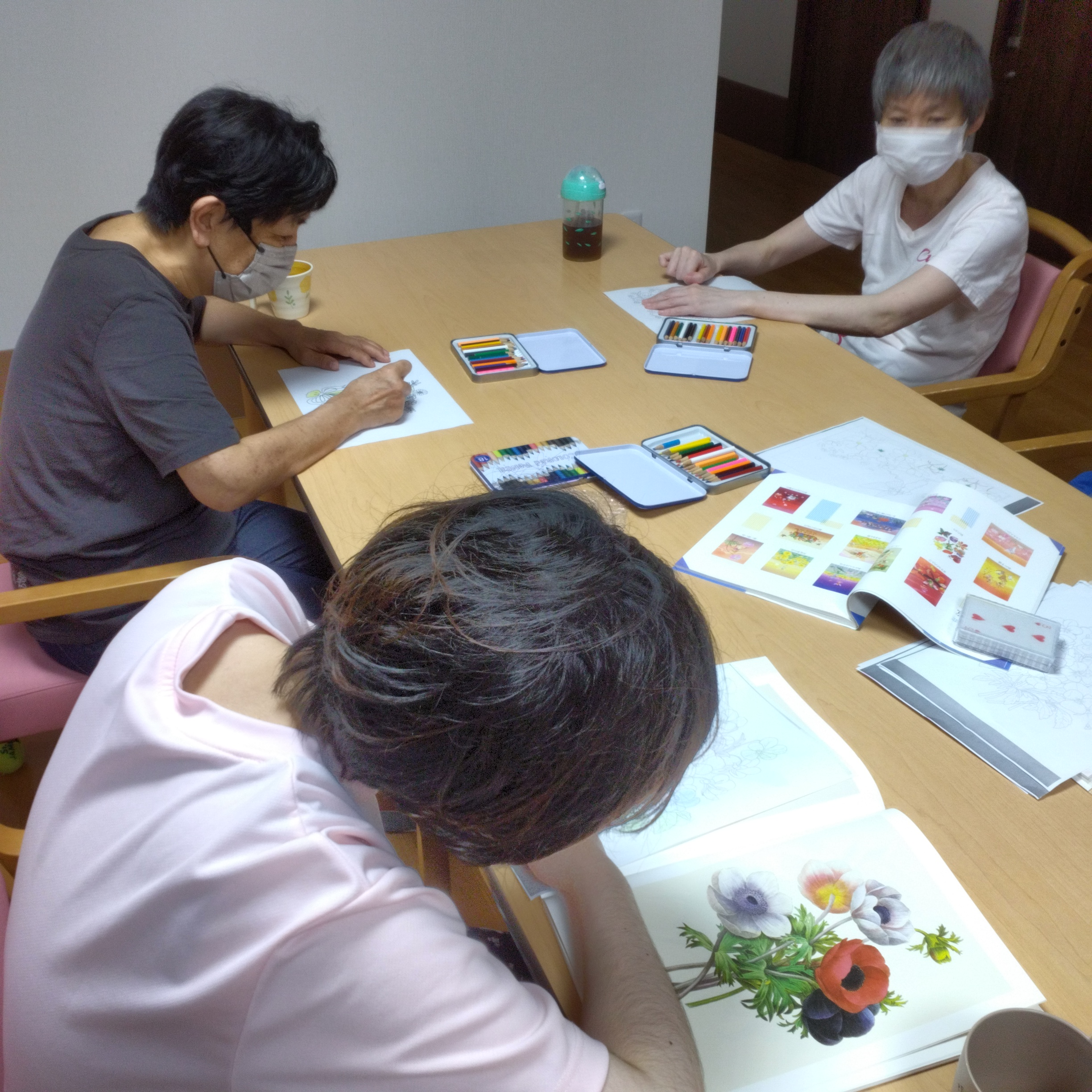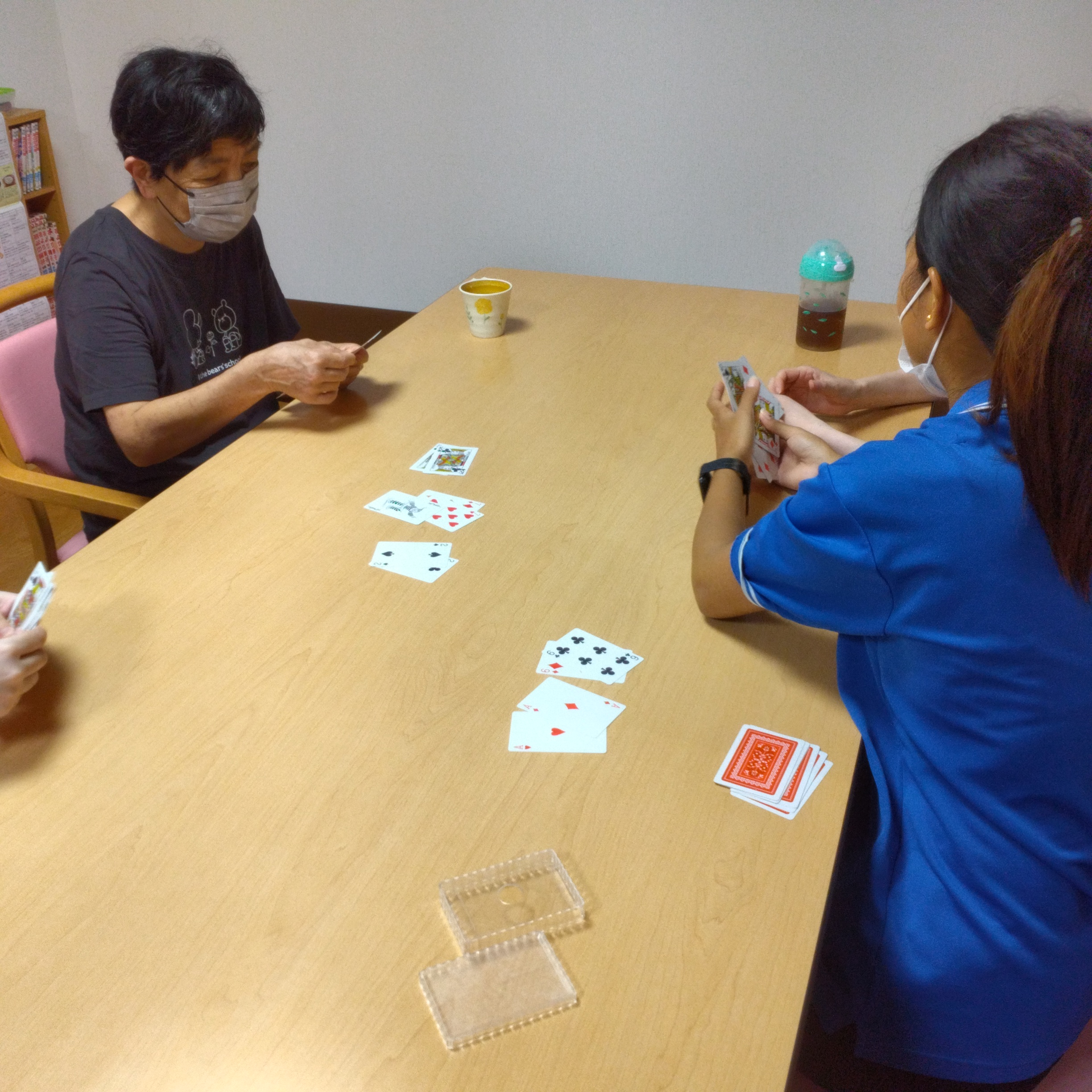 こんにちは、加茂タウンです。 今日のレクはトランプをしました。 ババ抜きで一番目指して頑張っておられました。 その後塗り絵も楽しまれました。