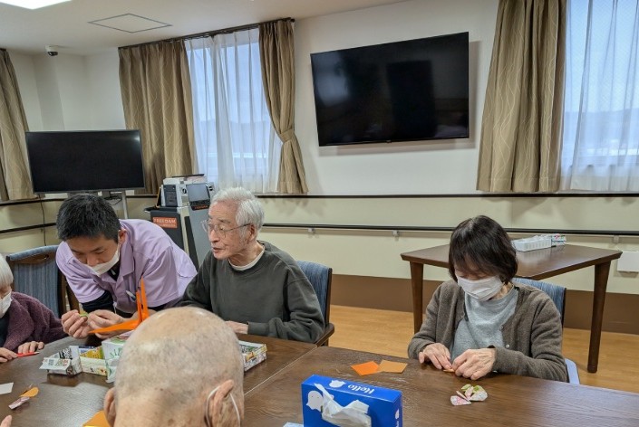 先日も折って頂いたので覚えておられるご入居者様は