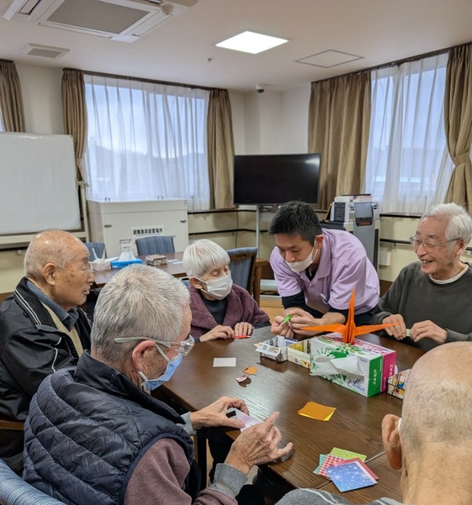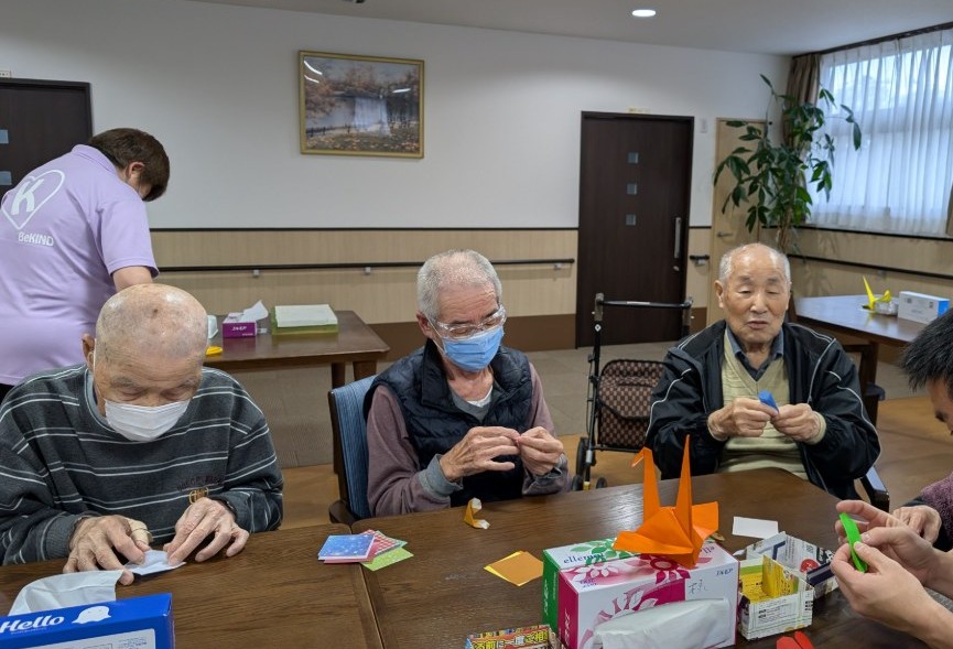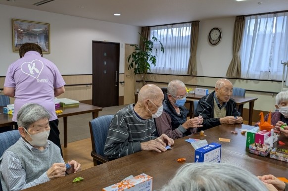 お喋りをしながら皆さんで折った折り紙の時間は