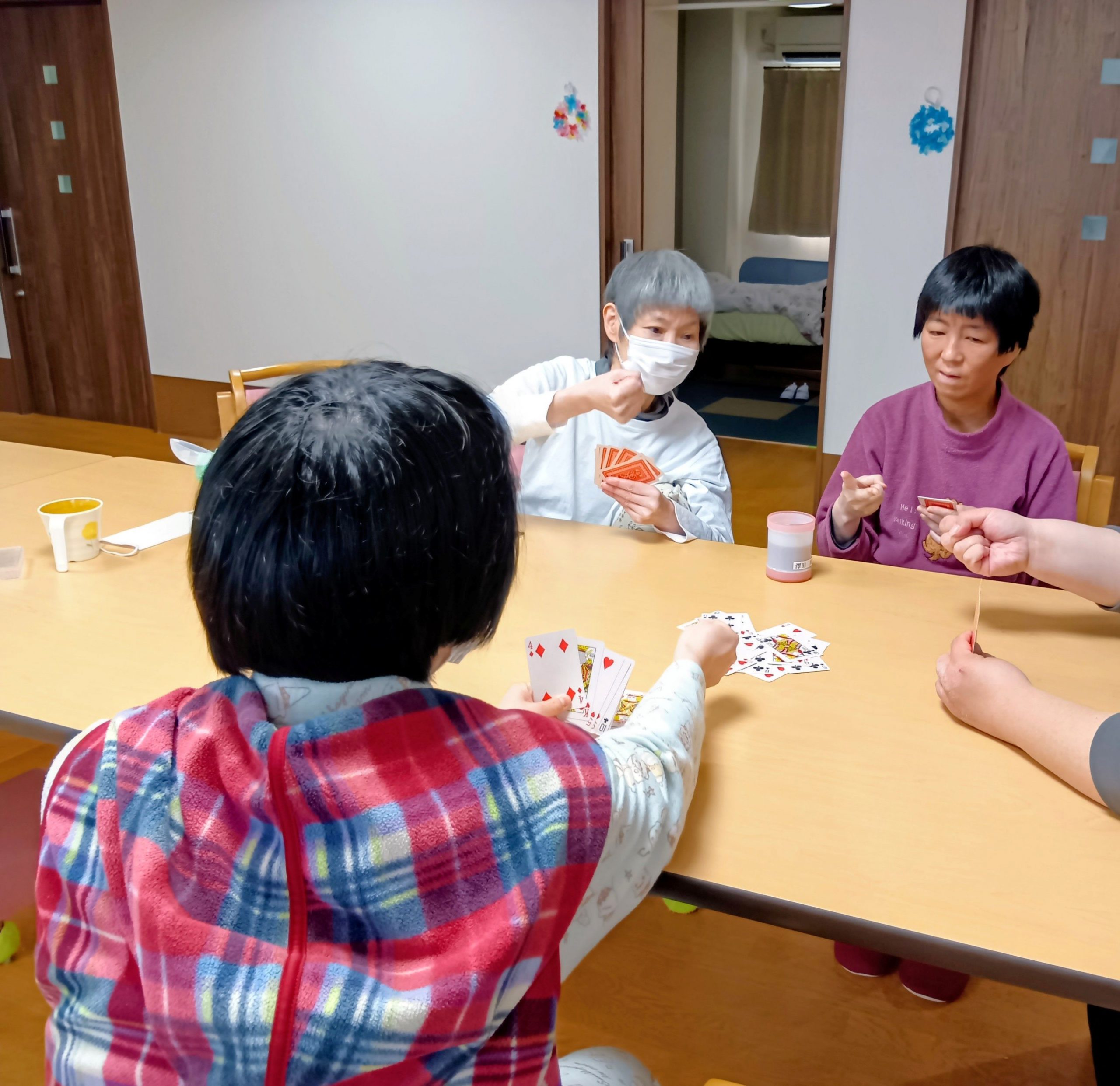 ババ抜き大会をしました😊 加茂タウンⅠ号館 / 加茂タウンⅡ号館 こんにちは、加茂タウンです🌸 今日はトランプでババ抜きをしました! 何度もババ抜きで盛り上がり、皆さんとたくさん笑いました😆✨ Back Next