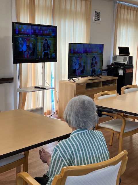 今日は、全身を使ったリズム体操を