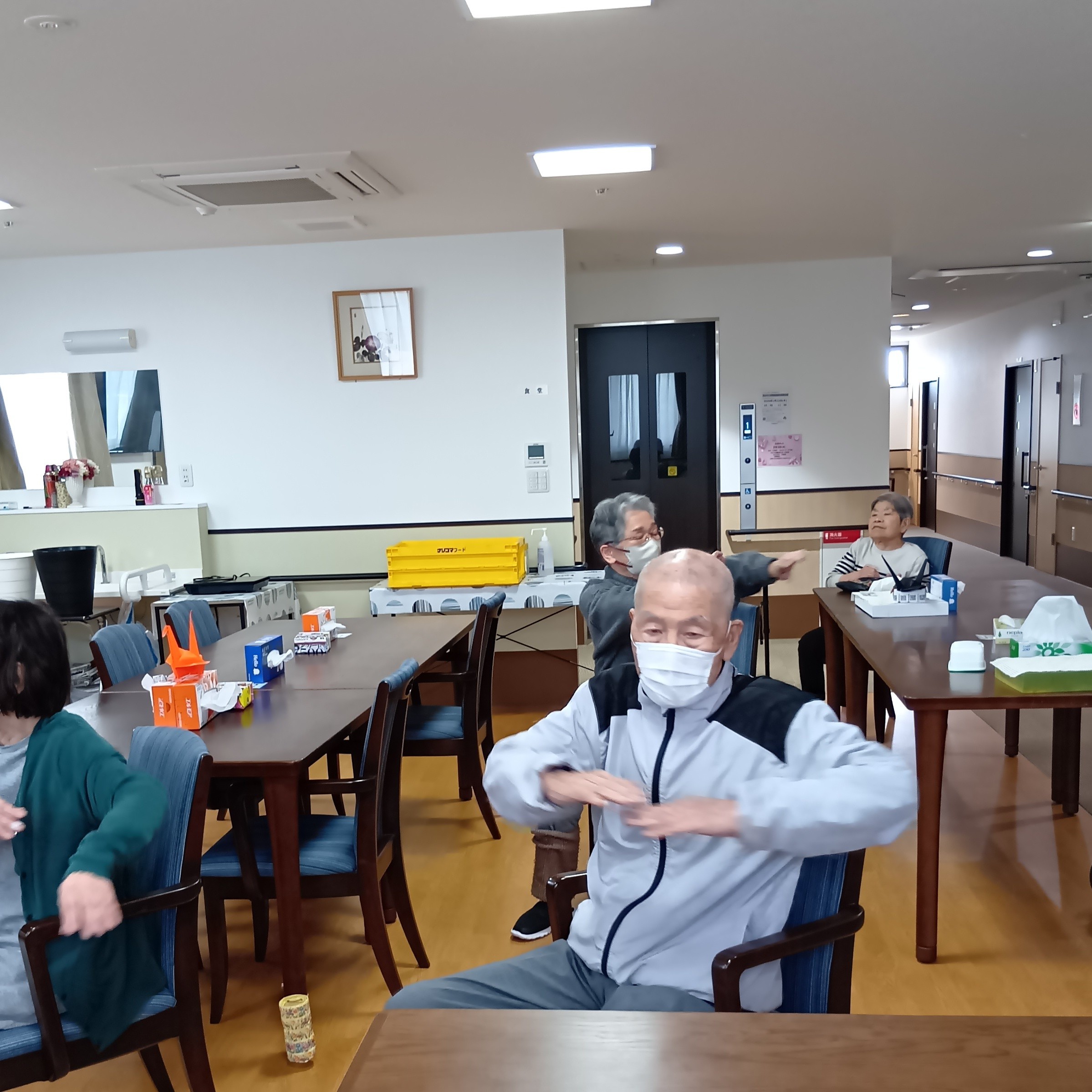 今日のレクリエーションでは体操を行いました。