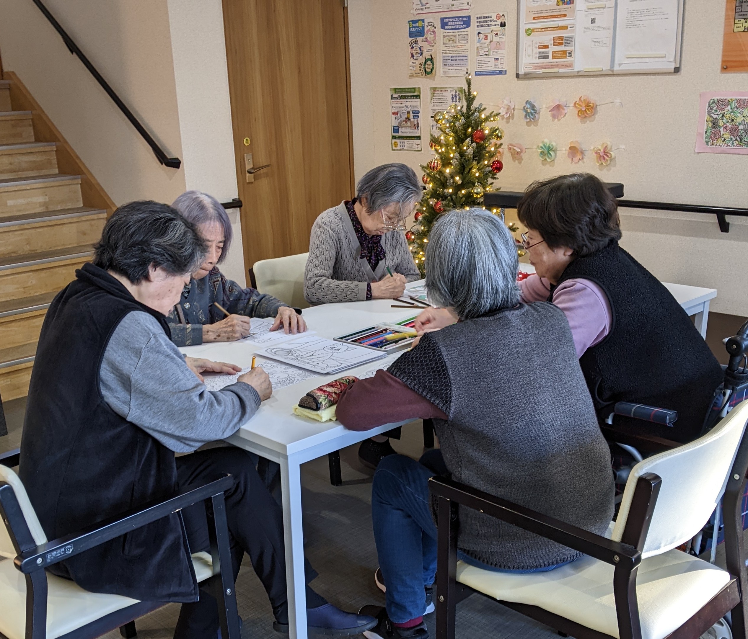 塗り絵クラブ🖊 シニアハウス木津川 こんにちは シニアハウス木津川です😊 今日も 塗り絵クラブは大盛況です。 話し声が聞こえてきたからと段々とお集まりに なってこられ井戸端会議に花が咲いていました😊 Back Next