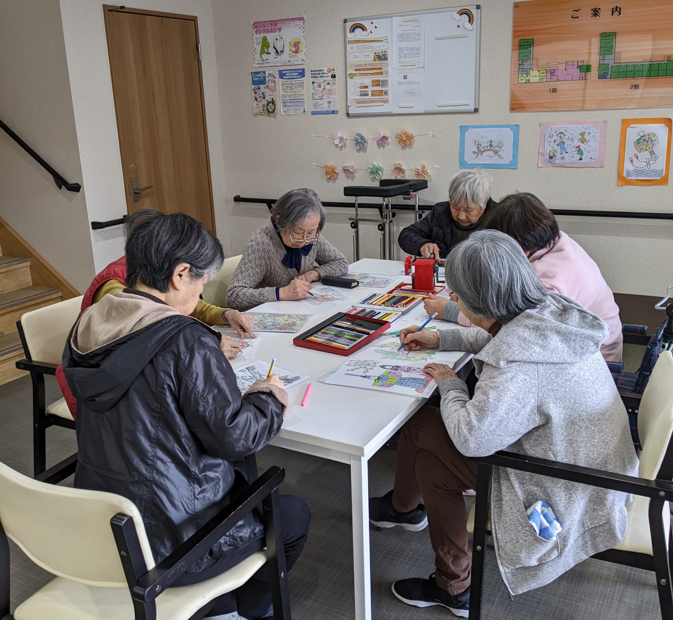 塗り絵をされながら お話に花を咲かせてられます🌸