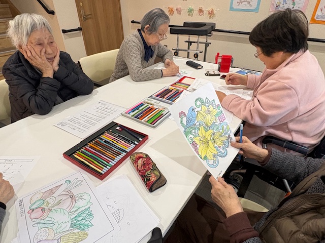塗り絵等 シニアハウス木津川 こんにちは。 シニアハウス木津川です。 今日は塗り絵や計算問題や点つなぎなど、 お好きなことをしていただきました😊 その後トランプで遊んでいらっしゃいました👏 Back Next