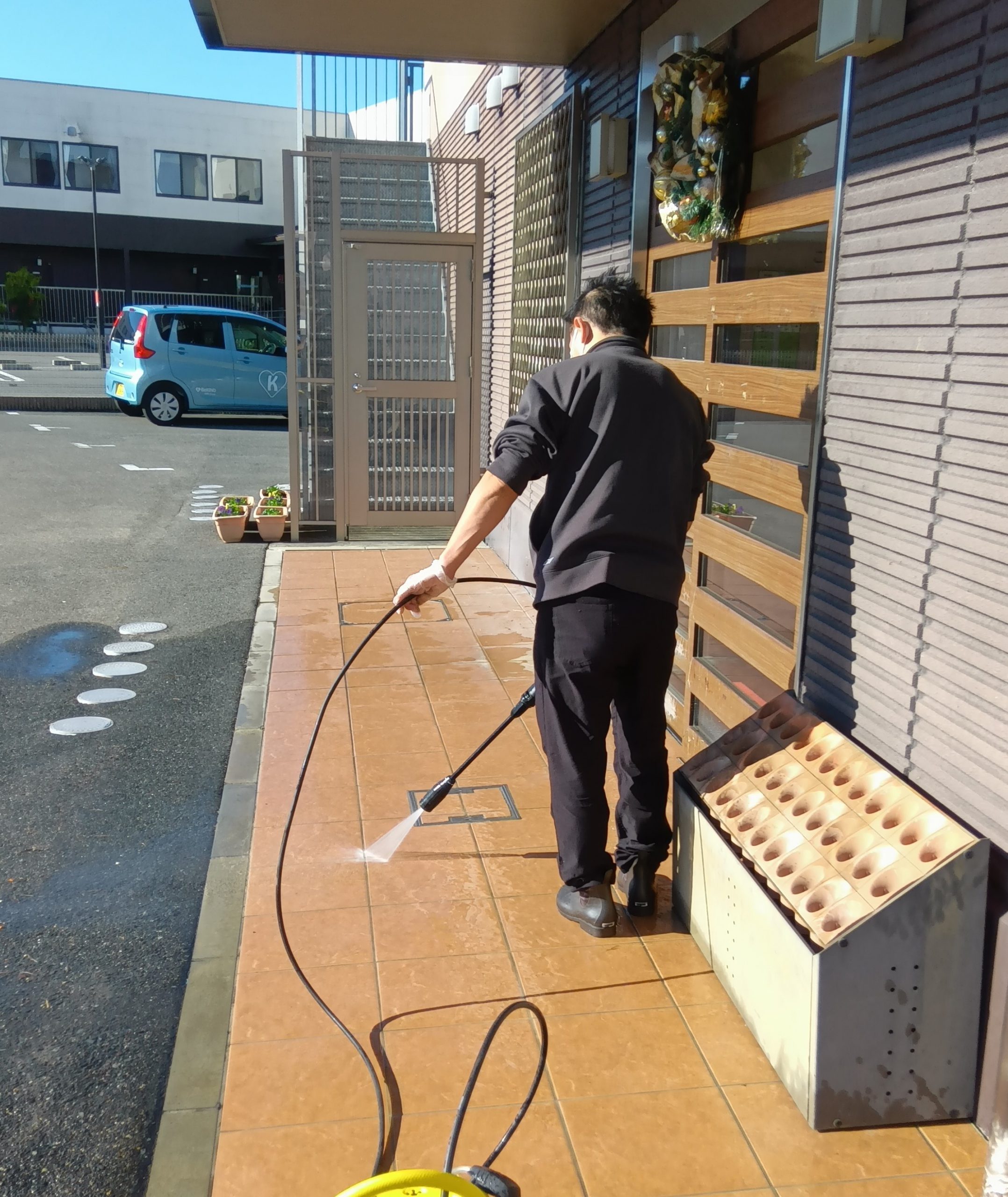 年末が近づいてきたので、玄関前の大掃除の様子です。