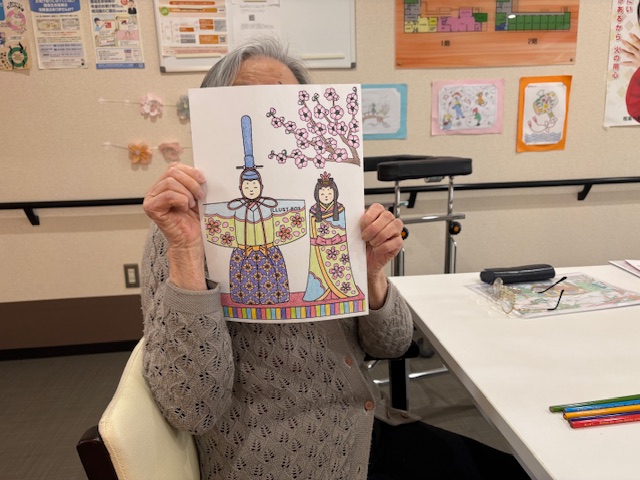 完成✨ シニアハウス木津川 こんにちは。 シニアハウス木津川です。 本日も塗り絵や計算問題等をしていただきました😊 雛人形のぬり絵が完成したとのことで撮影させていただきました。 毛氈の色まで綺麗に塗っていらっしゃいました👏 Back Next