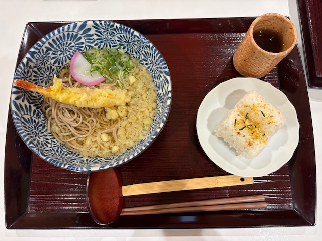 お食事処より作っていただいた年越しそばとおにぎりです😊