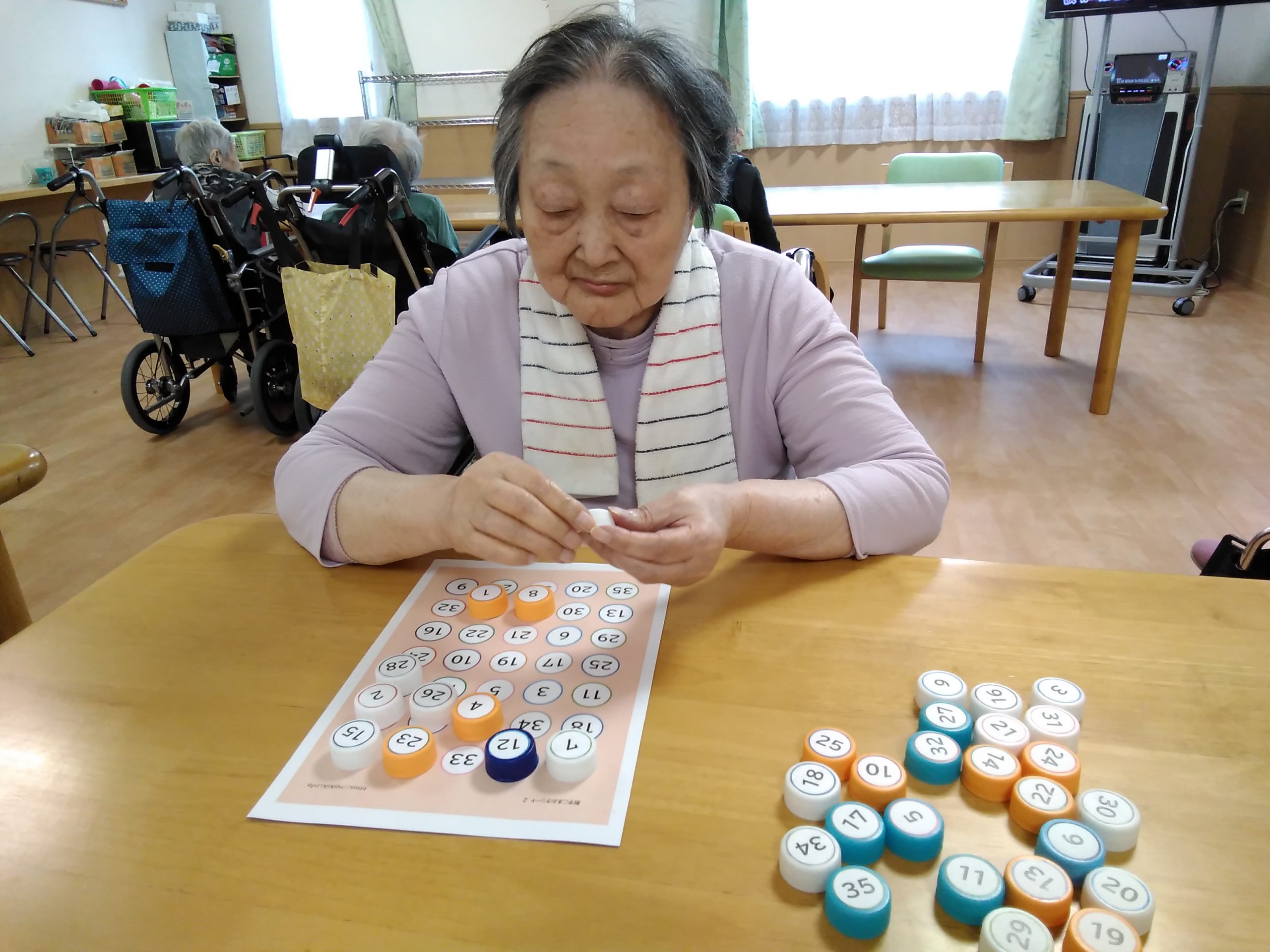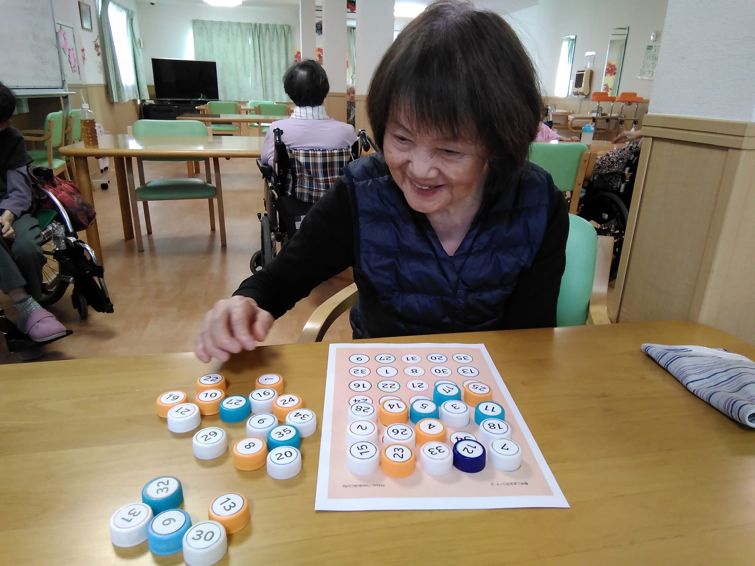 数字こまおき(^^♪ シニアライフ門真 今日は、ペットボトルのフタを使って フタの番号と同じ番号の所に置く 数字こまおきをしました(^^♪ 「これはここ」 「これはどこ?」と 集中して探されていました(*^^*) Back Next
