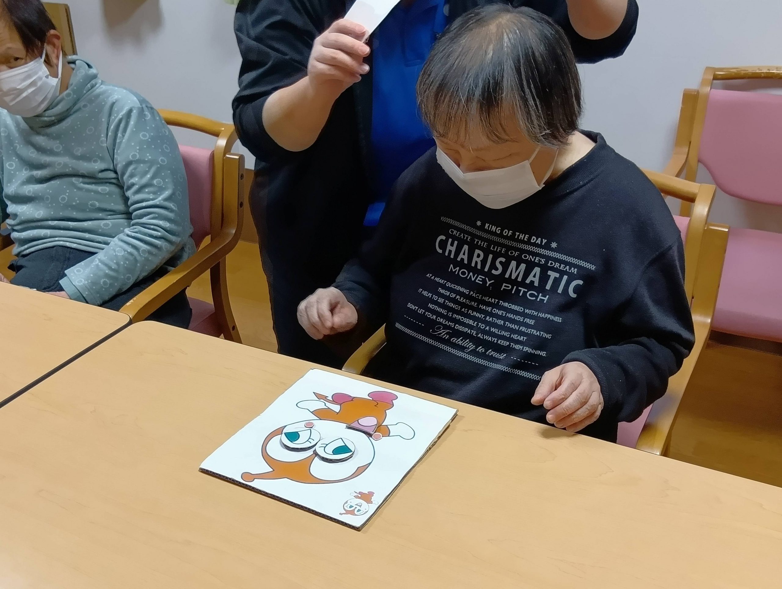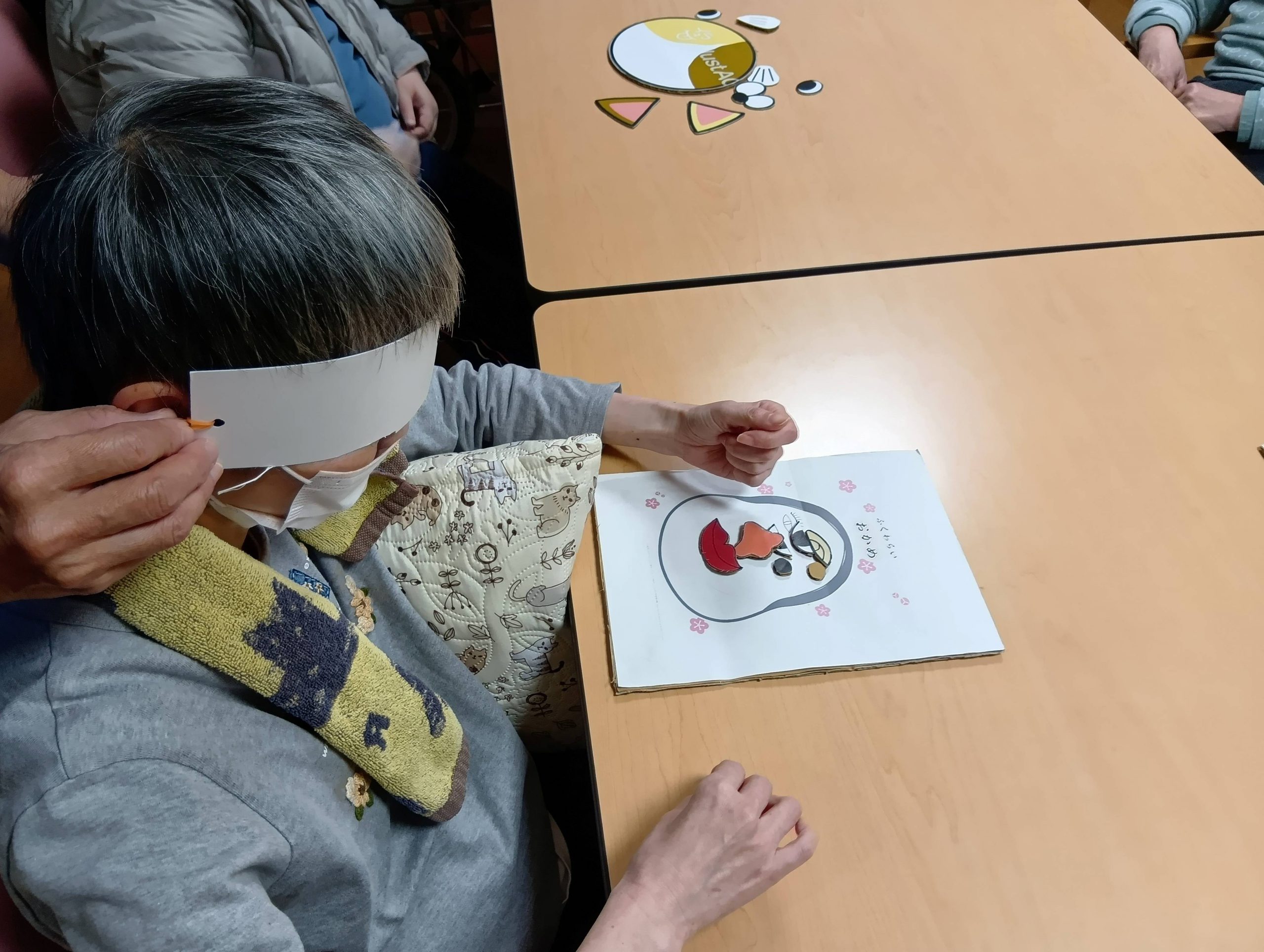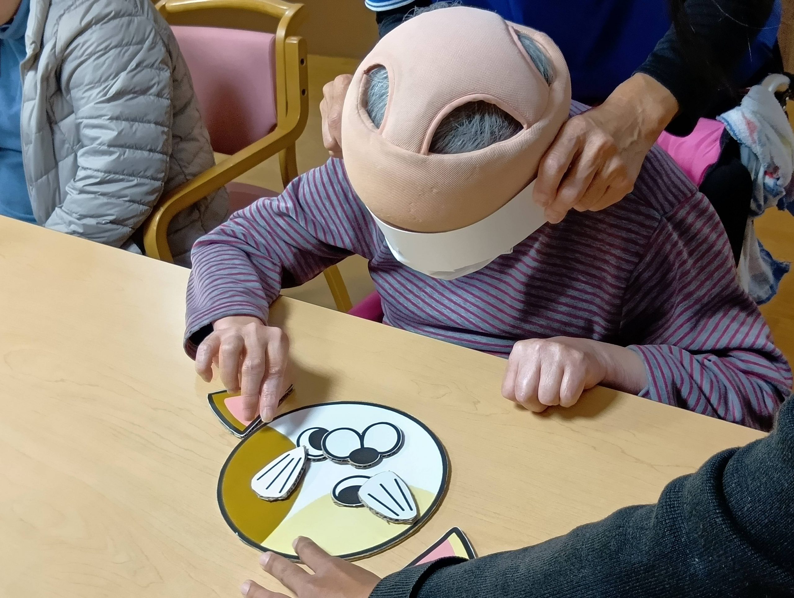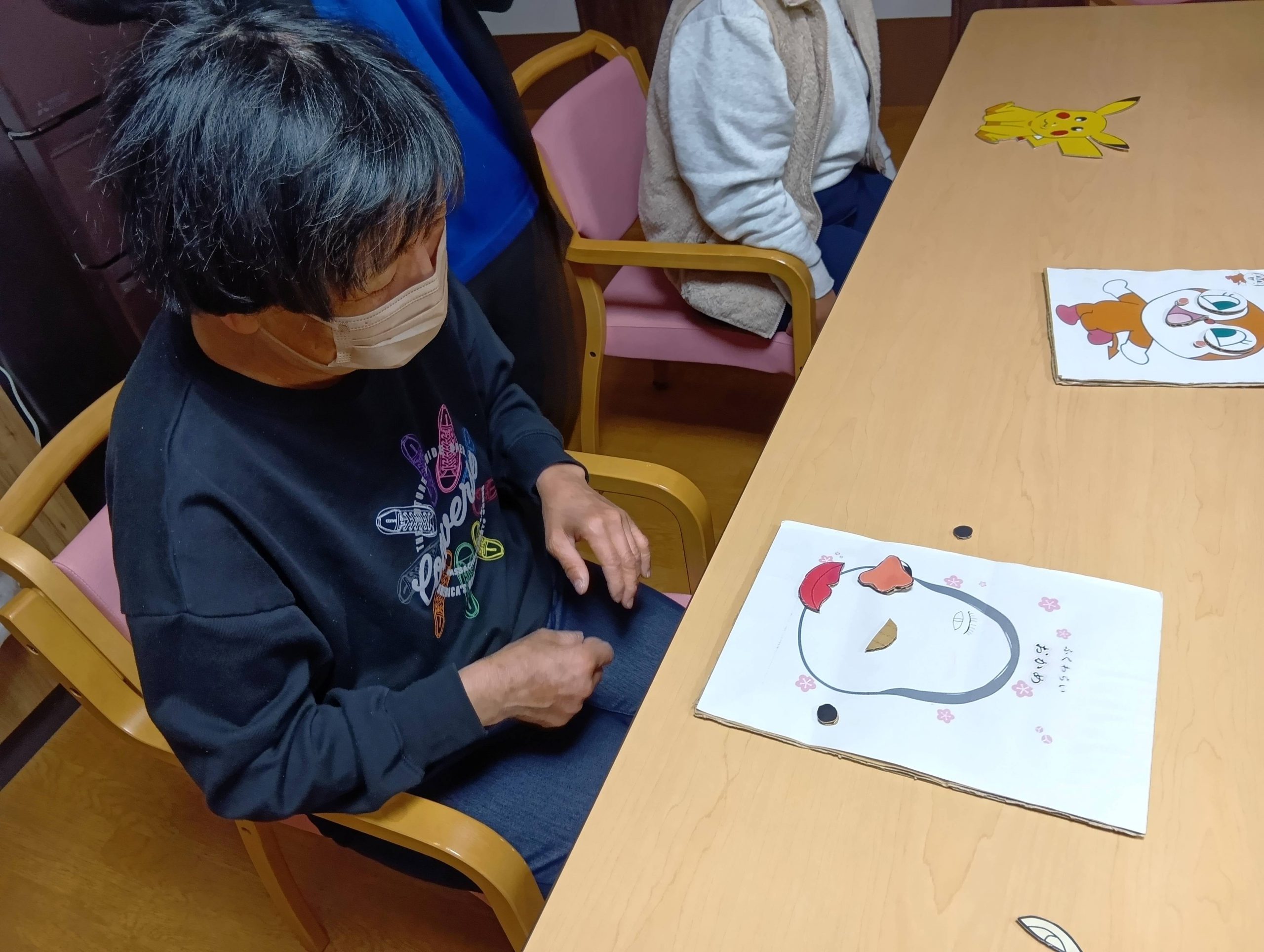 お昼からのレクリエーションは福笑いをし、皆さんワイワイしながら楽しんでおられていました。