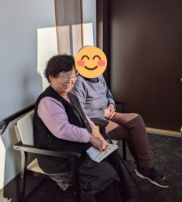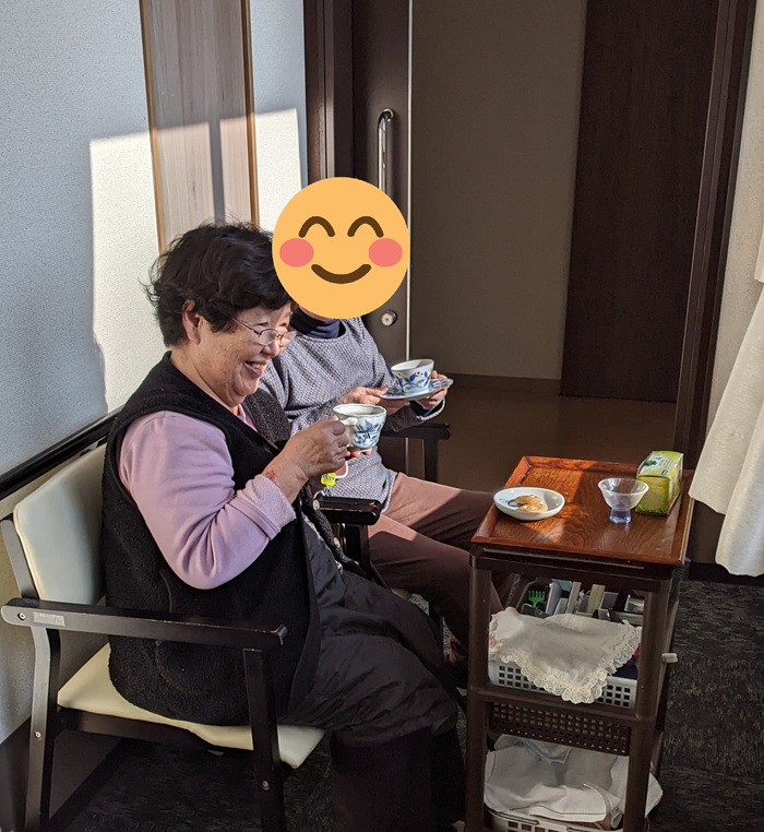 日向ぼっこ🌞 シニアハウス木津川 こんにちは シニアハウス木津川です😊 今日は一段と暖かいようです。 廊下で仲良く日向ぼっこされているところに お邪魔させていただきました。 紅茶とクッキーでテイータイムされてました🍵 Back Next