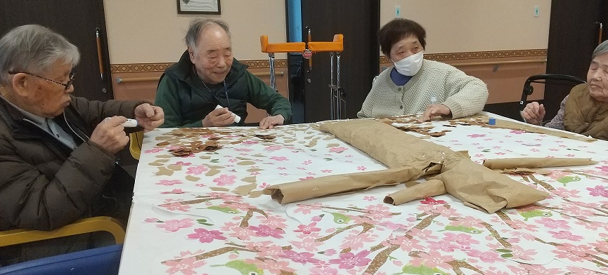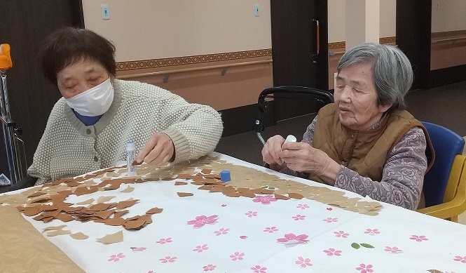 桜🌸 シニアライフ精華 こんにちはシニアライフ精華です。 本日のリクリエーションは 桜の木貼り絵完成しました。 「キレイどこに飾るの?」 「私の部屋に飾って」 と おっしゃっていました。 食堂に飾りたいとおもいます。 Back Next