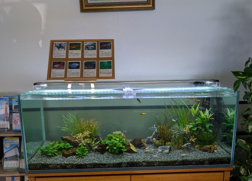 水草や石をレイアウトし綺麗な水を入れ替えて下さいました。