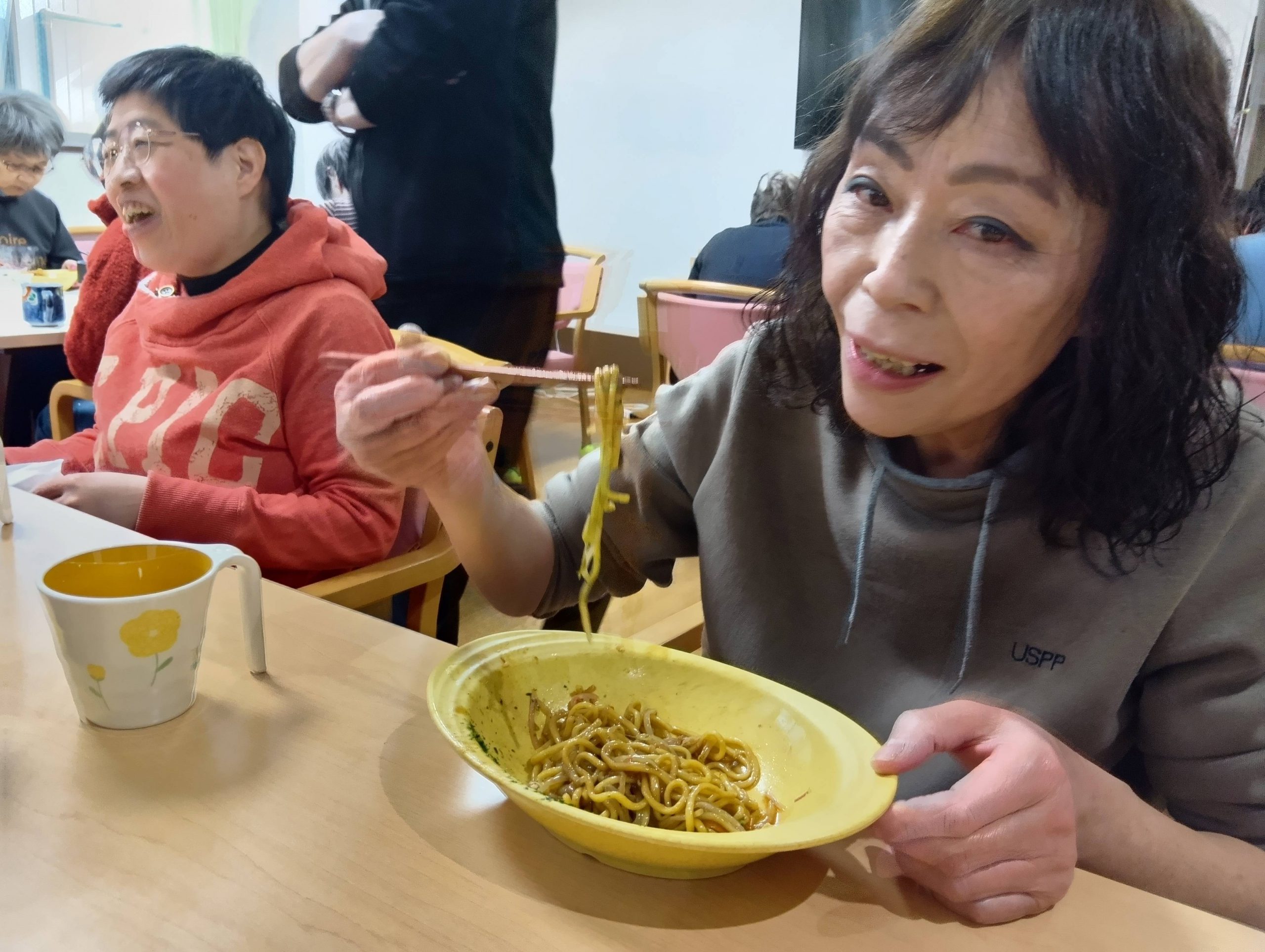 皆で協力して作った焼きそばとベビーカステラは、とっても美味しいと皆さんたくさん食べて頂きました。