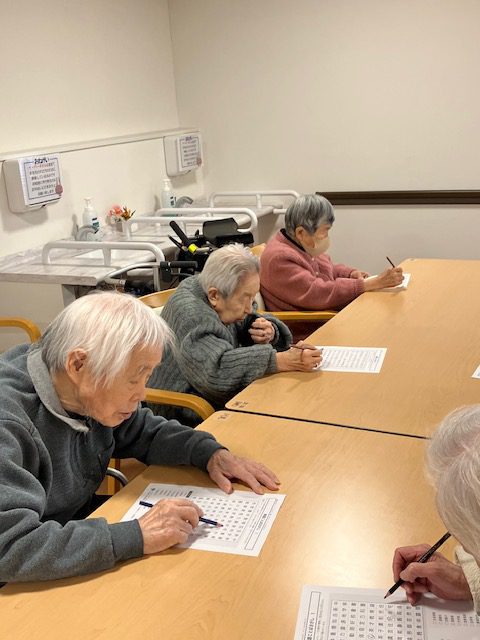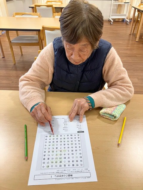 熟語探し✏ シニアハウス桃山 こんにちは。 シニアハウス桃山です。 今日は、熟語探しに挑戦してもらいました。 「意外と難しいね」などと話をされながら、 近くの方と相談して取り組まれていました。 Back Next