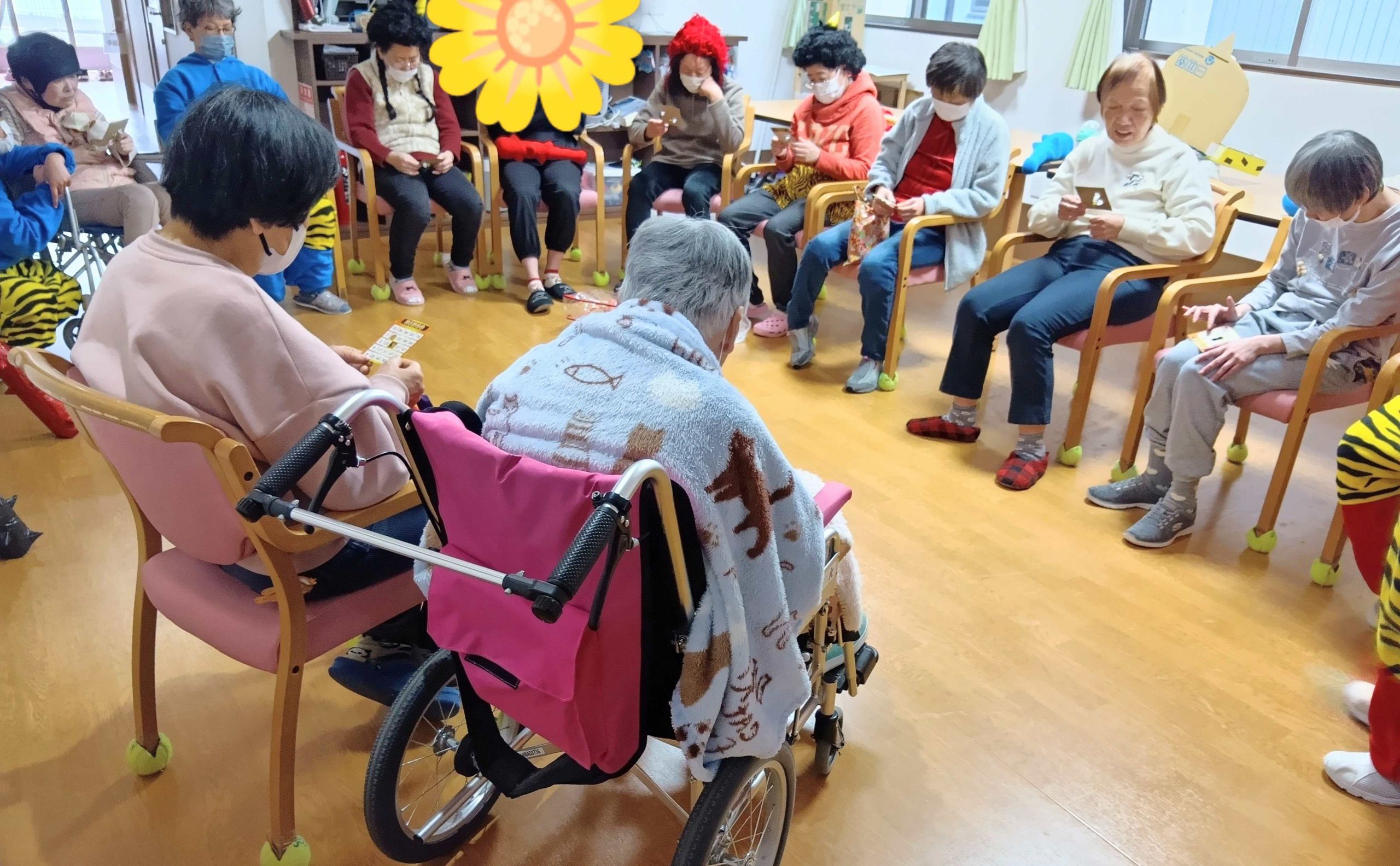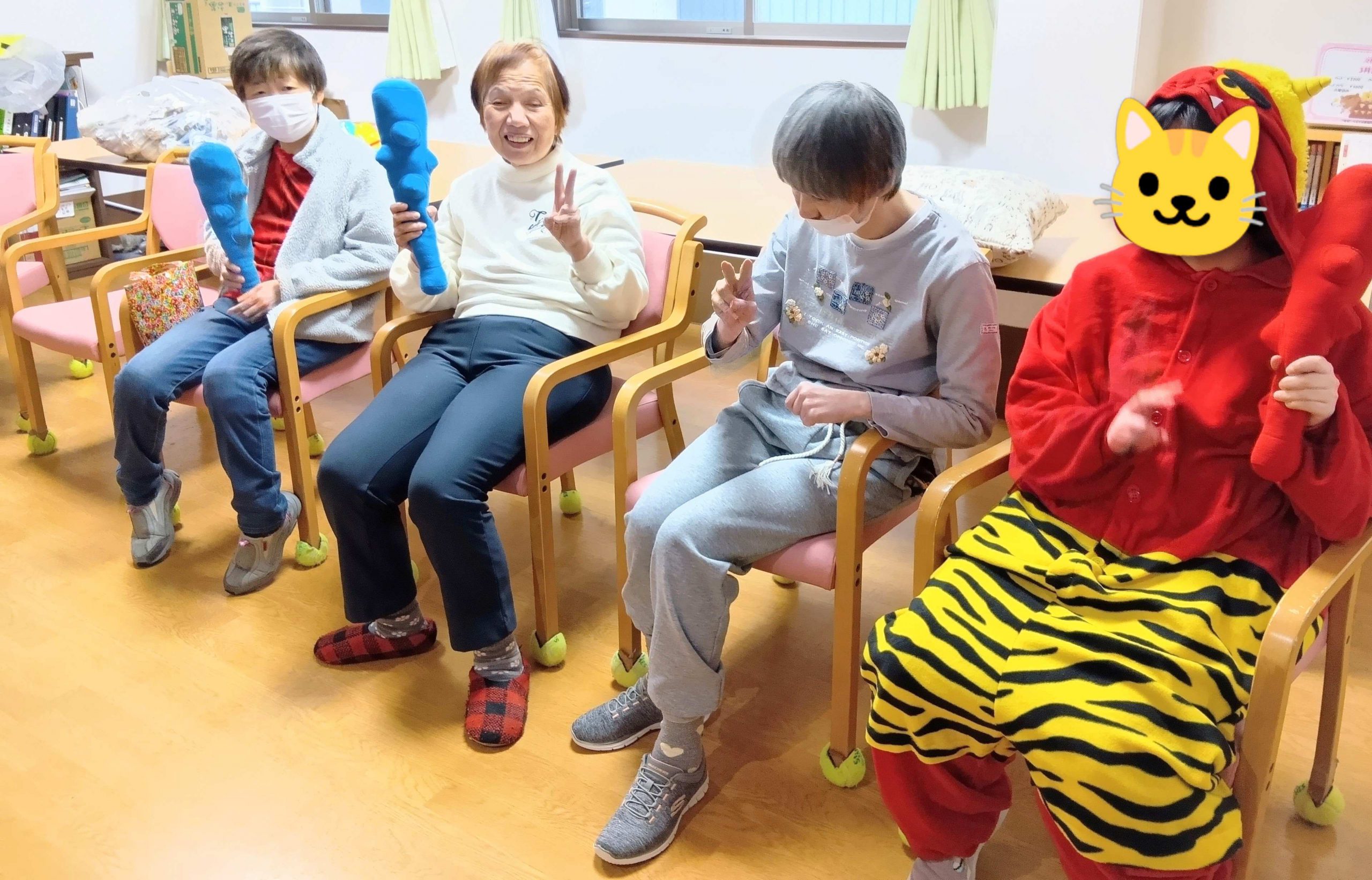 節分レクでした♪ 加茂タウンⅠ号館 / 加茂タウンⅡ号館 本日は節分レクをしました!新聞ボールで鬼退治、節分クイズ、節分ビンゴ大会などでワイワイ盛り上がりました☆ビンゴの景品はおやつ詰め合わせでした♪皆さん楽しかったと喜んで頂けて良かったです♪ Back Next