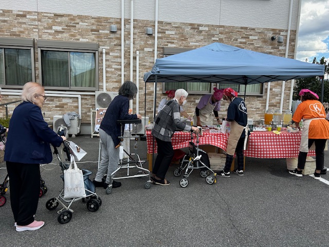 「美カインドマルシェ開催でーす」の声掛けに入居者様の行列ができました!!