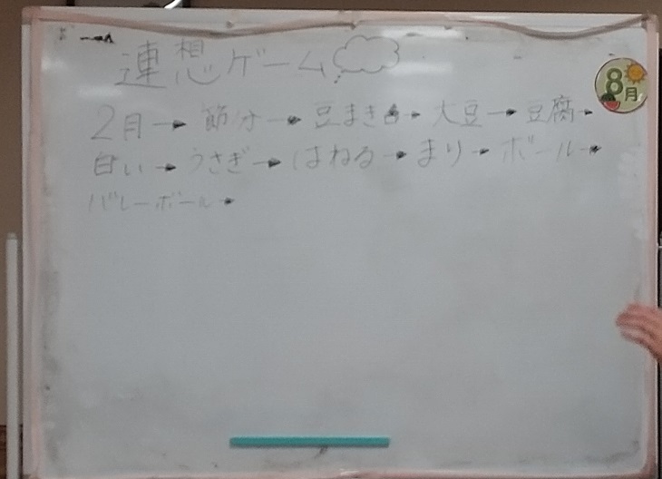 連想ゲーム✎ シニアライフ精華 こんにちはシニアライフ精華です。 本日のリクリエーションは 連想ゲームをしました。 色んな言葉が出てきて そんな発想もあるのか。 と 色んなひらめきがあり 楽しい時間を過ごされていました。 Back Next